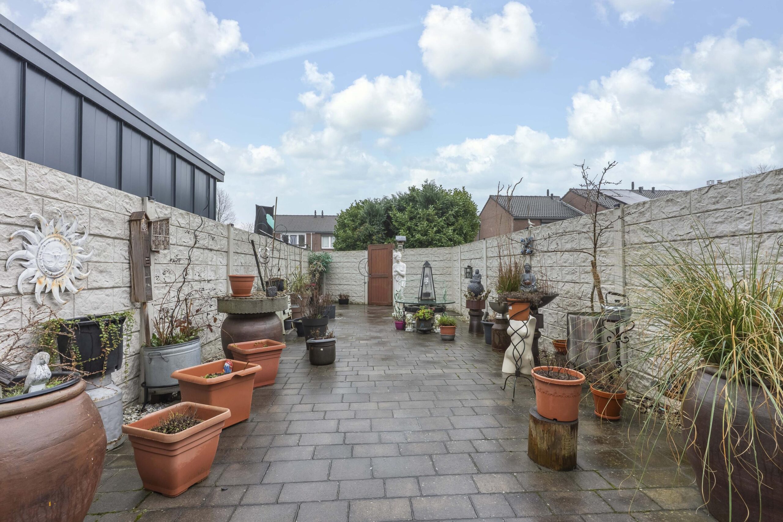 Vanuit de woonkamer is de onderhoudsvriendelijke en bestrate tuin met overkapping bereikbaar. Via een achterom gelegen pad is deze tuin via achterom te bereiken.