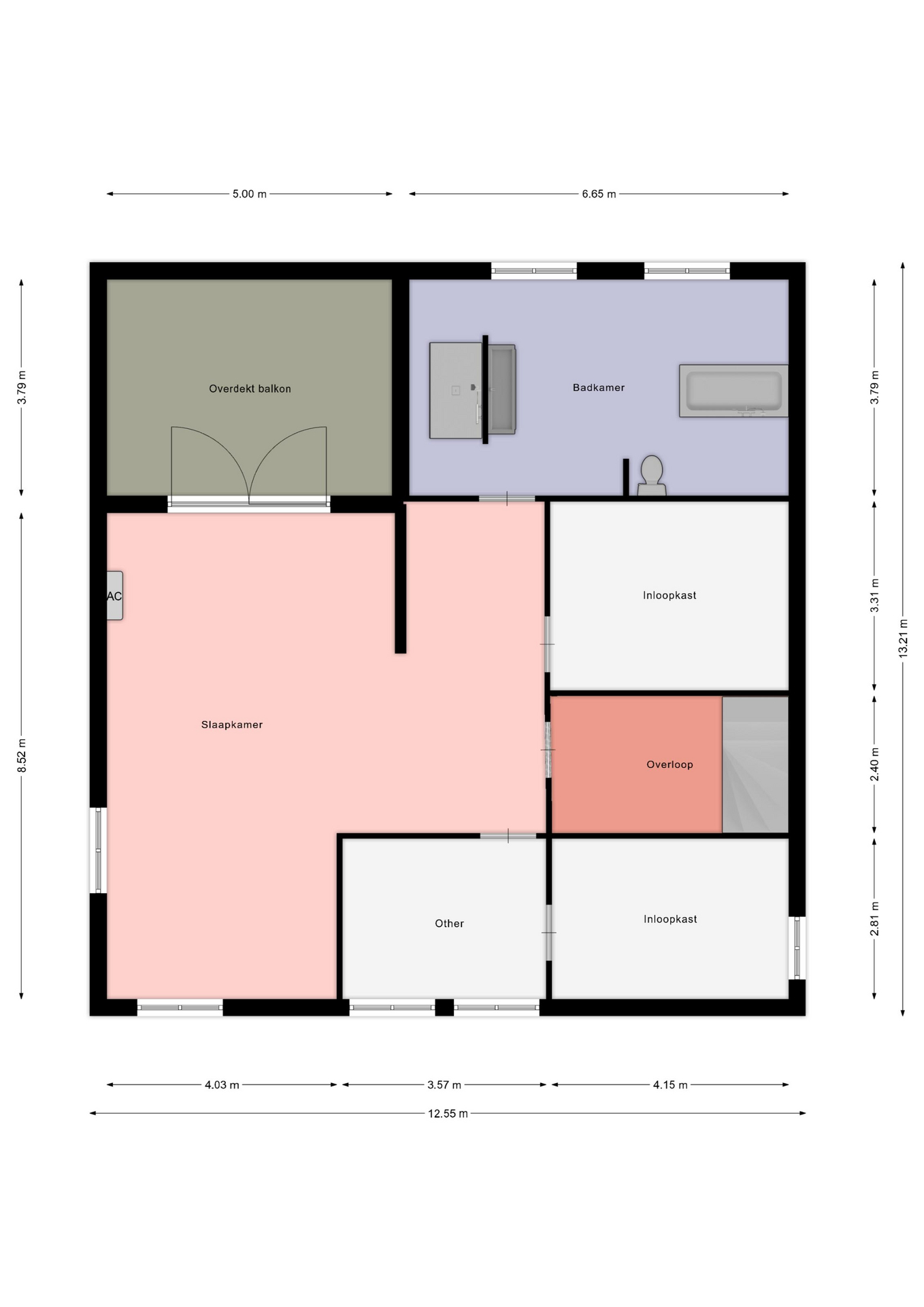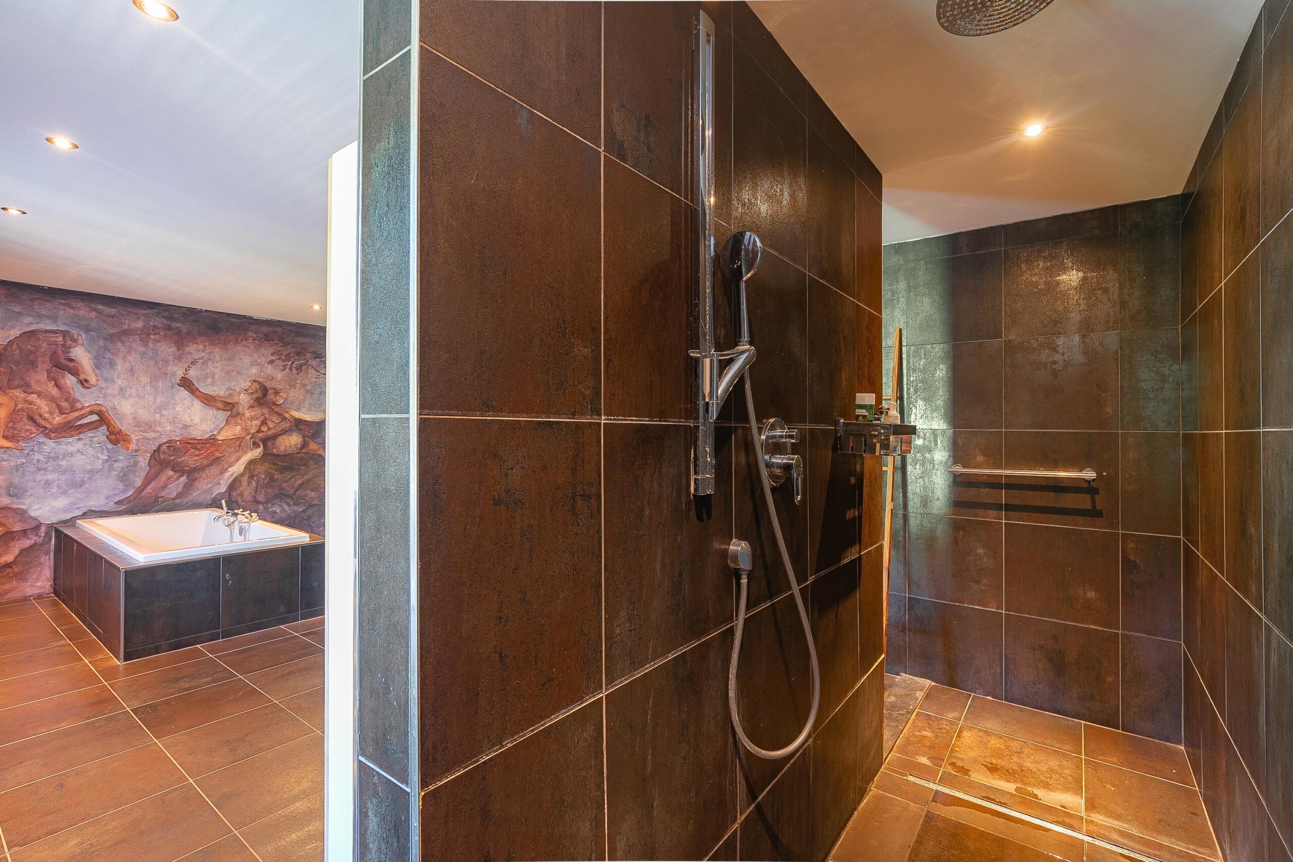 Overloop met toegang tot de ruime master bedroom (ca. 55 m²), twee inloopkasten (ca. 13 m² en 11 m²), een extra kamer (ca. 10 m²), een royale badkamer (ca. 25 m²) en het overdekte balkon (ca. 16 m²). De slaapkamer is voorzien van airconditioning en biedt veel ruimte en comfort. De volledig betegelde badkamer is een ware oase van ontspanning en beschikt over een ruime inloopdouche, vrijstaand bad, toilet en een groot wastafelmeubel. Tevens is er mechanische ventilatie aanwezig.