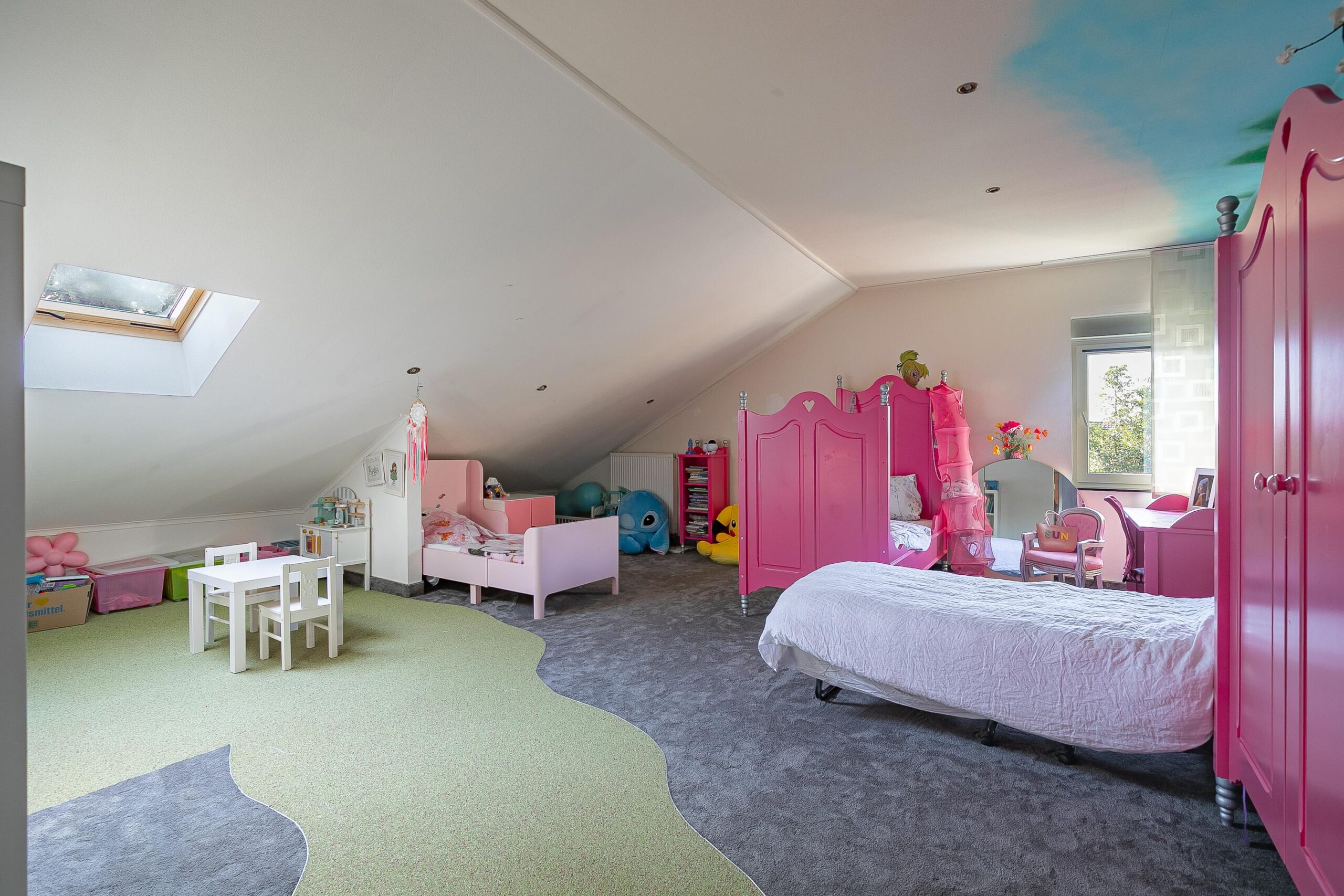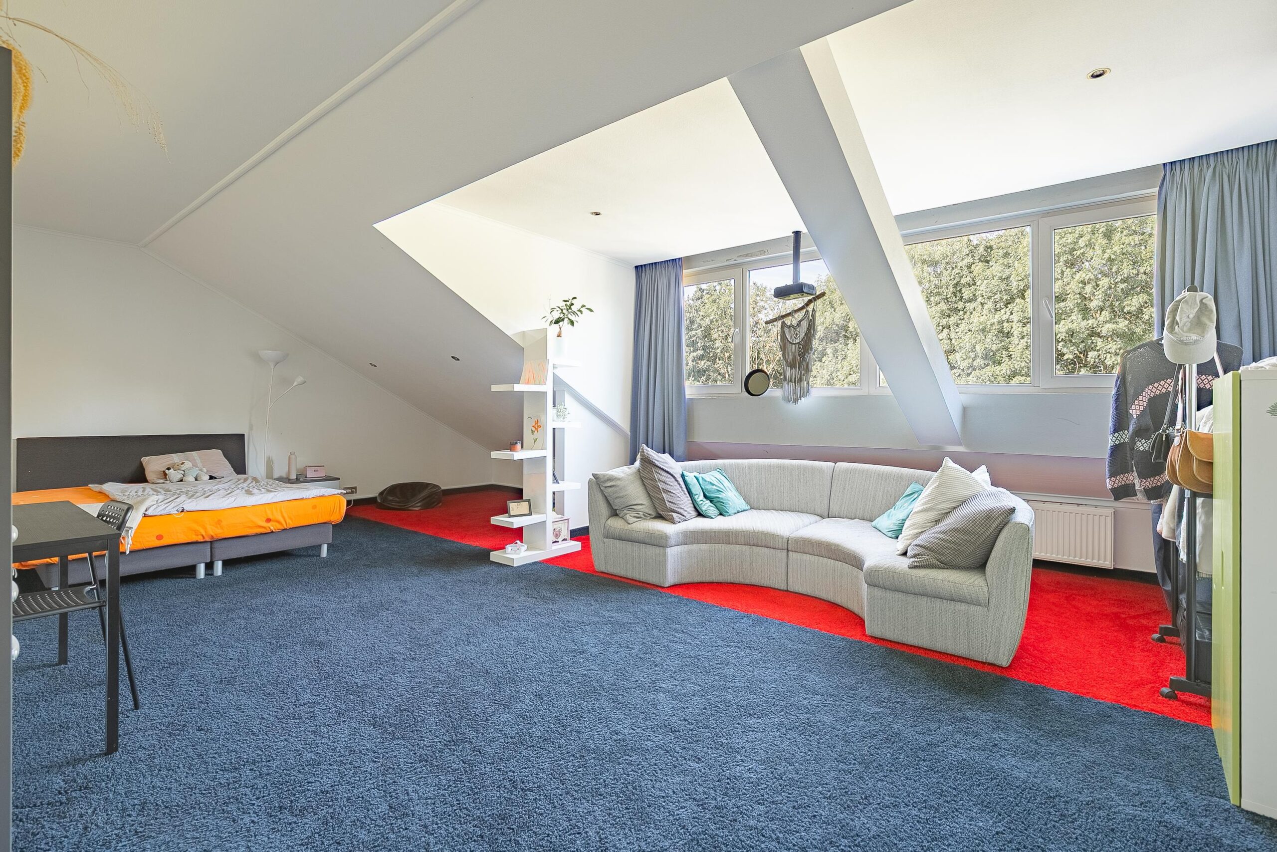 Via de overloop bereikt men twee royale slaapkamers (resp. ca. 29 m² en 37 m²), een derde badkamer (ca. 11 m²) en een extra opbergruimte (ca. 14 m²) met cv-installatie en indirect gestookte boiler. De gehele verdieping is voorzien van vloerbedekking en airconditioning. De badkamer is volledig betegeld en uitgerust met een inloopdouche, wastafelmeubel en toilet.