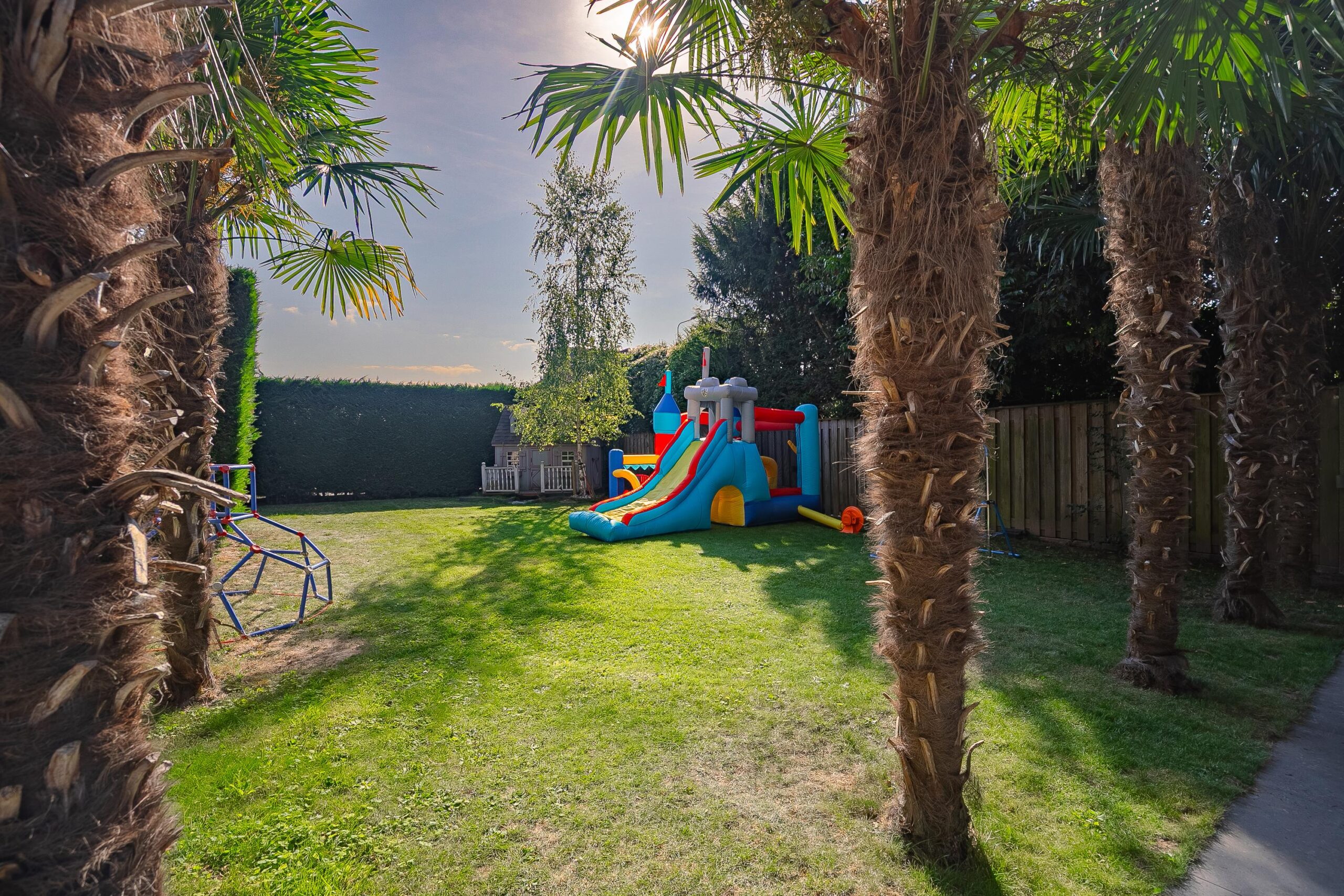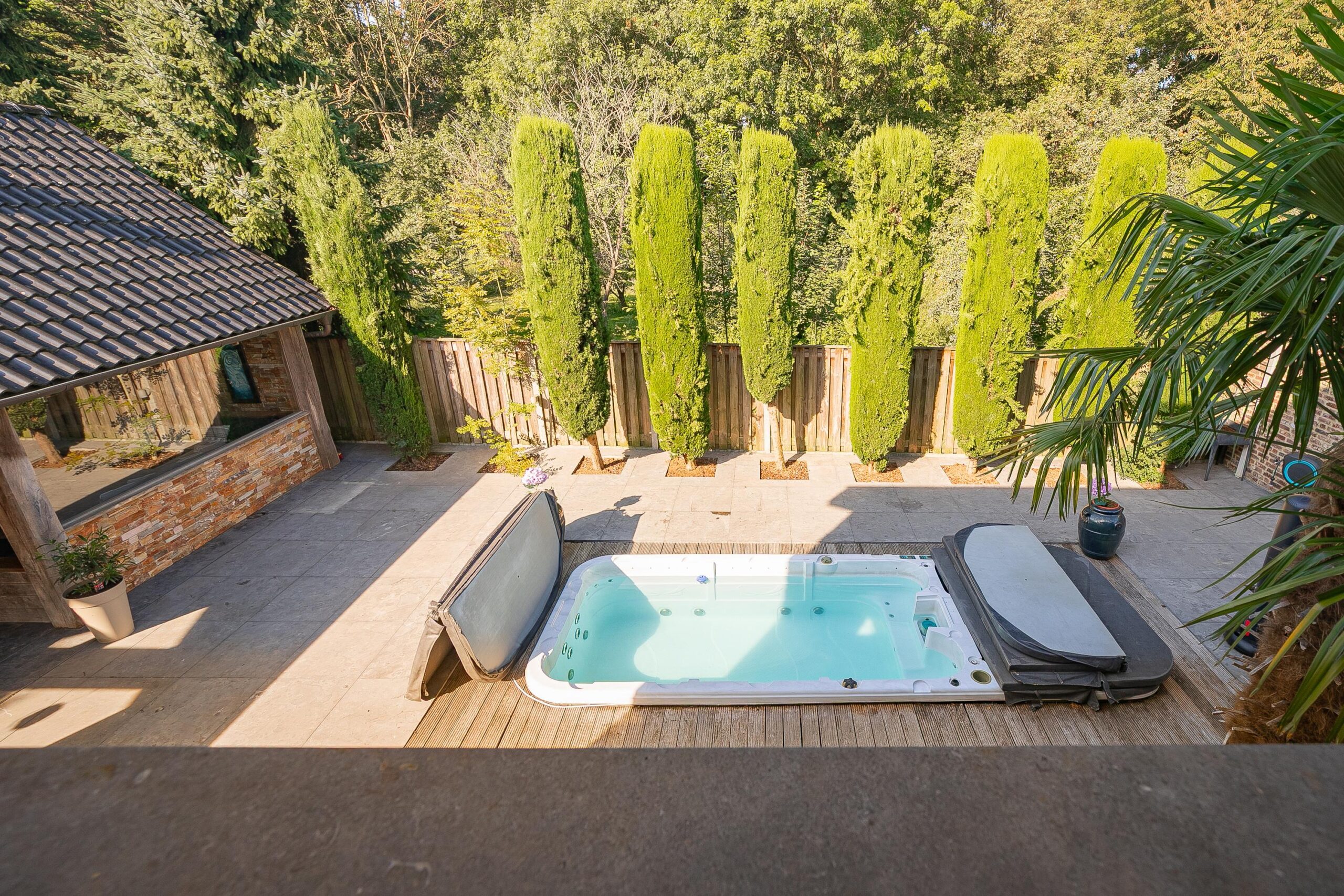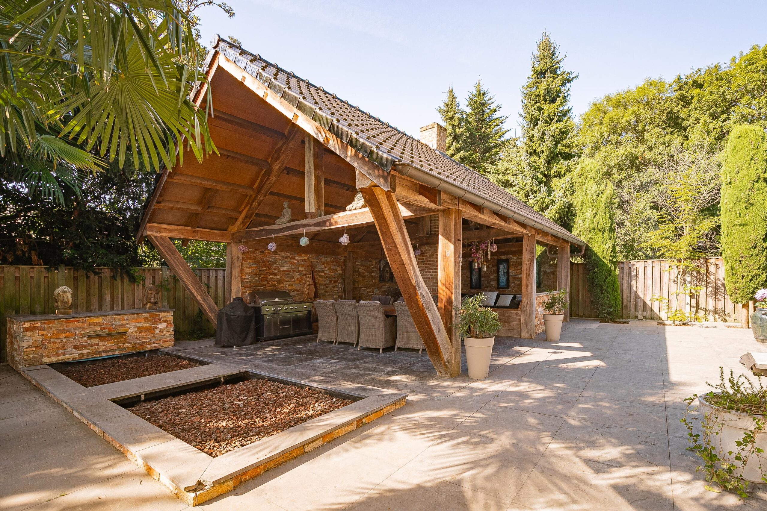 De tuin is een absolute parel en geeft een ultiem vakantiegevoel. Het royale perceel is ingericht met een ingebouwde jacuzzi, een open tuinhuis met ruime zithoek, gasbarbecue en open haard. Dit is dé plek om te genieten van lange zomeravonden met vrienden en familie. De tuin is deels betegeld, deels voorzien van gazon en biedt volledige privacy zonder inkijk van buren. Via een achterom en de garage is de tuin gemakkelijk te bereiken.
