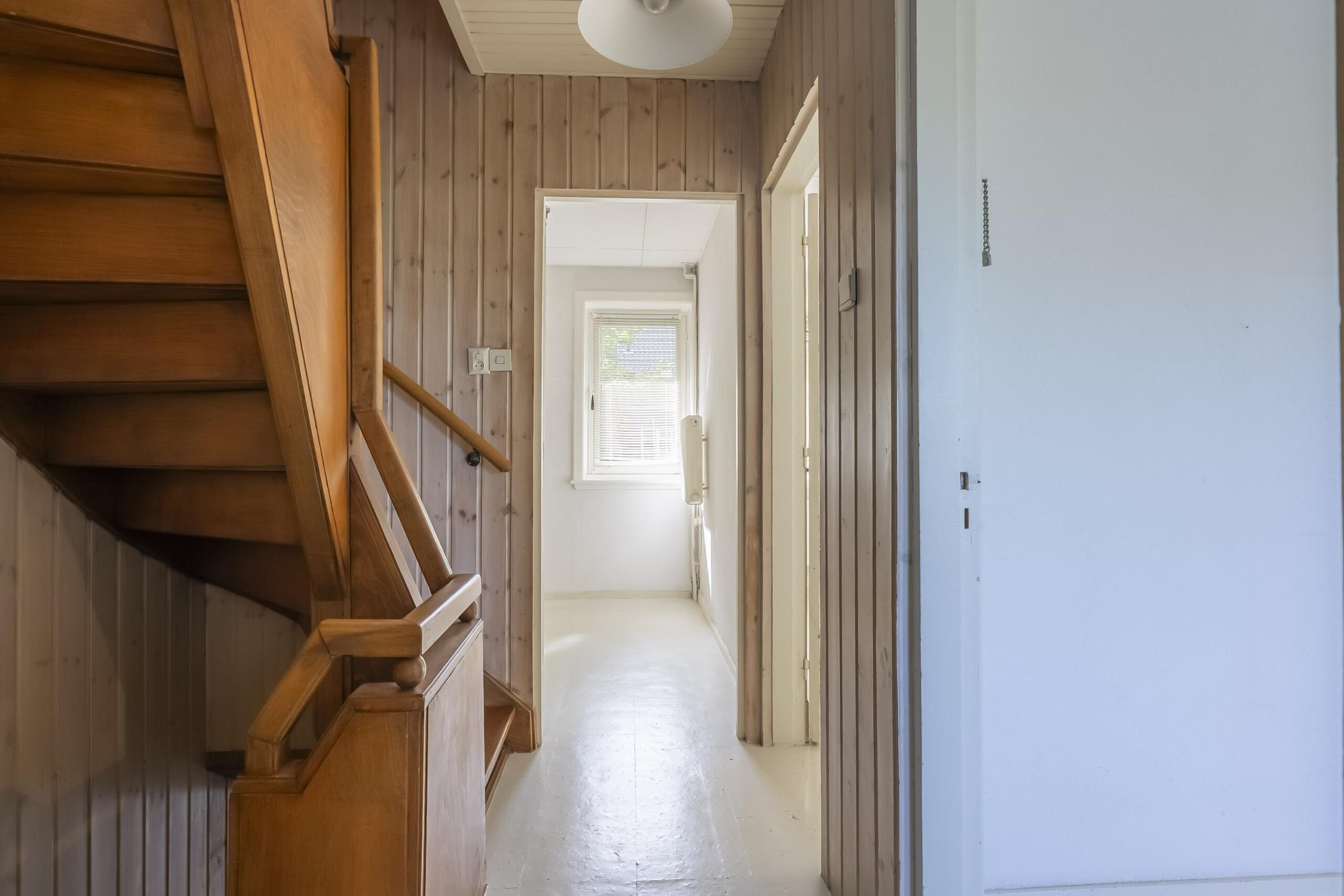 Overloop. Drie slaapkamers (resp. ca. 12.5, 12 en 5 m2) met kurkvloer en spackspuitwerk. Badkamer (ca. 5 m2) met ligbad, douche, toilet en wastafel en kurkvloer/schroten afwerking met inbouwspots.