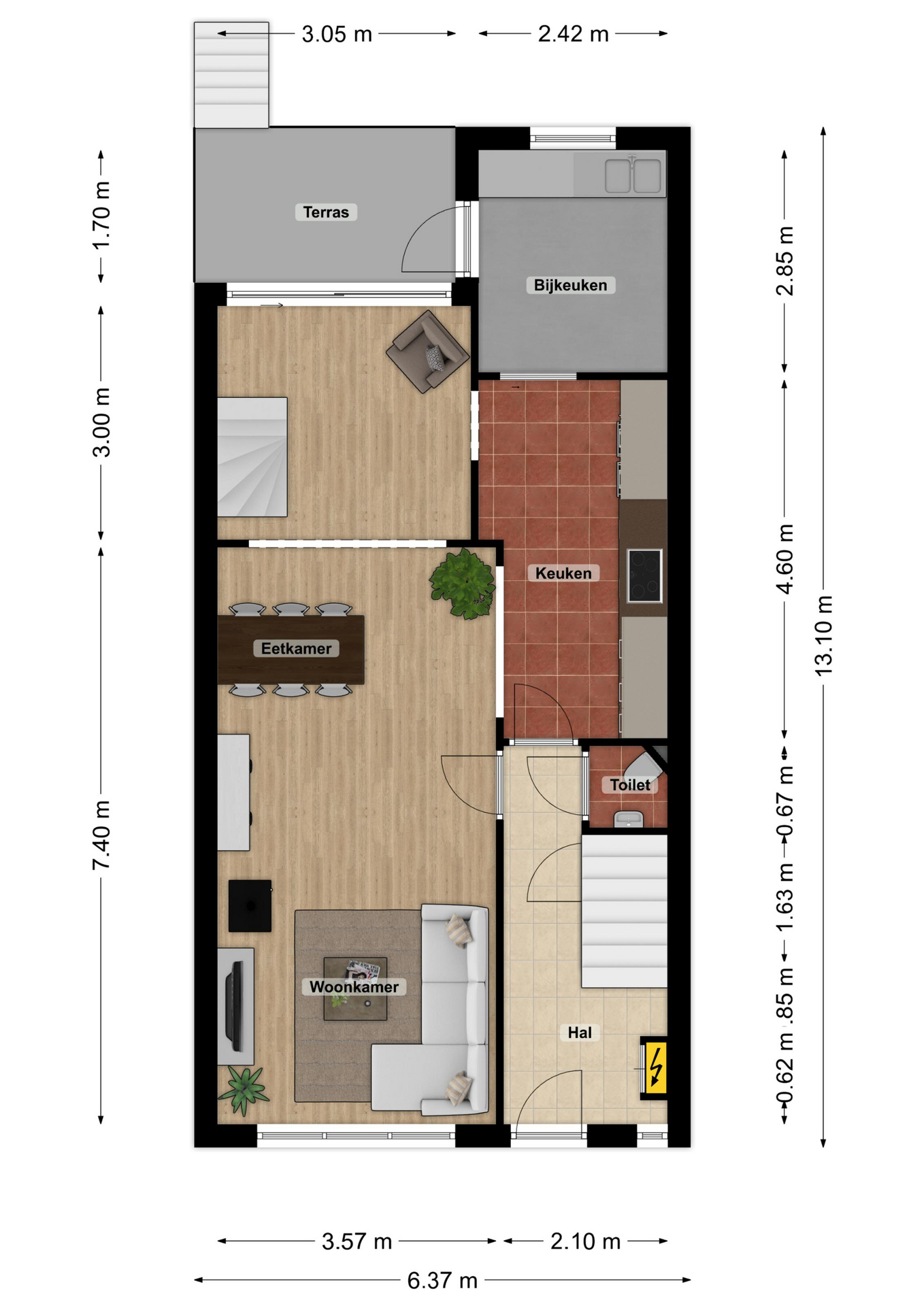- Oppervlakte gebouwgebonden ca. 7 m2