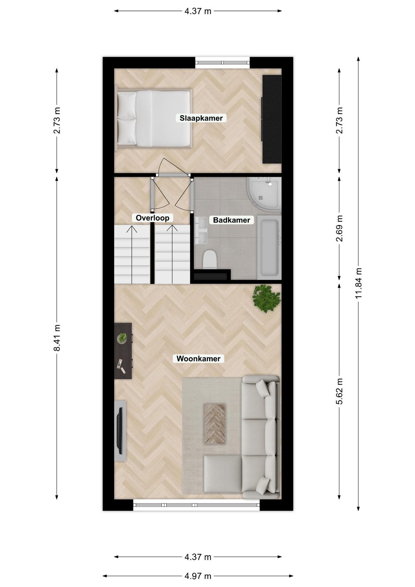 – Het betreft een speelse woning (splitlevel);