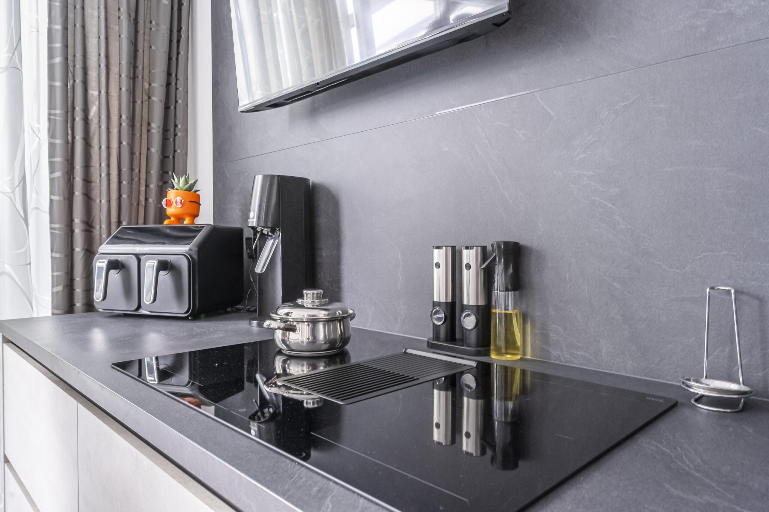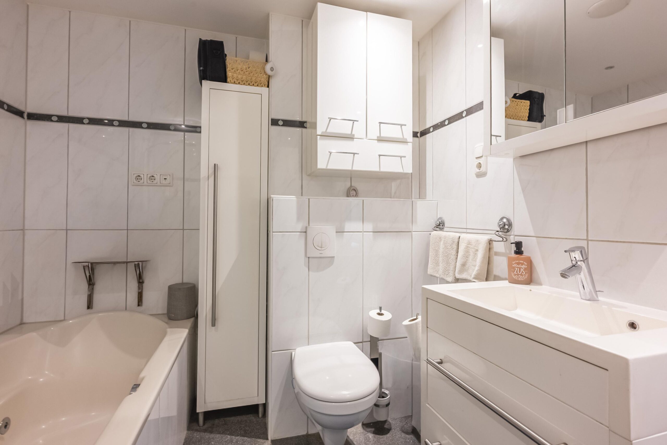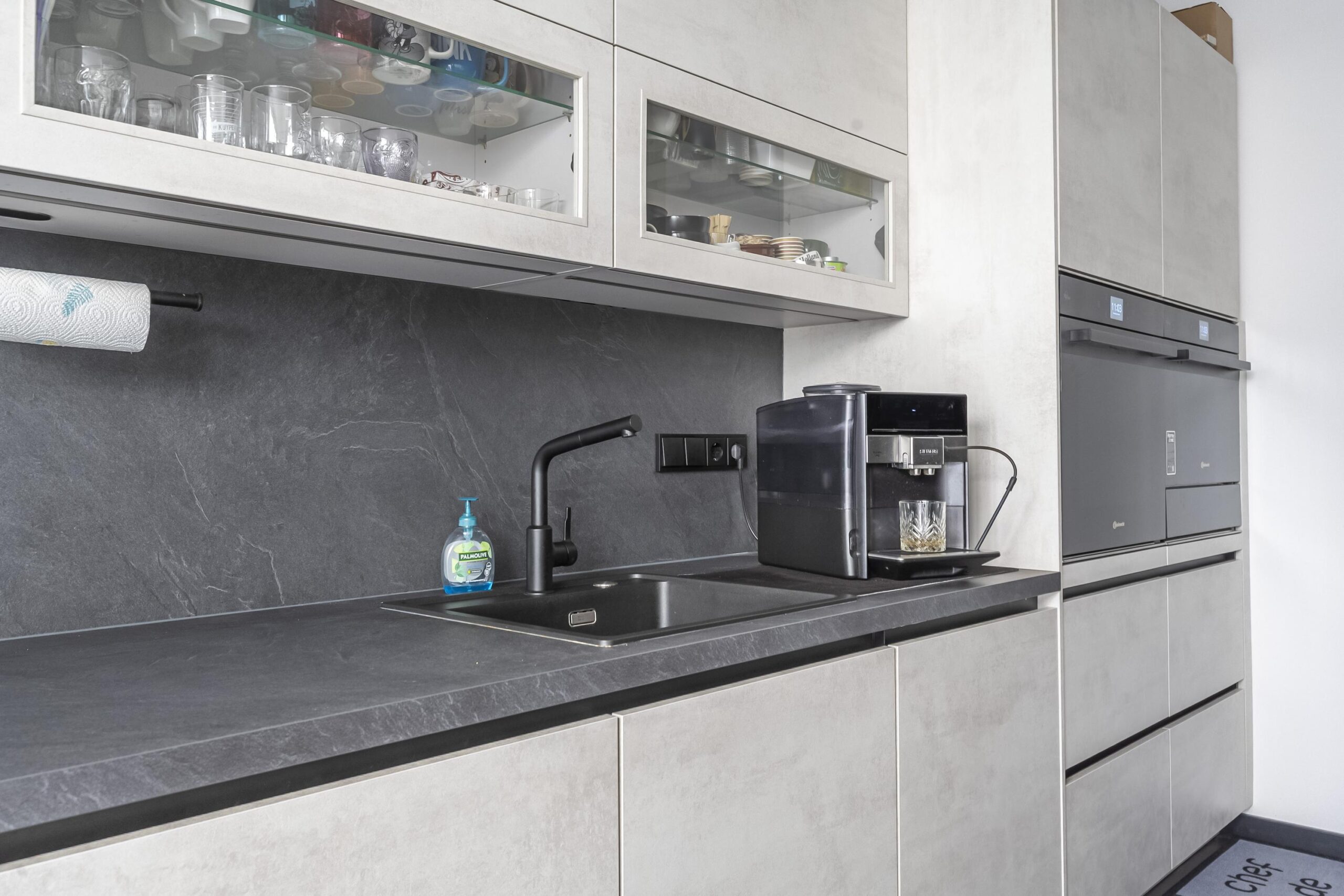 De royale woonkeuken is een echte eyecatcher: recent vernieuwd, uitgevoerd in een moderne stijl en uitgerust met hoogwaardige inbouwapparatuur, waaronder een vaatwasser, oven, combimagnetron, bordenwarmer en een inductiekookplaat met geïntegreerde afzuiging. De keuken beschikt tevens over een tv-aansluiting.
