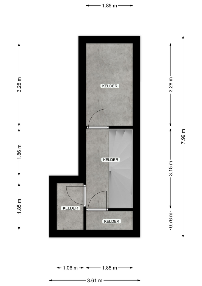 Kelder; gedeeltelijk onderkelderd; provisiekelder en C.V.-opstelling.