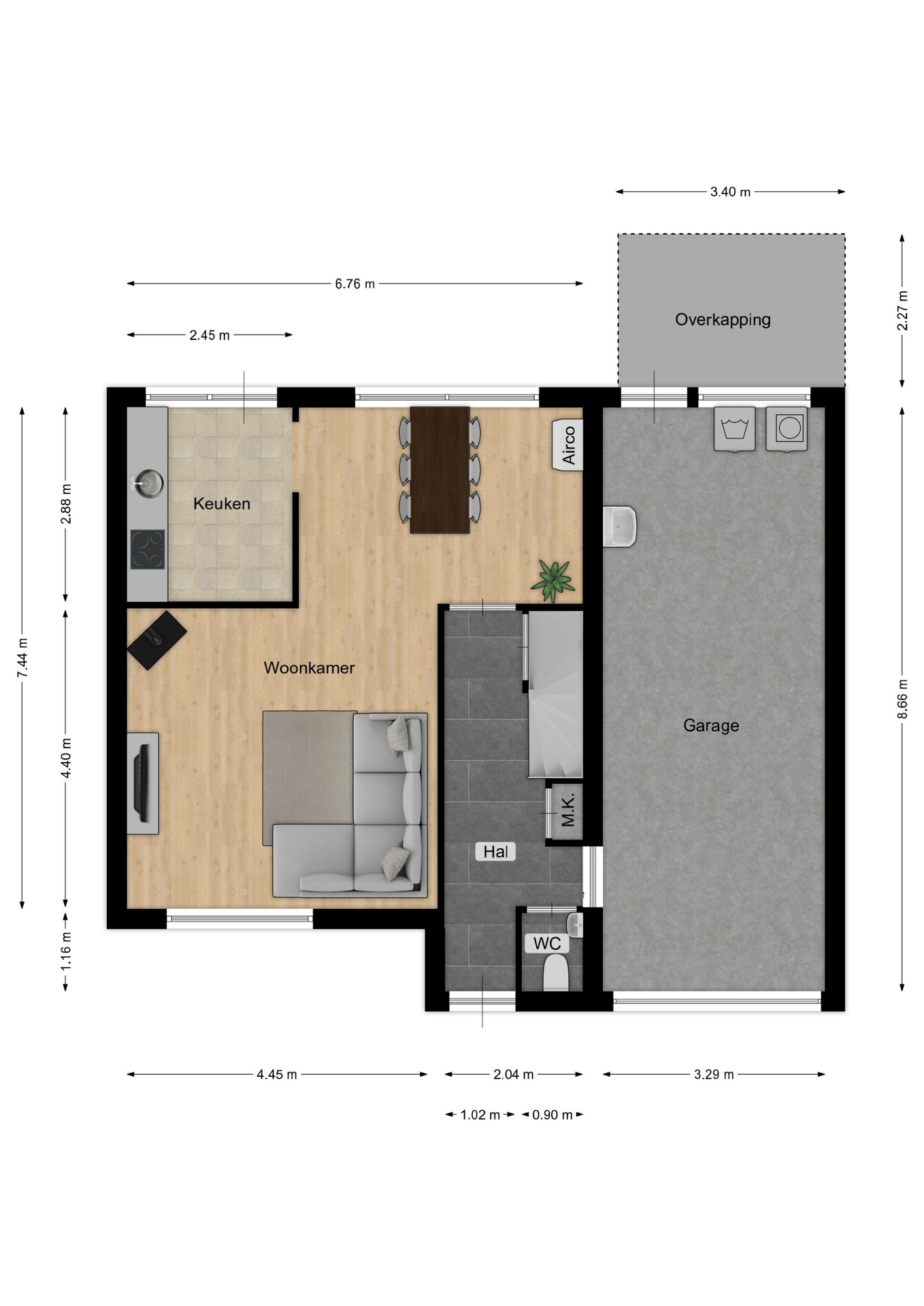 – Er zijn twee airco’s in de woning, één in de woonkamer en één op de overloop van de eerste verdieping;