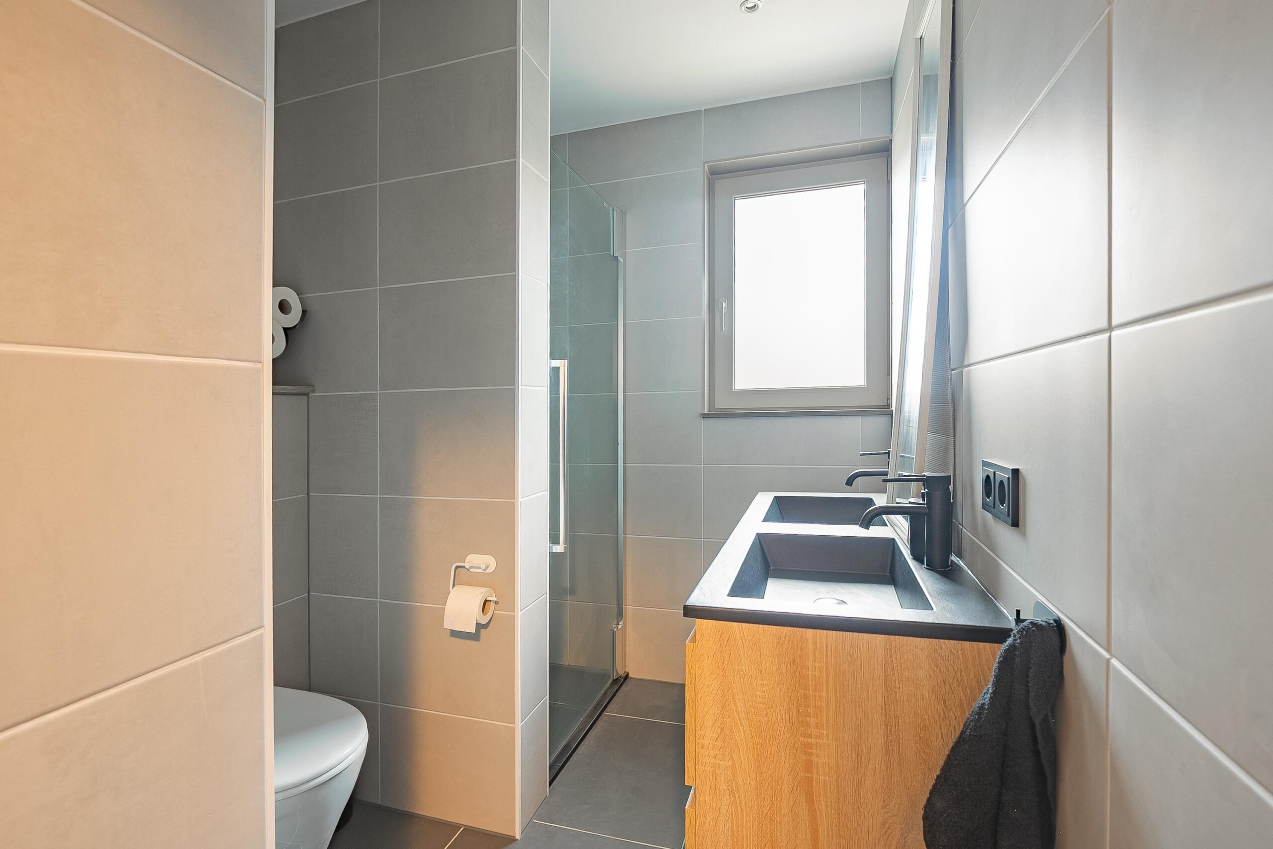 - Badkamervoorzieningen Toilet, douche, dubbele wastafel, wastafelmeubel
