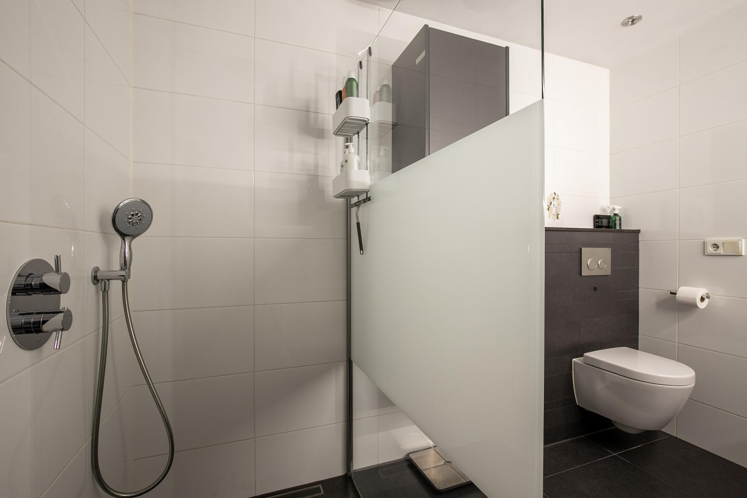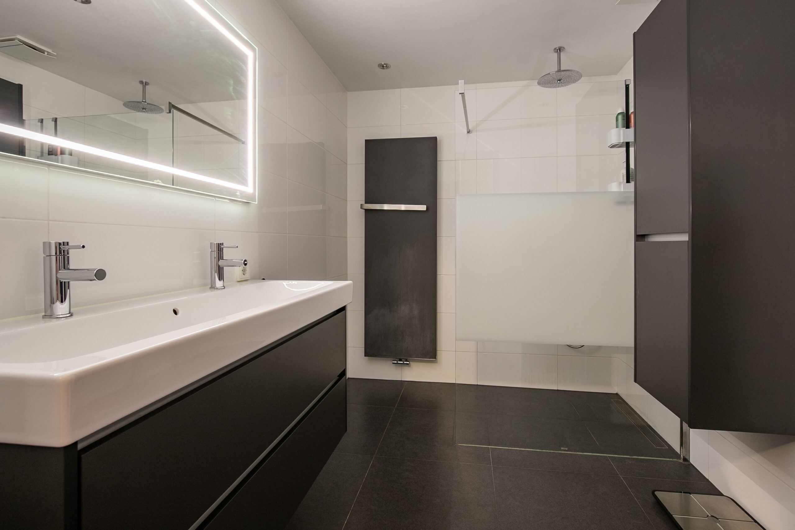 - Badkamervoorzieningen Toilet, dubbele wastafel, inloopdouche