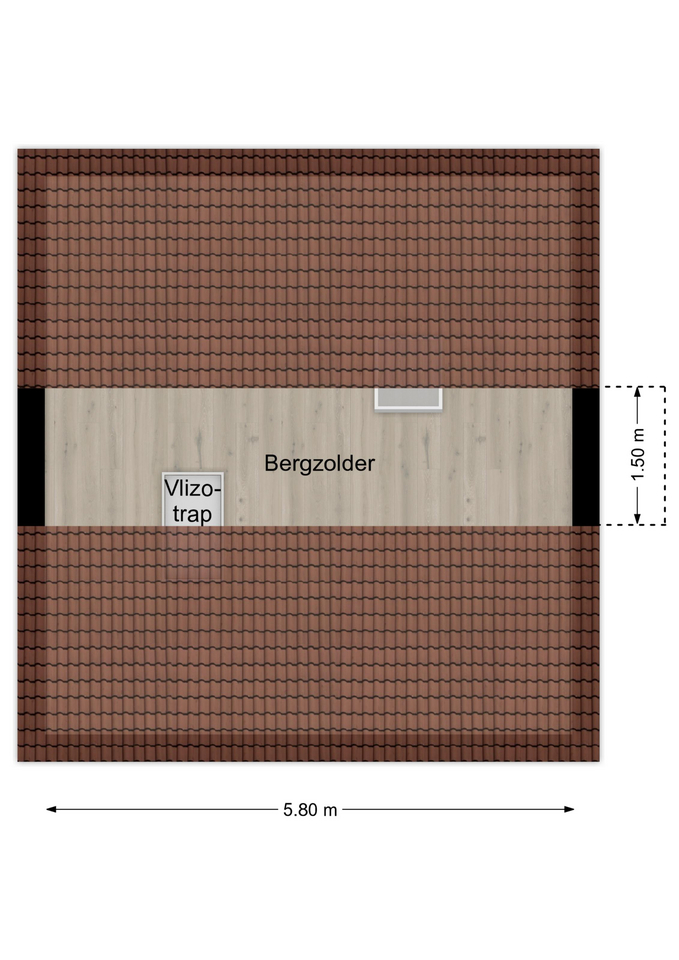 Via vlizotrap bereikbare bergzolder met houten dakbeschot.