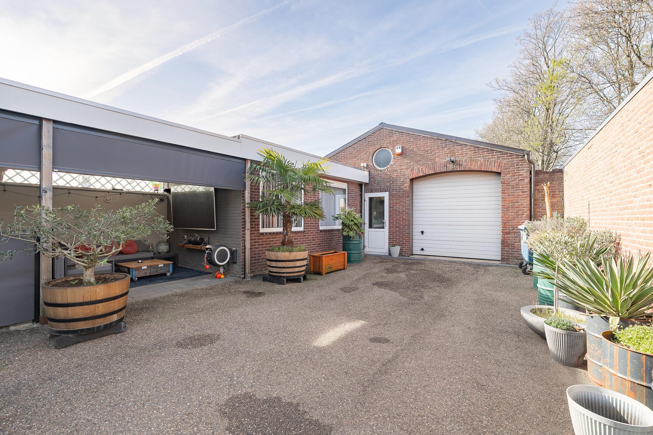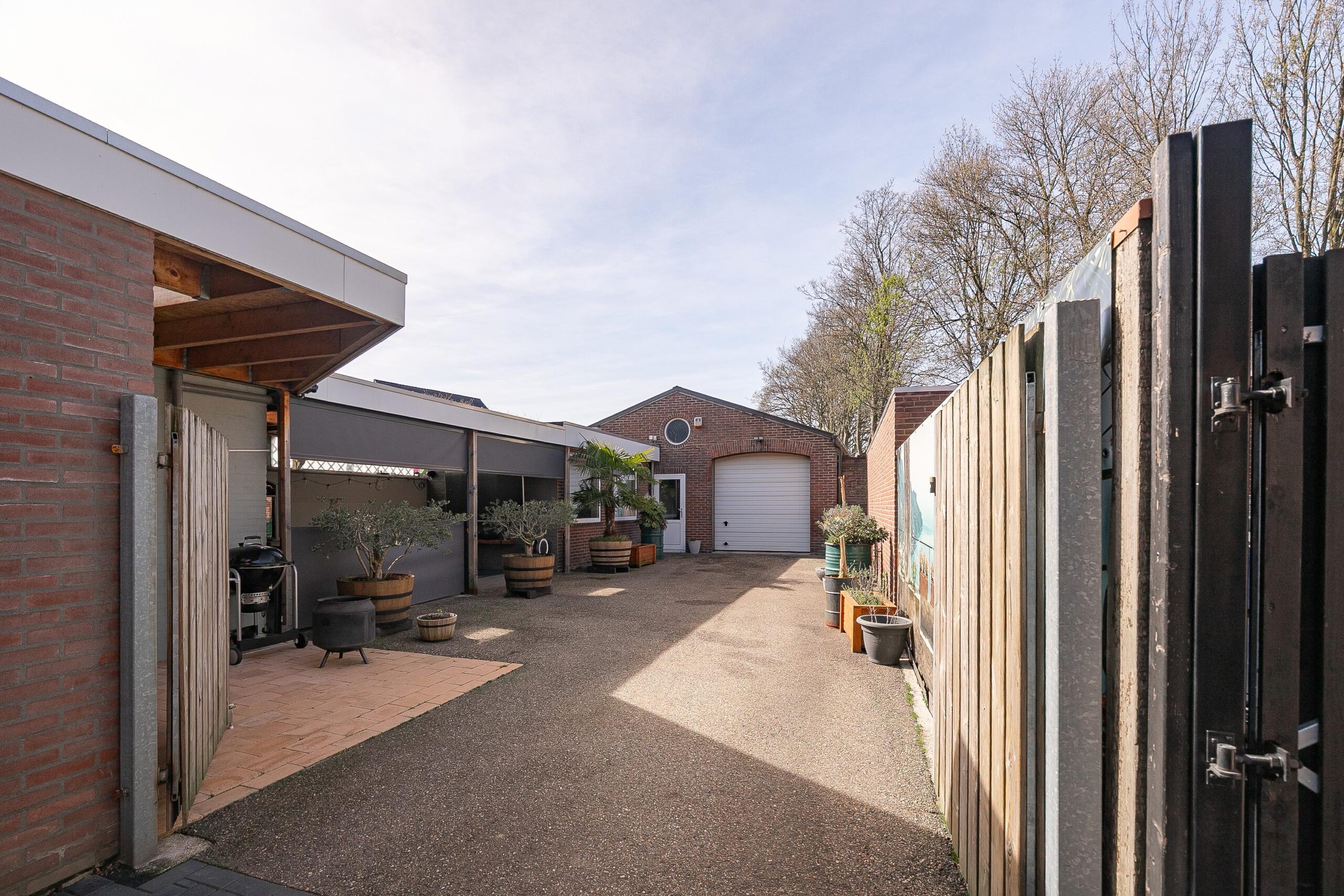 Aan de achterzijde van de loods bevindt zich nog een omsloten en privacy biedende buitenruimte van ca. 42 m2.