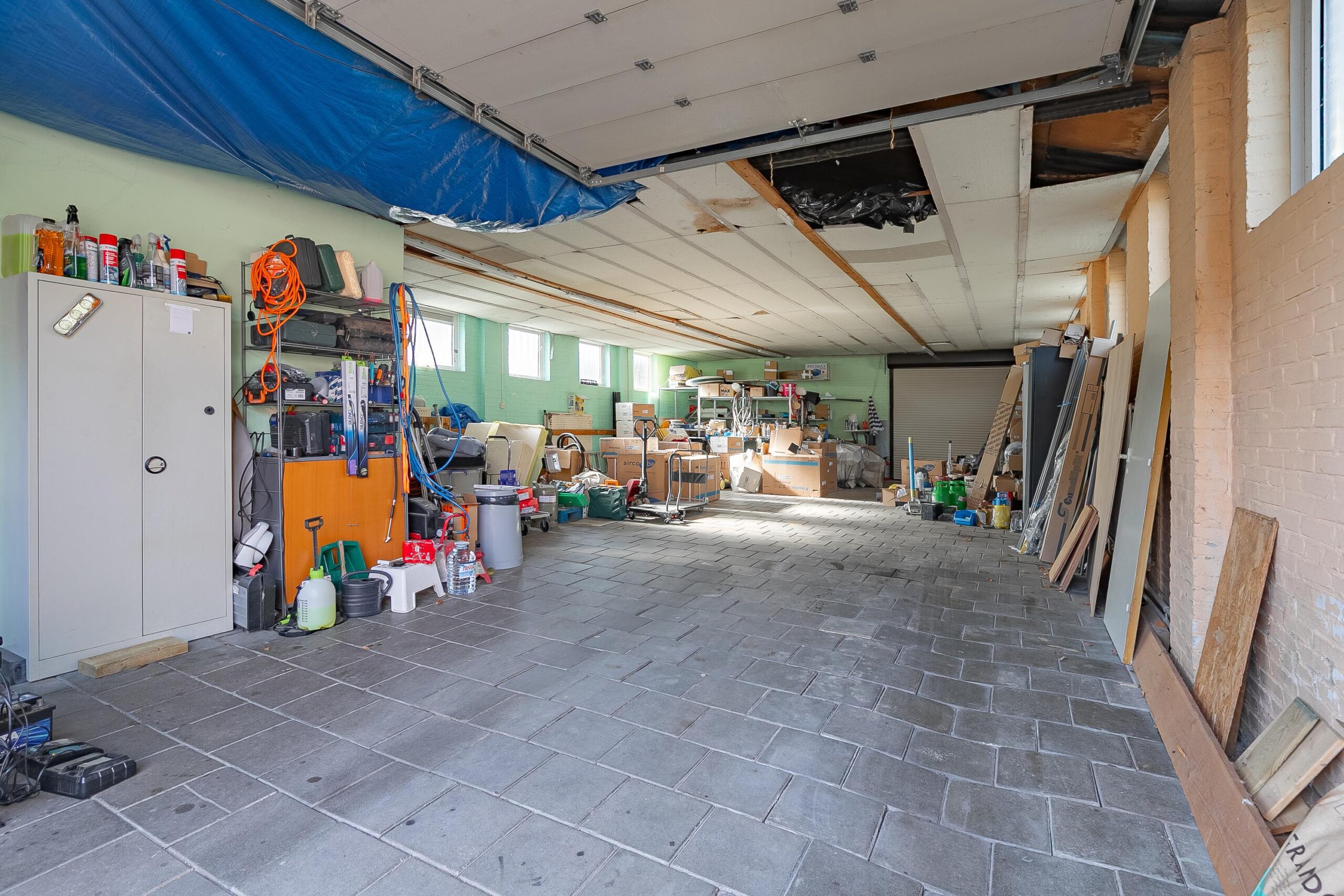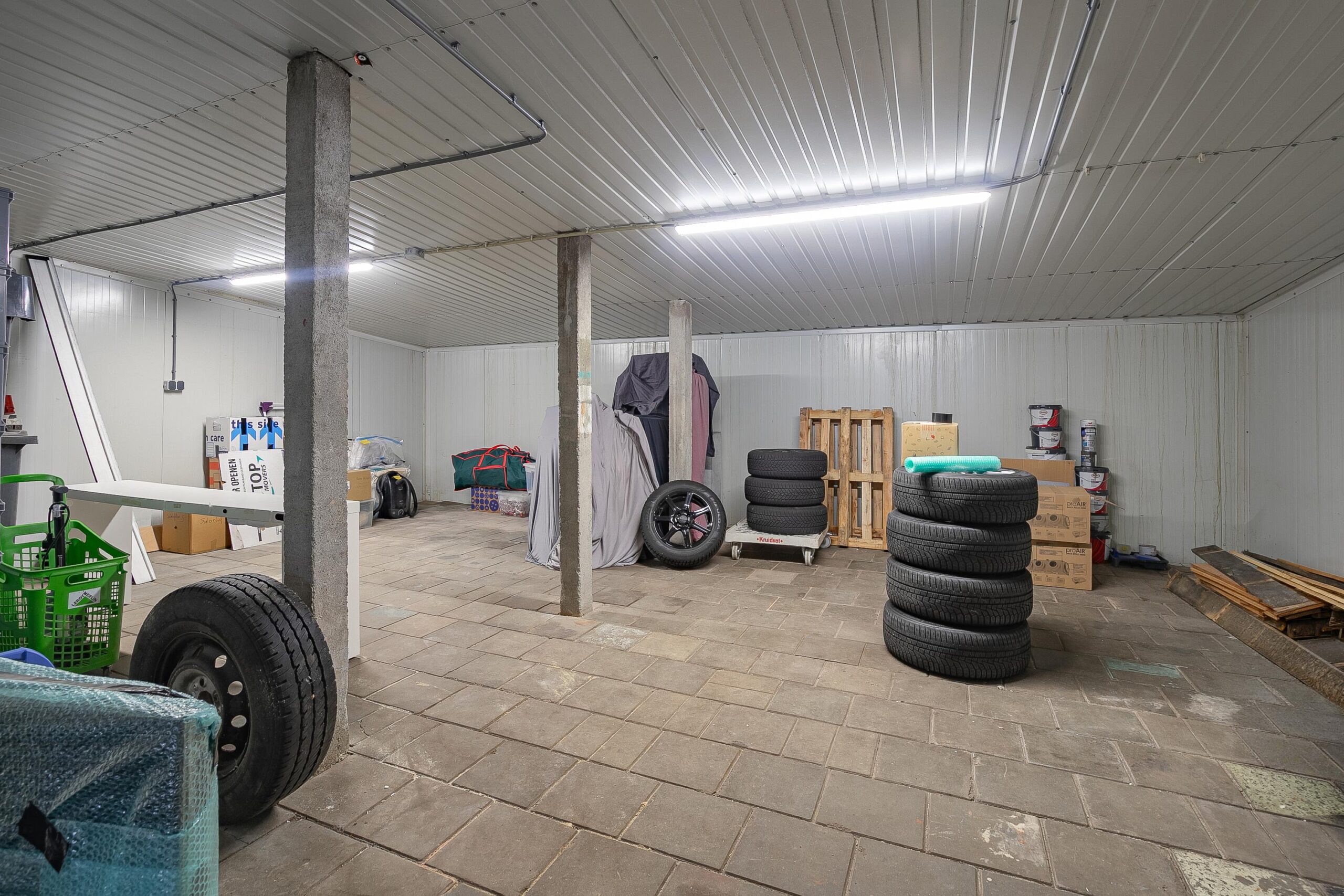 De tweede ruimte (ca. 43 m²) is bereikbaar via een koelceldeur aan de achterzijde van de loods en is voorzien van een rolluik en elektra. Deze ruimte is geschikt als werk- of opslagruimte.