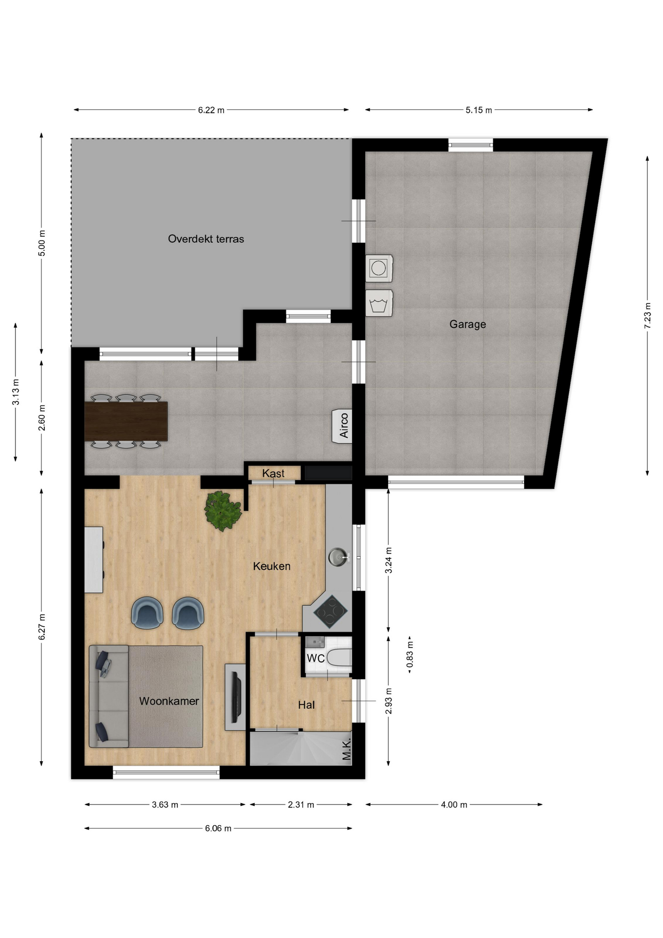 – Woning met een aanbouw en een ruime garage (7.32 x 4.00/5.15 meter);