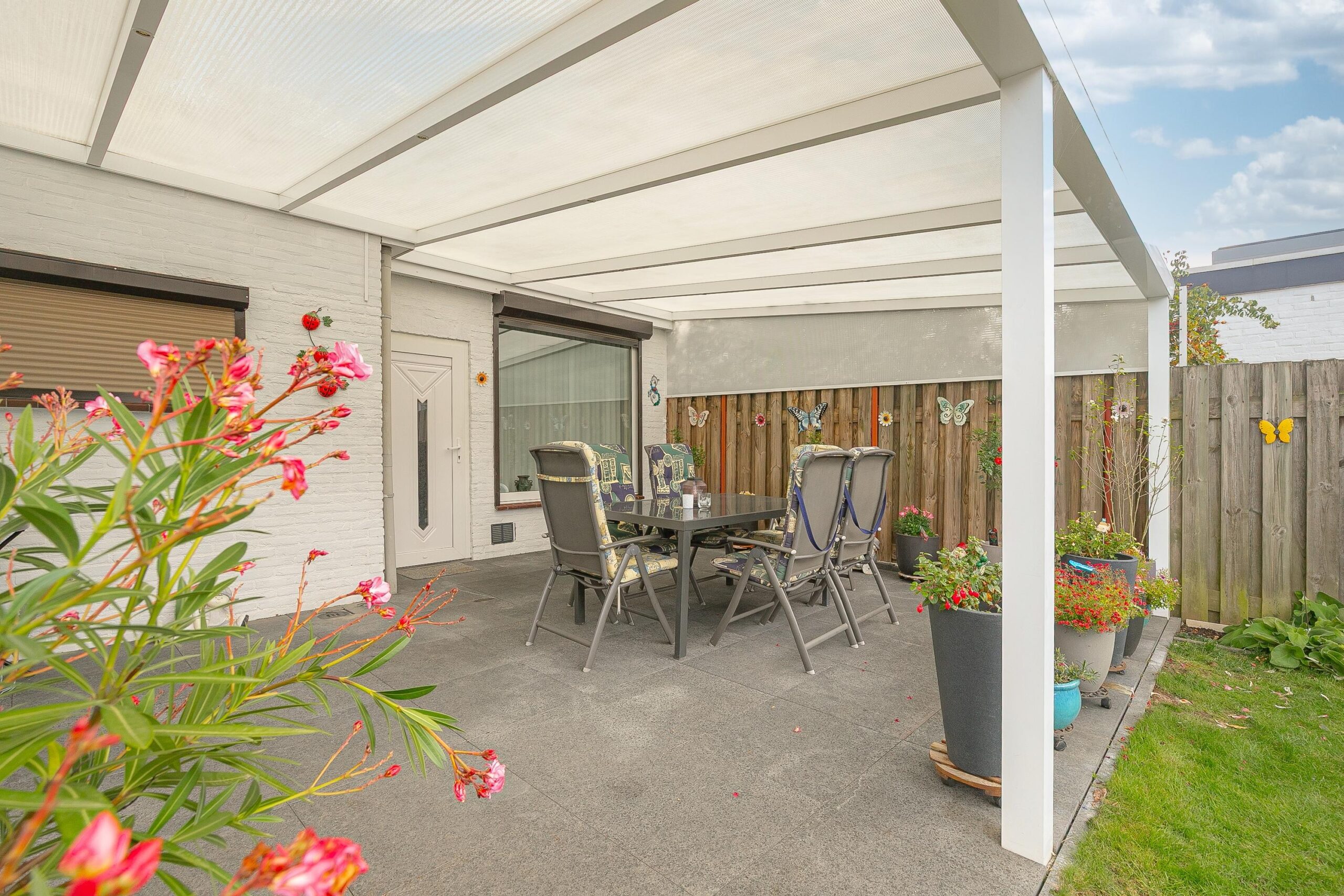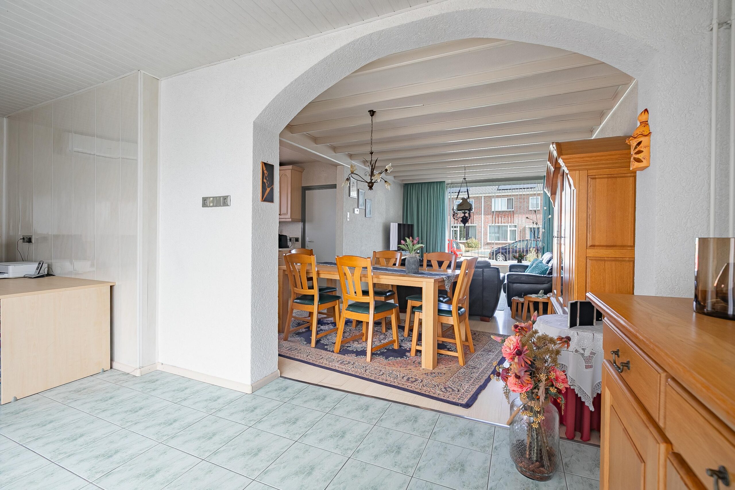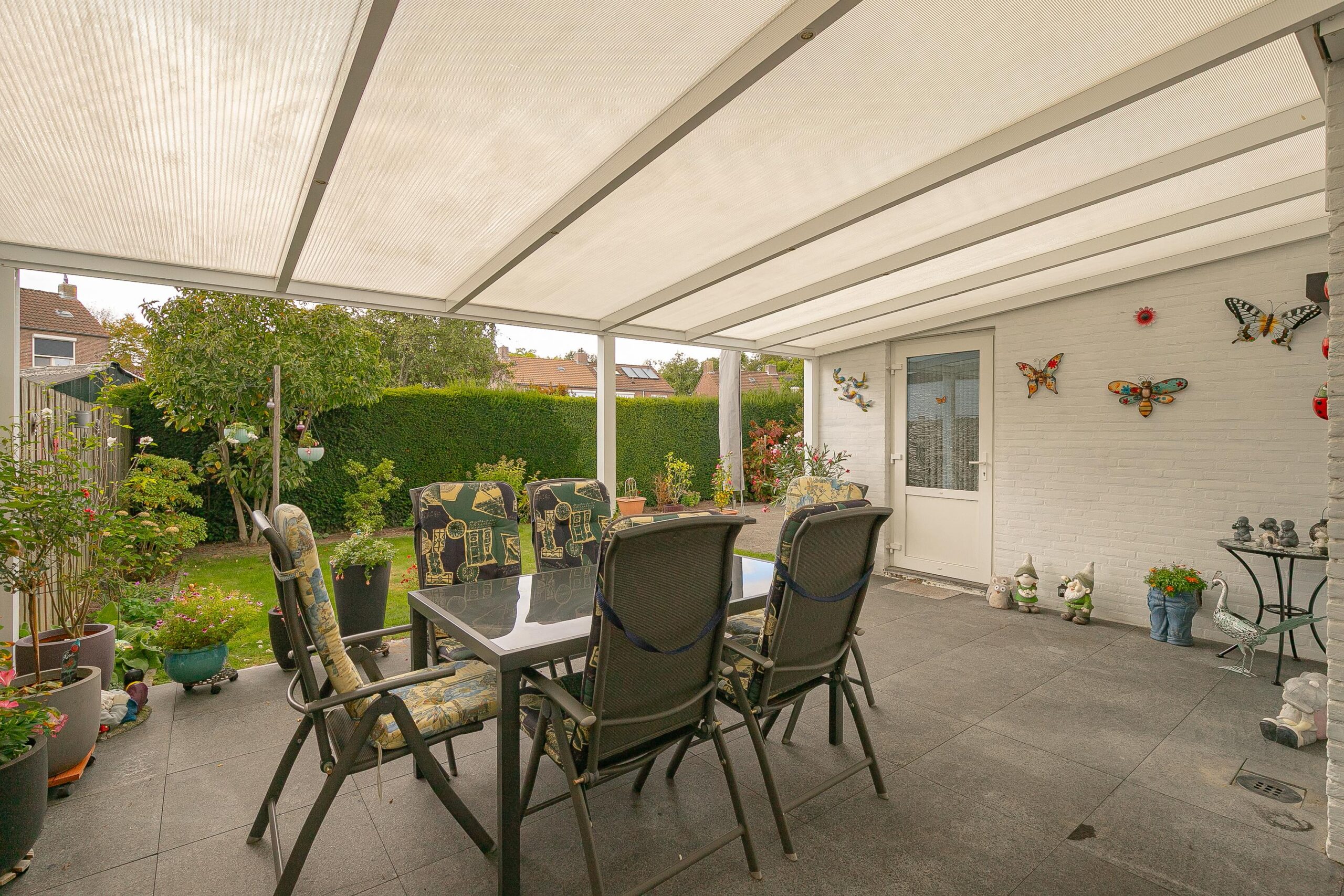 Hal met geheel meterkast (vernieuwde groepenkast met 7 groepen en 2 aardlekschakelaars) en modern toilet met wandcloset en fonteintje. Woonkamer (ca. 34m²) met veel lichtinval. Keuken met muurkast en aanrechtcombinatie voorzien van de volgende apparatuur: inductiekookplaat, combimagnetron, spoelbak en afzuigkap. De woonkamer en keuken zijn samen ca. 49m². De woonkamer loopt door in de aanbouw. In deze aanbouw is een airco geplaatst. Achter de woonkamer is een ruim overdekt terras van ca. 28m². Grote en verwarmde garage (ca. 33.6m²) met elektrisch bedienbare sectionaalpoort. In de garage zijn de witgoedaansluitingen en de garage is inpandig bereikbaar vanuit de aanbouw. Tevens is er een loopdeur met toegang tot de achtertuin. De woning is eveneens bereikbaar via een buurtweg aan de achterzijde van het perceel. Geheel omsloten, op het westen georiënteerde achtertuin.