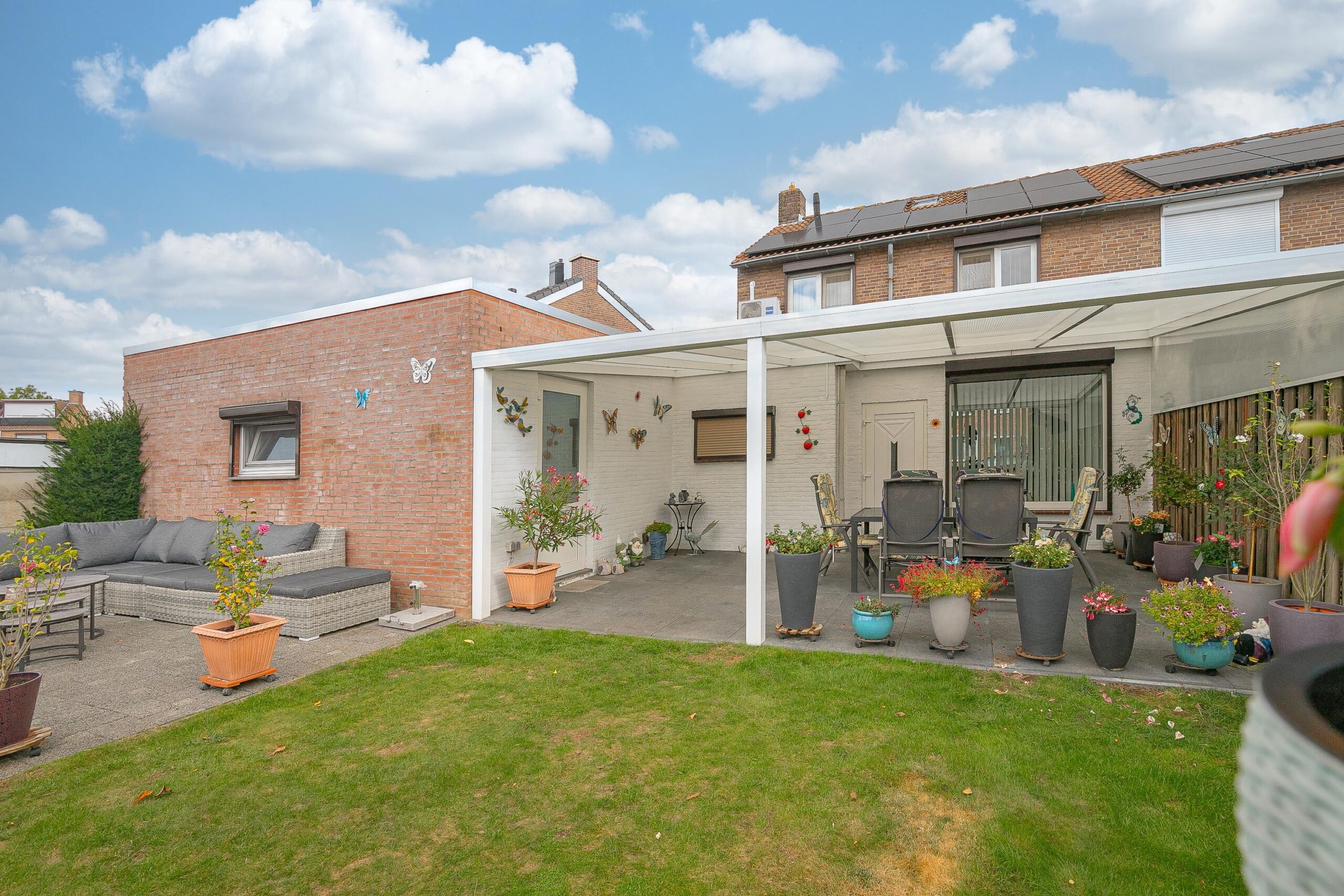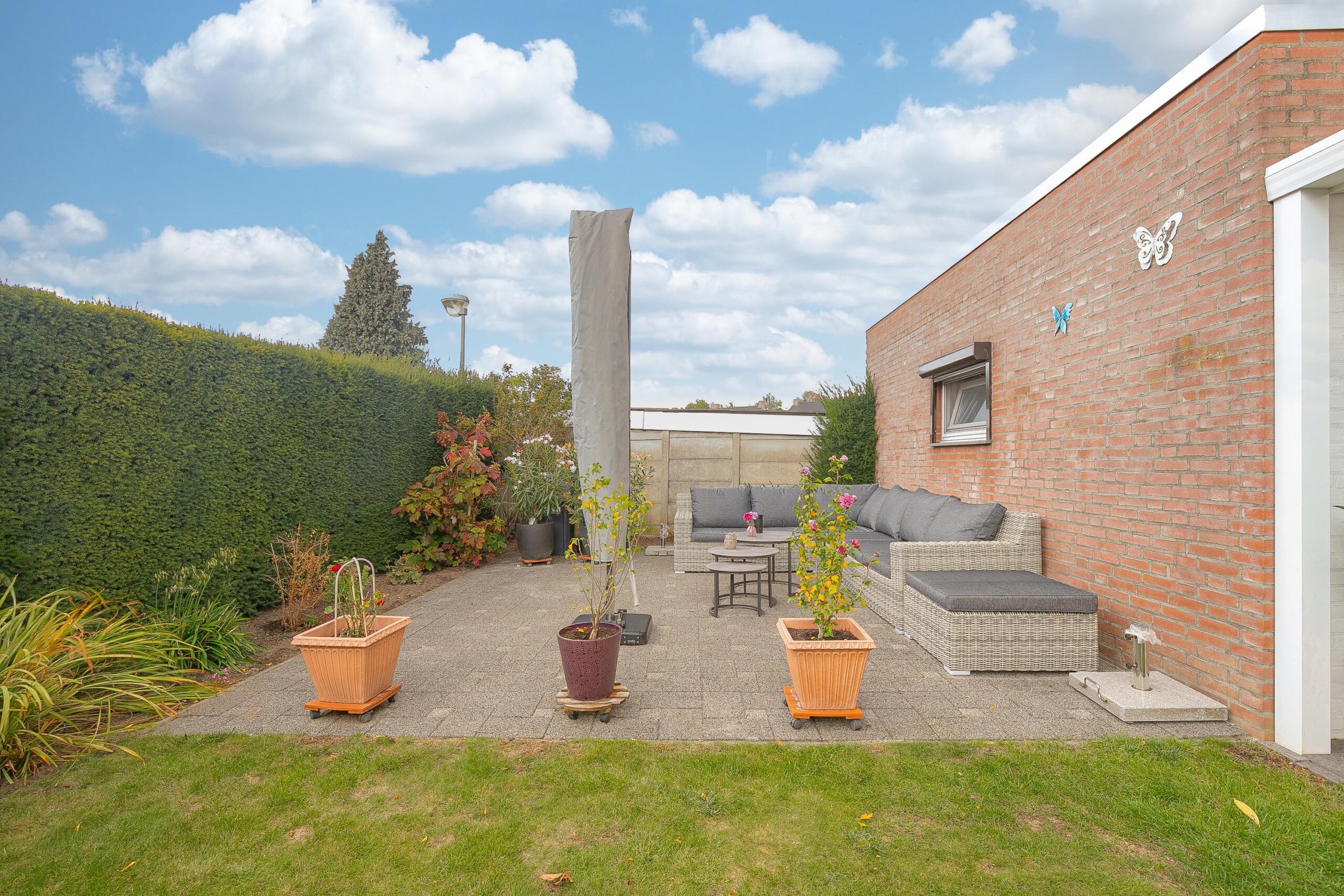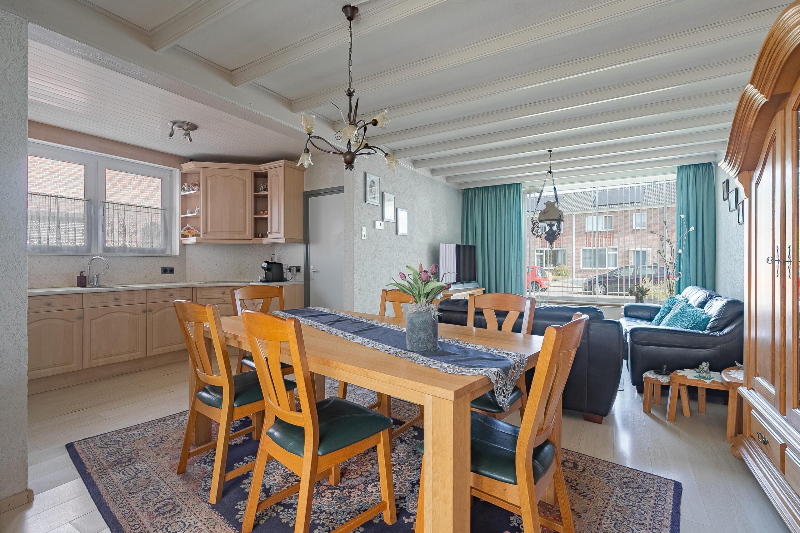 Hal met geheel meterkast (vernieuwde groepenkast met 7 groepen en 2 aardlekschakelaars) en modern toilet met wandcloset en fonteintje. Woonkamer (ca. 34m²) met veel lichtinval. Keuken met muurkast en aanrechtcombinatie voorzien van de volgende apparatuur: inductiekookplaat, combimagnetron, spoelbak en afzuigkap. De woonkamer en keuken zijn samen ca. 49m². De woonkamer loopt door in de aanbouw. In deze aanbouw is een airco geplaatst. Achter de woonkamer is een ruim overdekt terras van ca. 28m². Grote en verwarmde garage (ca. 33.6m²) met elektrisch bedienbare sectionaalpoort. In de garage zijn de witgoedaansluitingen en de garage is inpandig bereikbaar vanuit de aanbouw. Tevens is er een loopdeur met toegang tot de achtertuin. De woning is eveneens bereikbaar via een buurtweg aan de achterzijde van het perceel. Geheel omsloten, op het westen georiënteerde achtertuin.
