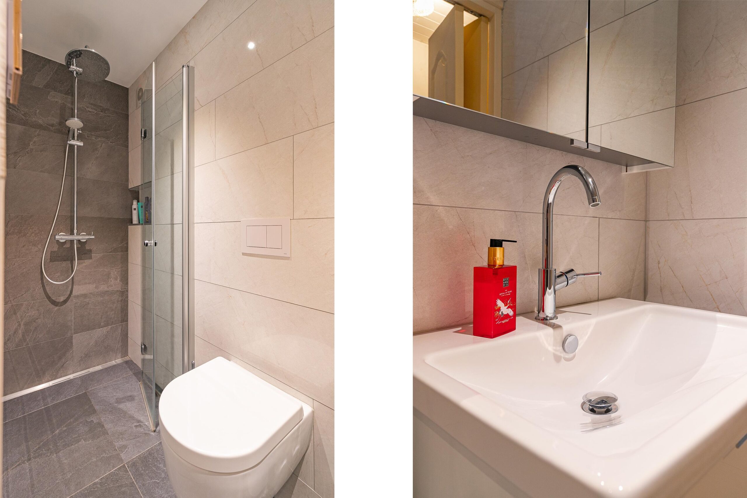 – De hal, het toilet en de badkamer zijn voorzien van elektrische vloerverwarming;