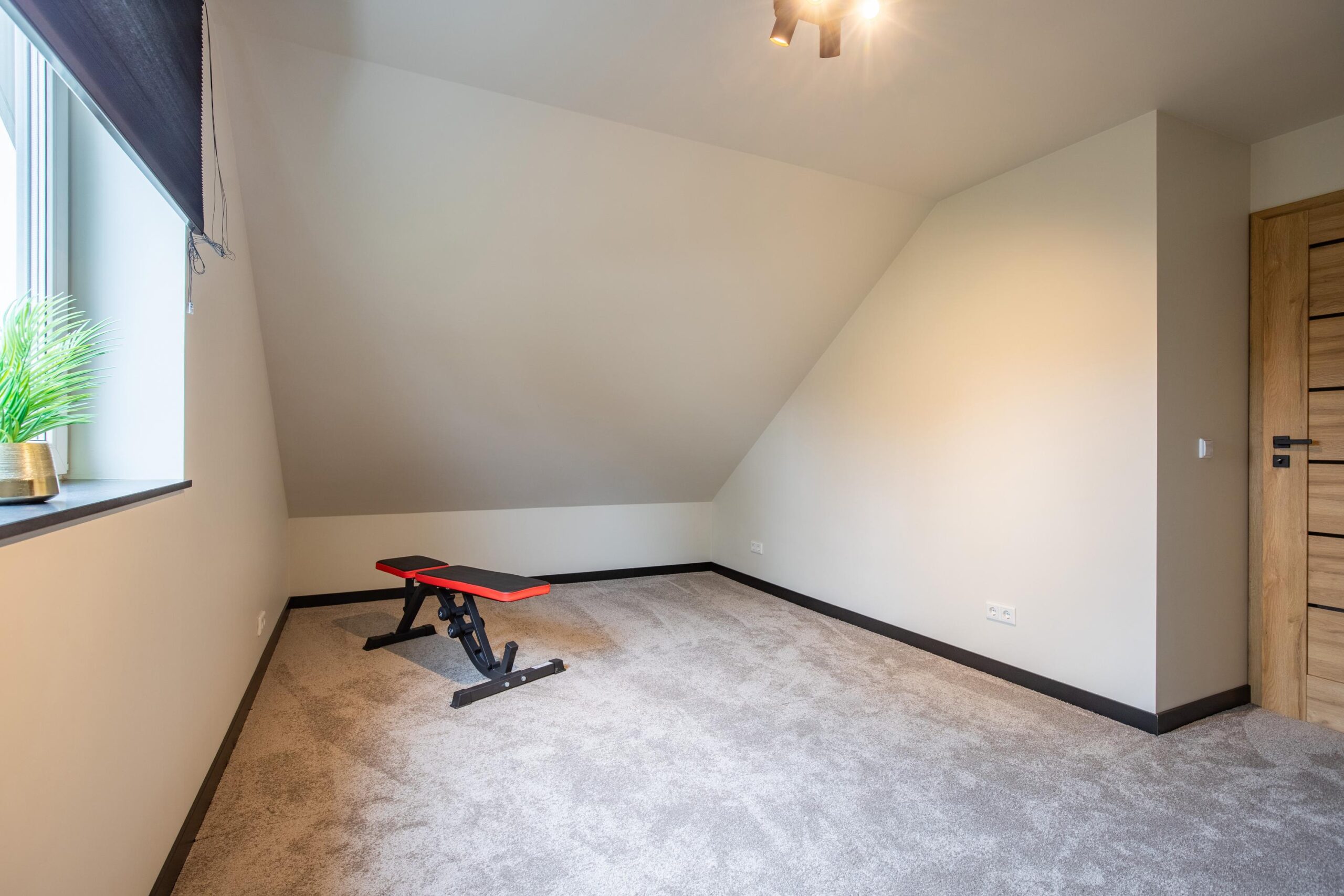 De overloop is ruim 26 m2 en is momenteel voorzien van een eigen thuiswerkplek. Door de ruimte is het zelfs nog mogelijk, indien gewenst, om een extra slaapkamer of hobbykamer te creëren. De twee slaapkamers zijn ruim bemeten en circa 16 m2 en 19 m2. De badkamer is voorzien van een douche, wastafel met meubel en een zwevend closet. Er is een aparte techniekruimte alwaar de warmtepomp met elektrische boiler opgesteld staan.