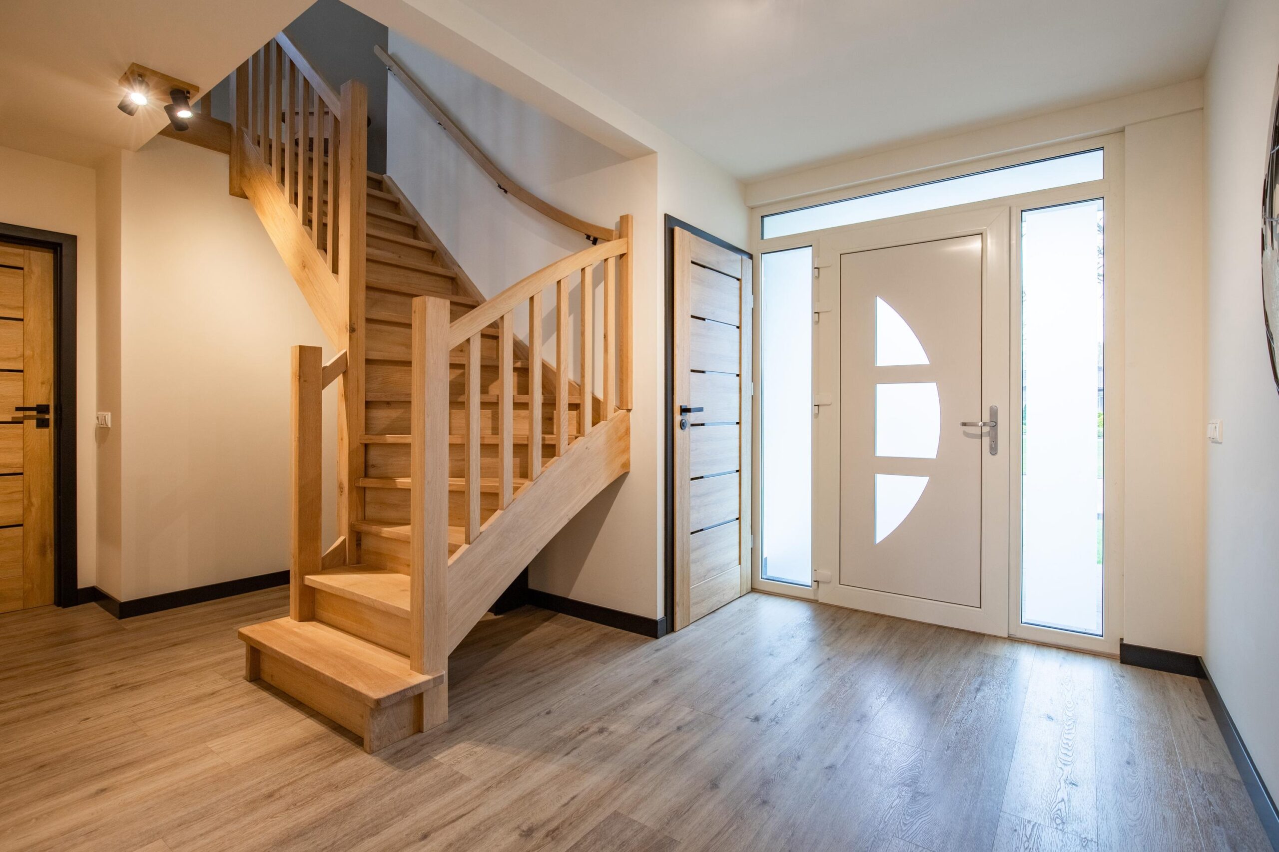 Je komt binnen via een overdekte entree. Ruime hal die overloopt in een gang naar verschillende vertrekken in de woning. De hal is voorzien van een nieuwe trapopgang naar de eerste verdieping. Er is een berging waarin de omvormer van de zonnepanelen is opgesteld en de meterkast. De meterkast is geheel vernieuwd en uitgebreid omdat de woning in 2021 geheel is voorzien van nieuwe elektra. Er is een moderne gastentoilet die is voorzien van een zwevend closet.