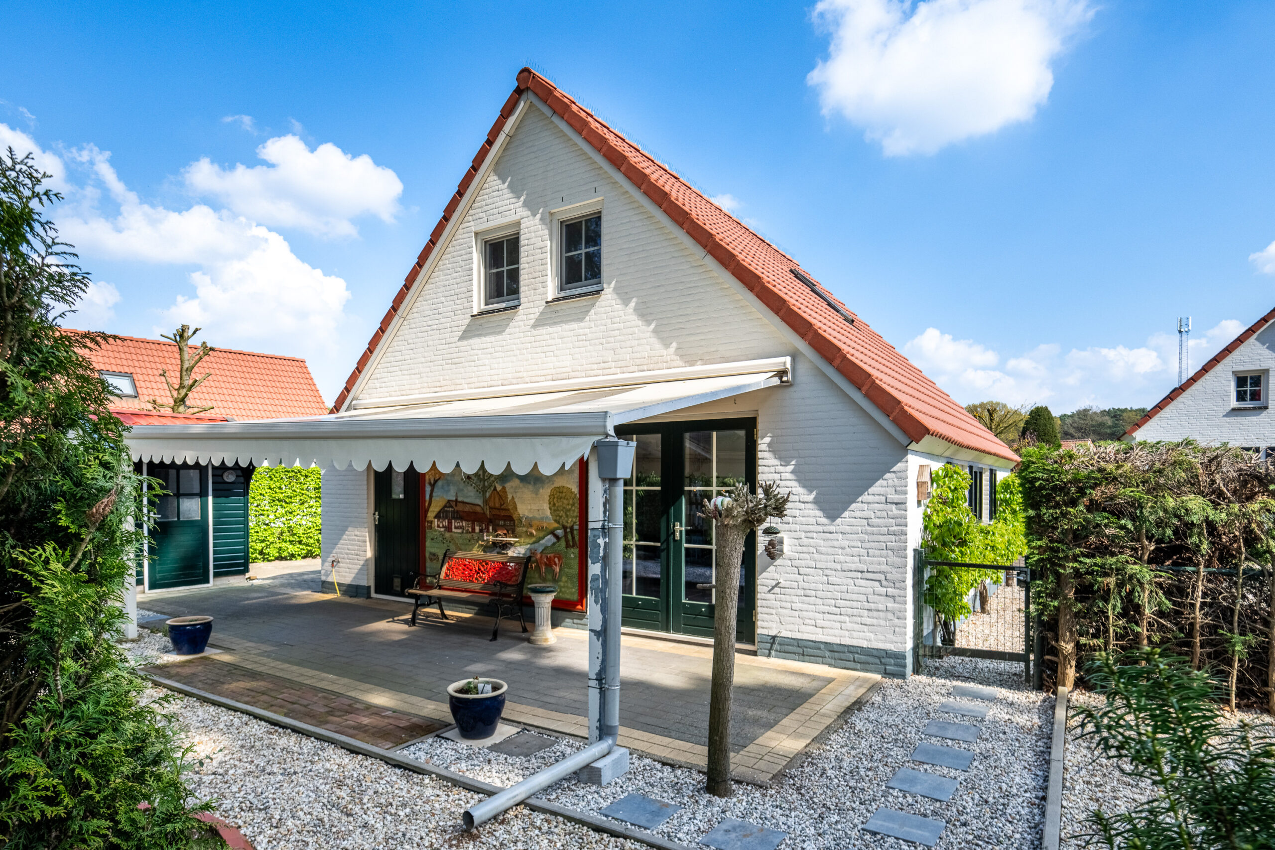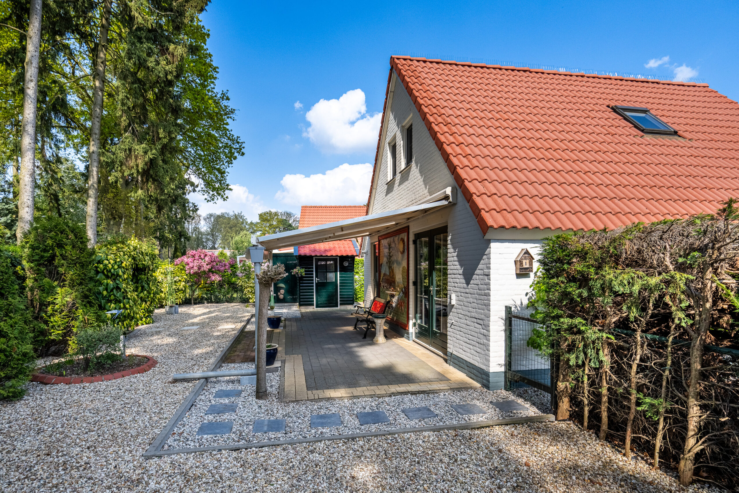 Buiten wordt het pas écht genieten. Rondom de woning ligt een fraai aangelegde tuin waar je altijd wel een fijn plekje vindt in de zon of juist in de schaduw. Onder de overkapping zit je heerlijk beschut, terwijl het tuinhuis zorgt voor extra comfort en mogelijkheden. Dit gaat absoluut een plek worden waar je heerlijk buiten kunt genieten.