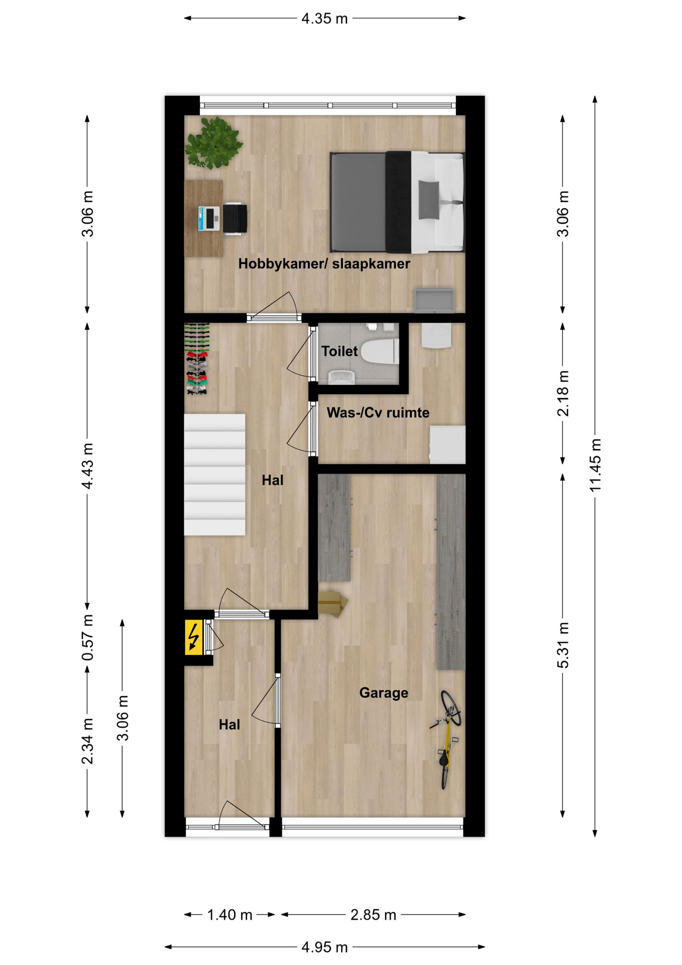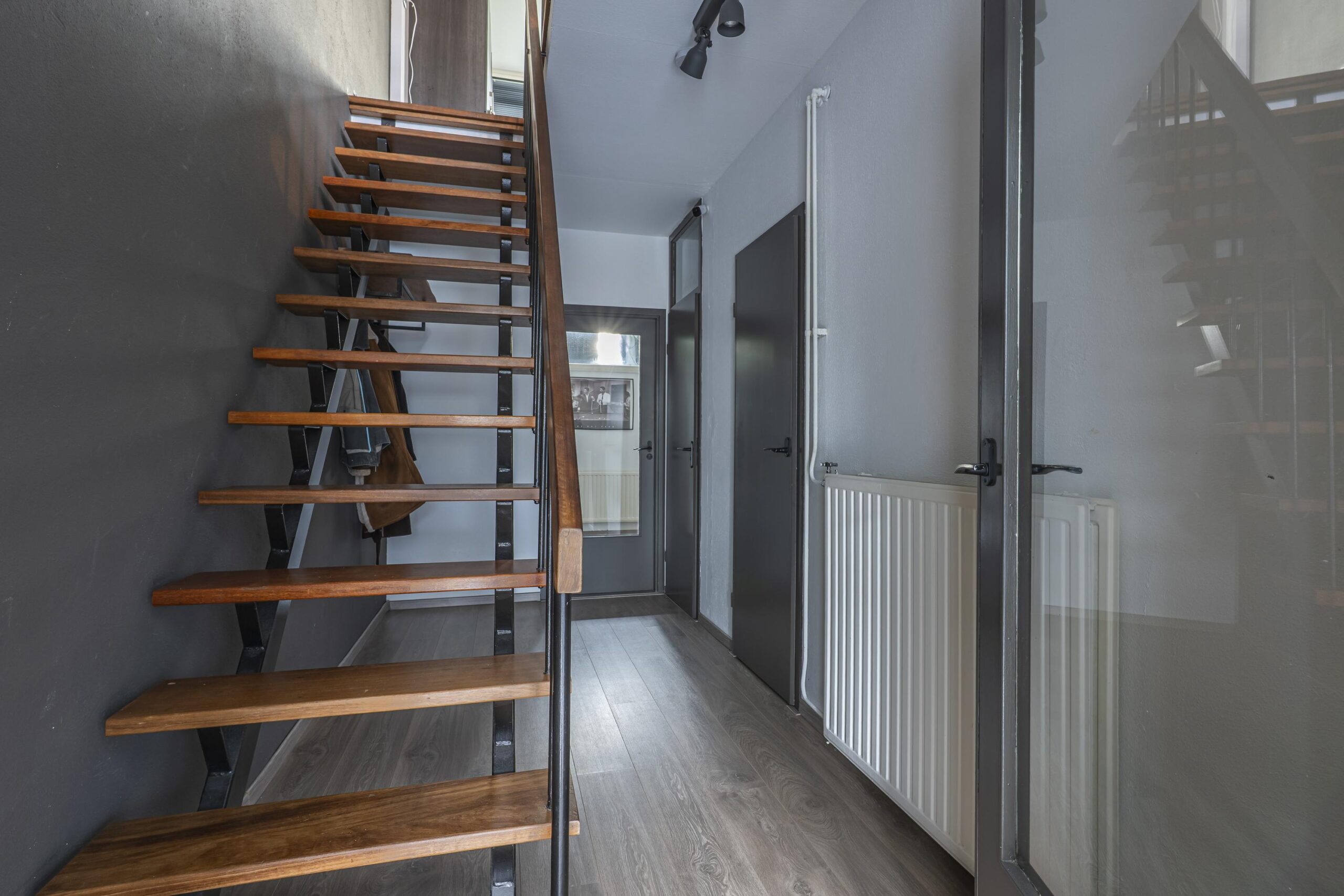 Middels de recent aangelegde oprit/voortuin is de entree te bereiken. De hal, met vernieuwde meterkast, geeft toegang tot de gang met trapopgang en tevens tot de garage met laminaatvloer van ca. 14m². Op de begane grond is één slaapkamer (momenteel in gebruik als hobbykamer) van ca. 13m² met laminaatvloer en vaste wastafel met meubel gelegen. Separate toiletruimte met vrijhangend toilet en fontein. Tevens is hier de wasruimte gesitueerd alwaar tevens de HRC ketel van het merk Vaillant HRC (eigendom, 2017) is opgesteld.