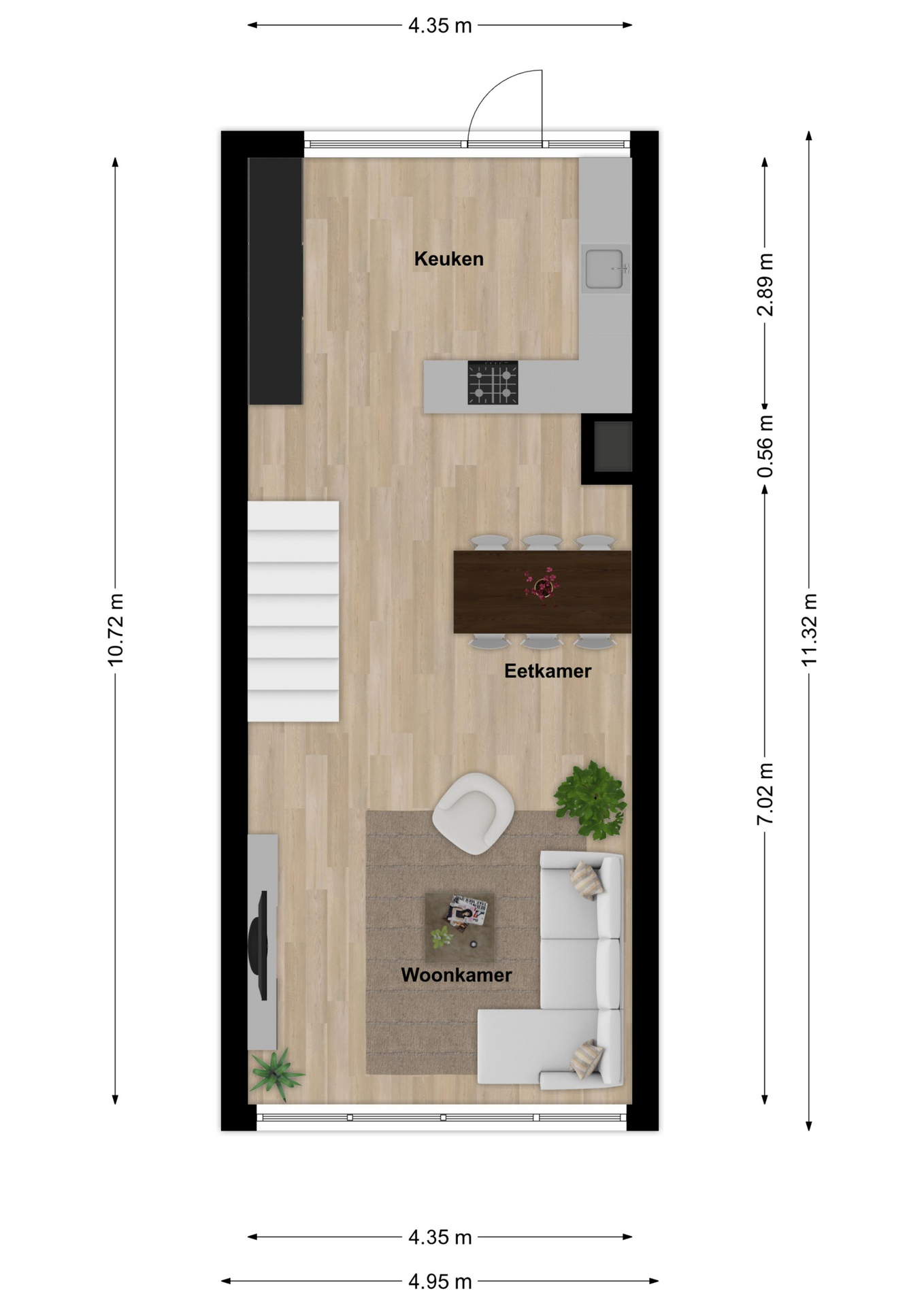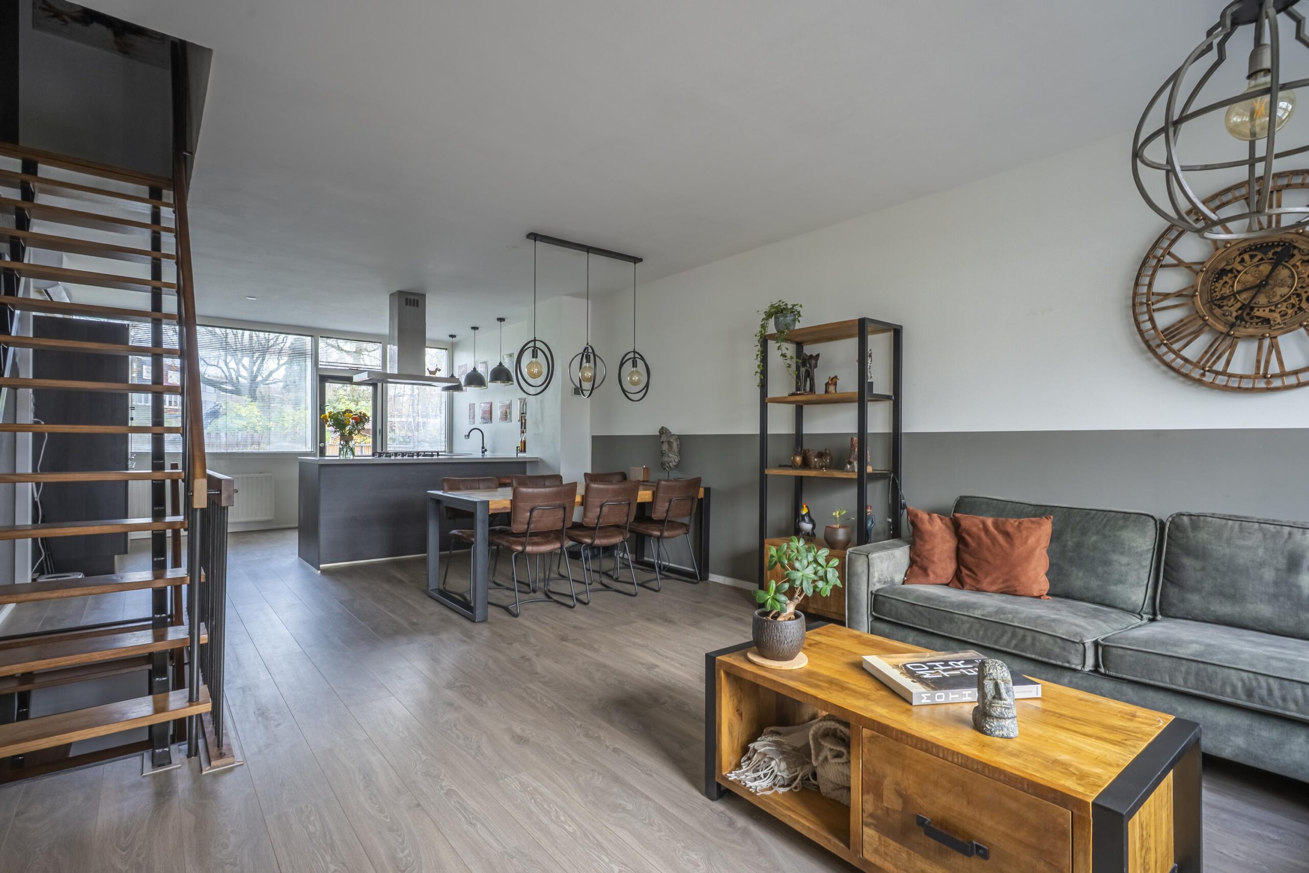 Zeer ruime woonkamer met open keuken. Deze gehele verdieping is ca. 47m² groot en voorzien van een moderne laminaatvloer met wanden en plafond in strak stucwerk. De open keuken is voorzien van een moderne keukeninstallatie met de navolgende AEG apparatuur: 5-pits gaskookplaat, afzuigkap, combi-oven, vaatwasser (2025), koelkast en vrieskast. In de keuken bevindt zich een airconditioning voor zowel koelen als verwarmen.