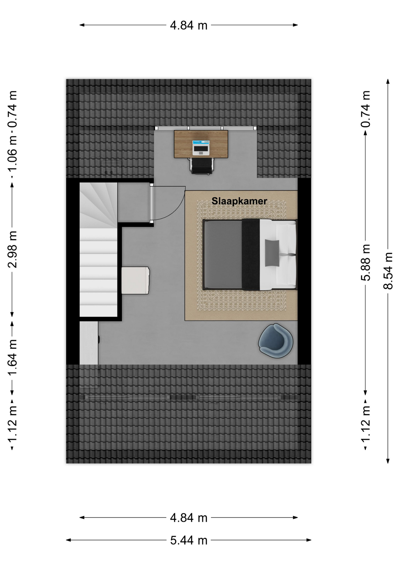 Middels vaste trap te bereiken tweede verdieping. De zolderverdieping is recent afgetimmerd, geisoleerd en klaar gemaakt om in gebruik te nemen als slaapkamer of hobbyruimte. in 2023 is hier een dakkapel gerealiseerd.