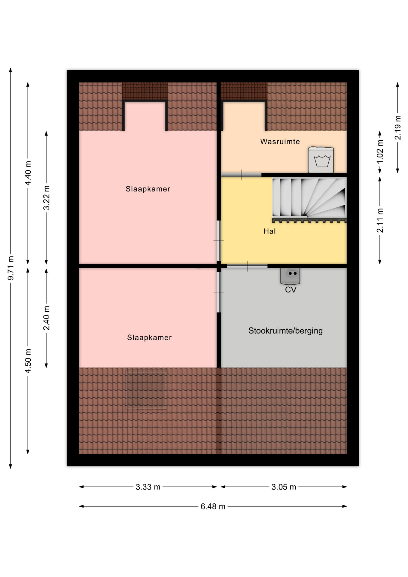 Middels vaste trap te bereiken overloop met toegang tot twee ruime slaapkamers, de stookruimte en de wasruimte. De slaapkamers zijn ca. 12m² en 7m² groot. Aan de achterzijde is een dakkapel gerealiseerd voor de nodige lichtinval en ruimte. De wasruimte is ca. 4m² groot en voorzien van de witgoedaansluitingen. In de stookruimte (ca. 7m²) is de Cv-installatie aanwezig (eigendom, bouwjaar 2023).