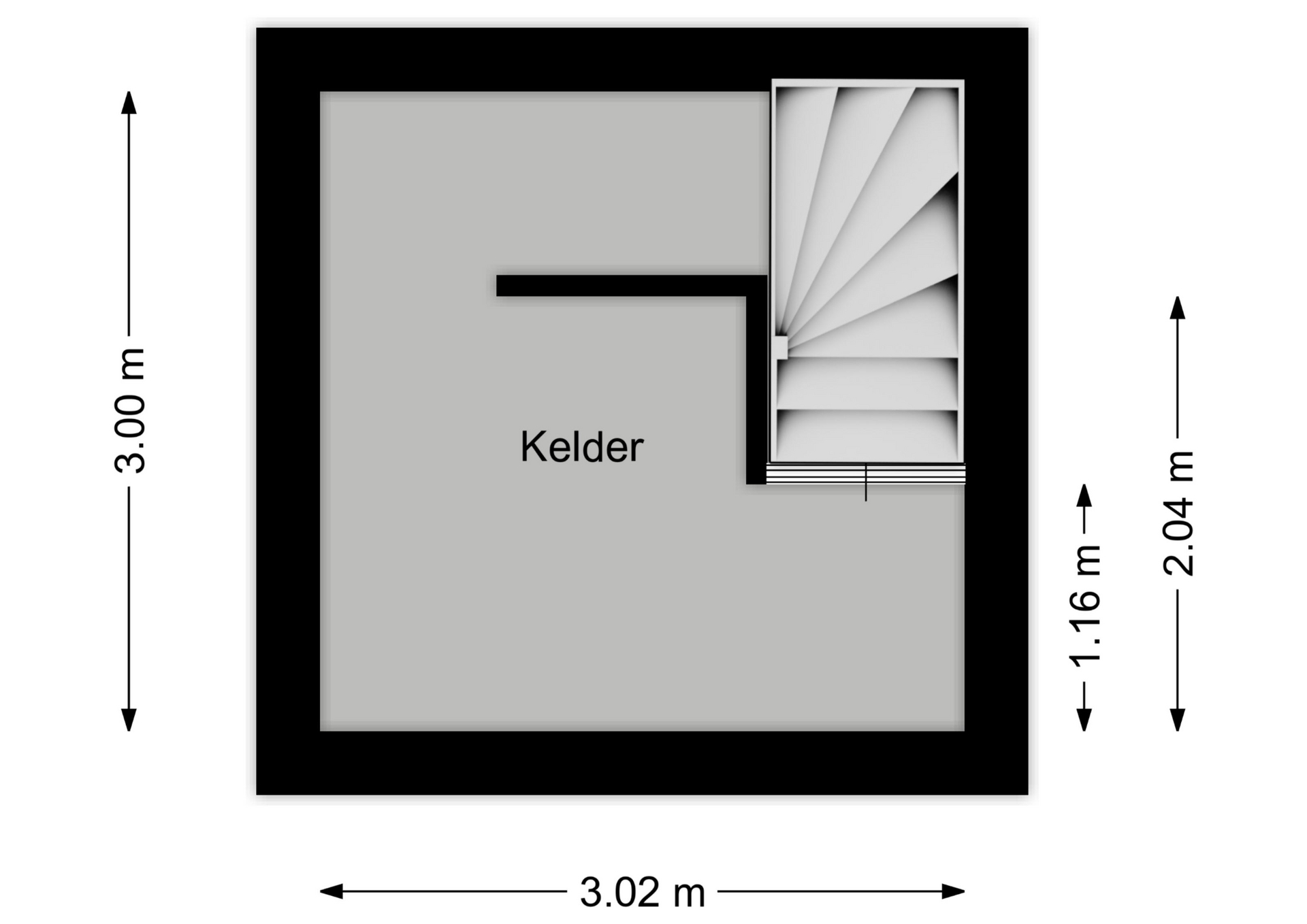 Betegelde kelder (ca. 9m²) met een goede stahoogte uitermate geschikt als bergruimte.