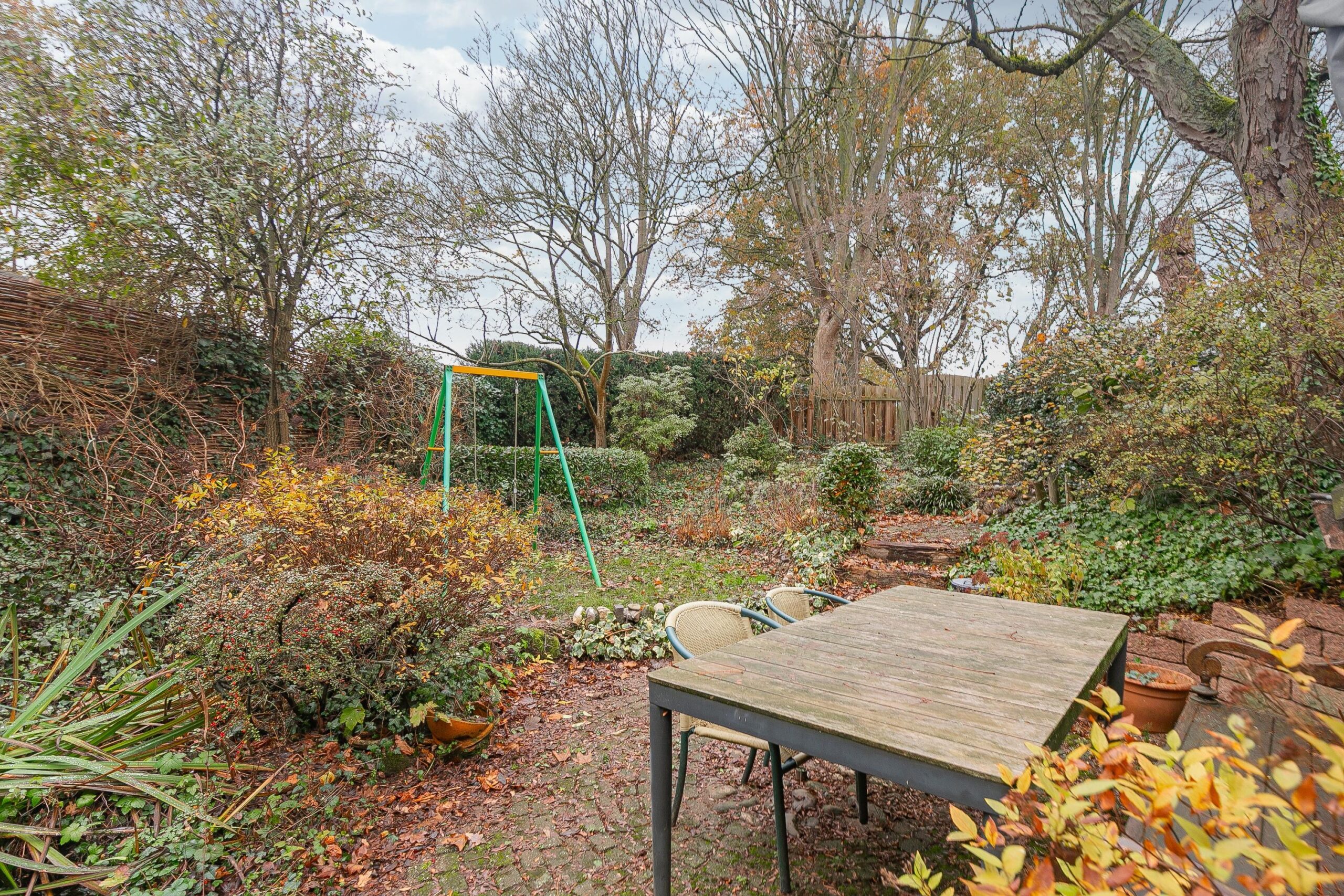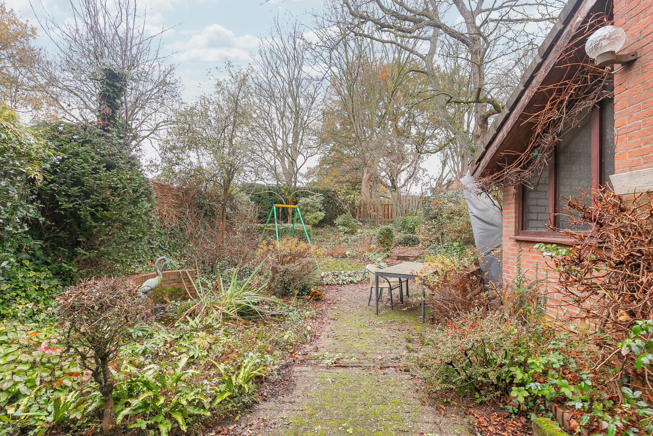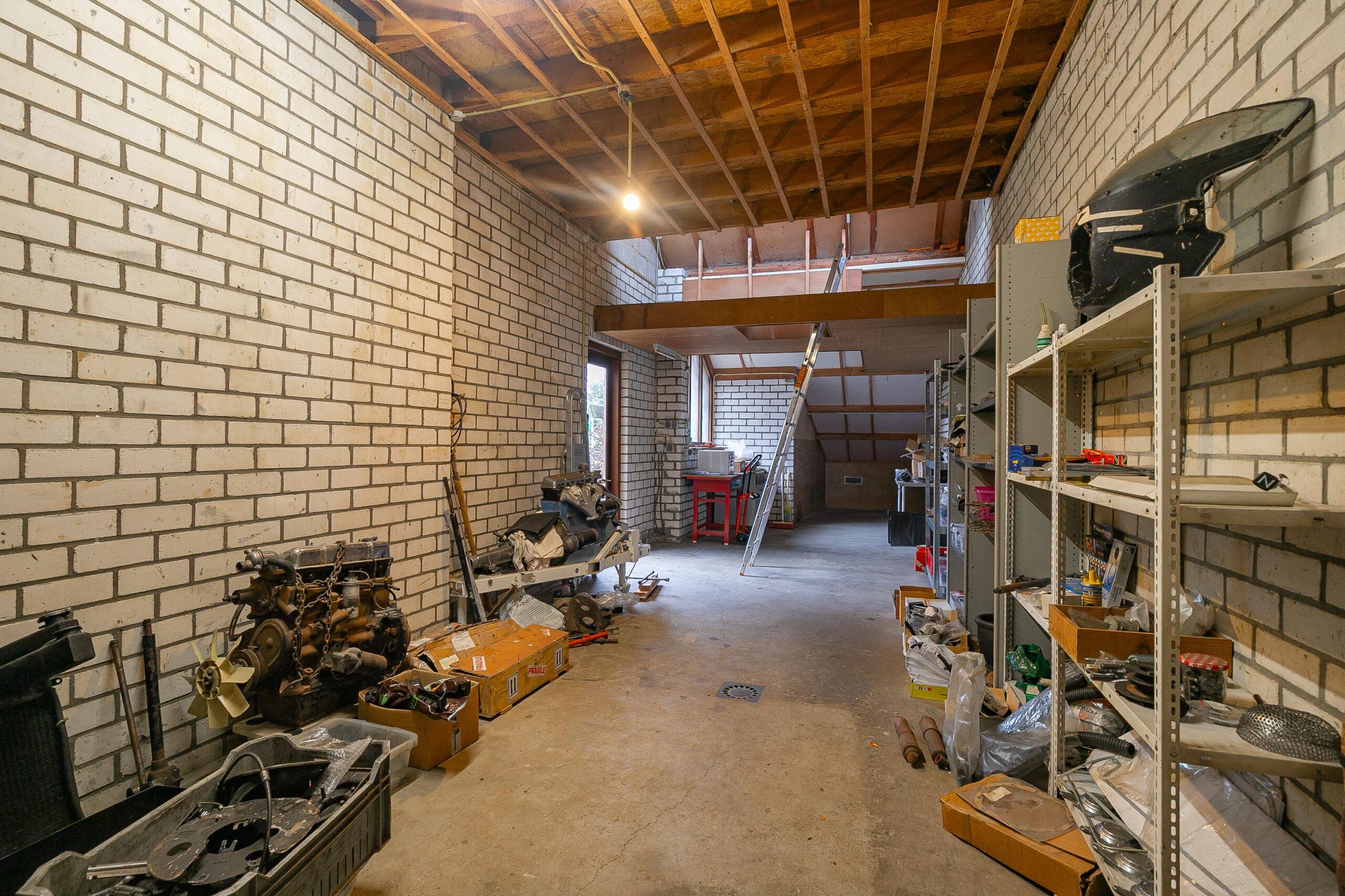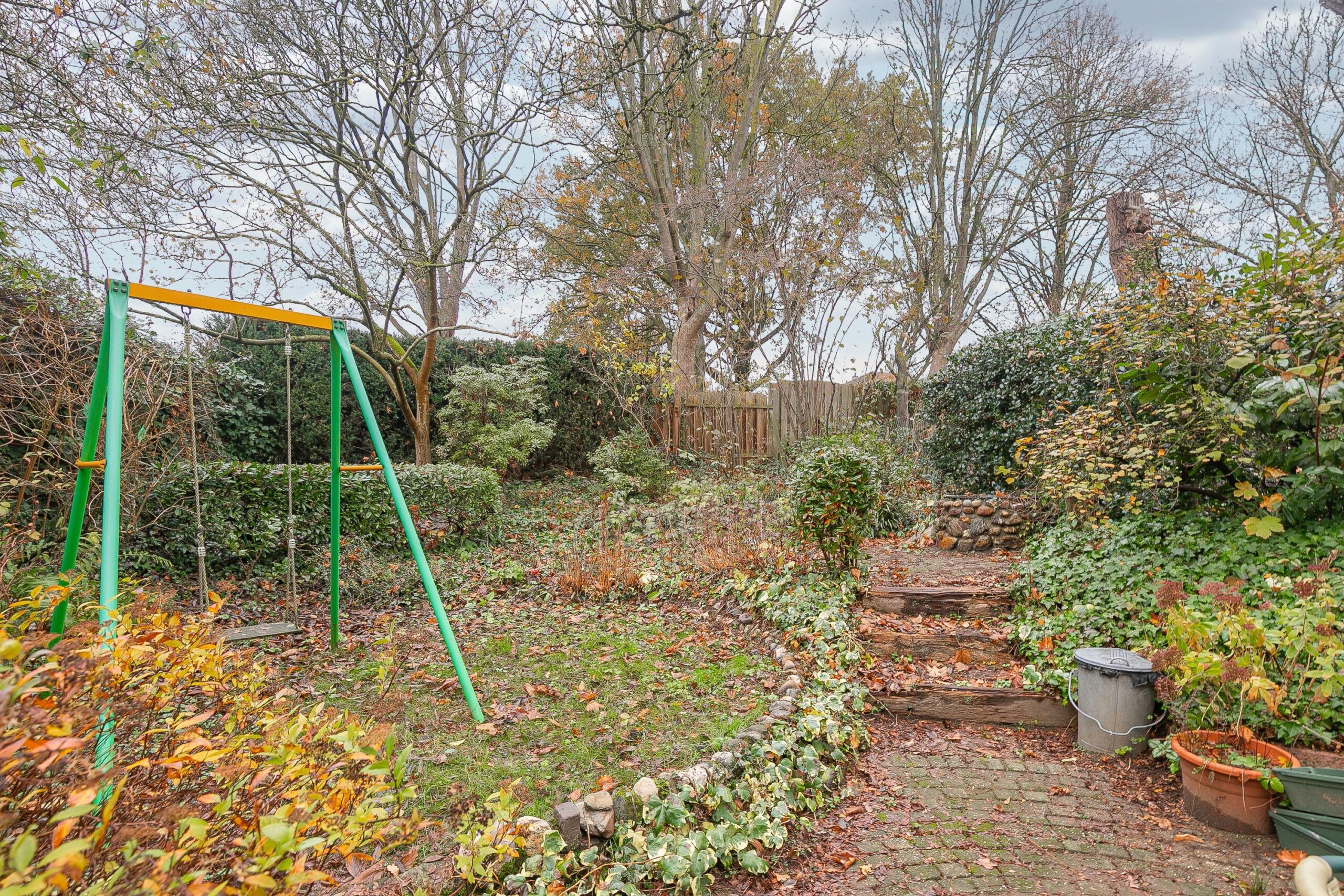 Zeer ruime achtertuin (ca. 180m²) gesitueerd op het noordwesten. De tuin is voorzien van diverse zithoekjes, een vijver, plantenborders en toegang tot de garage. Deze XL-garage (ca. 38m²) is voorzien van elektra en een praktische vliering. Vanuit de garage is er eveneens toegang tot de oprit aan de voorzijde, welke voldoende parkeermogelijkheden biedt voor meerdere voertuigen.