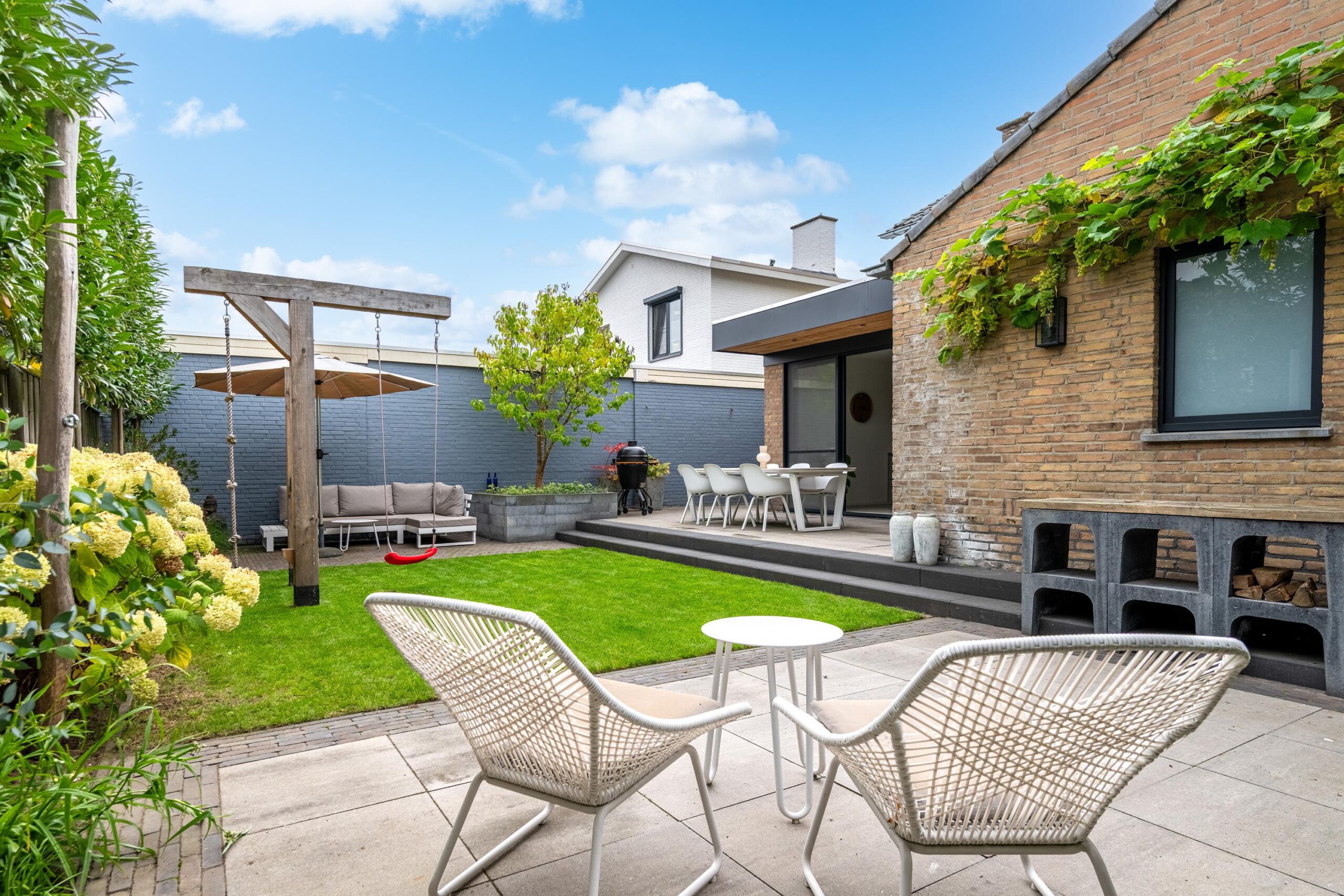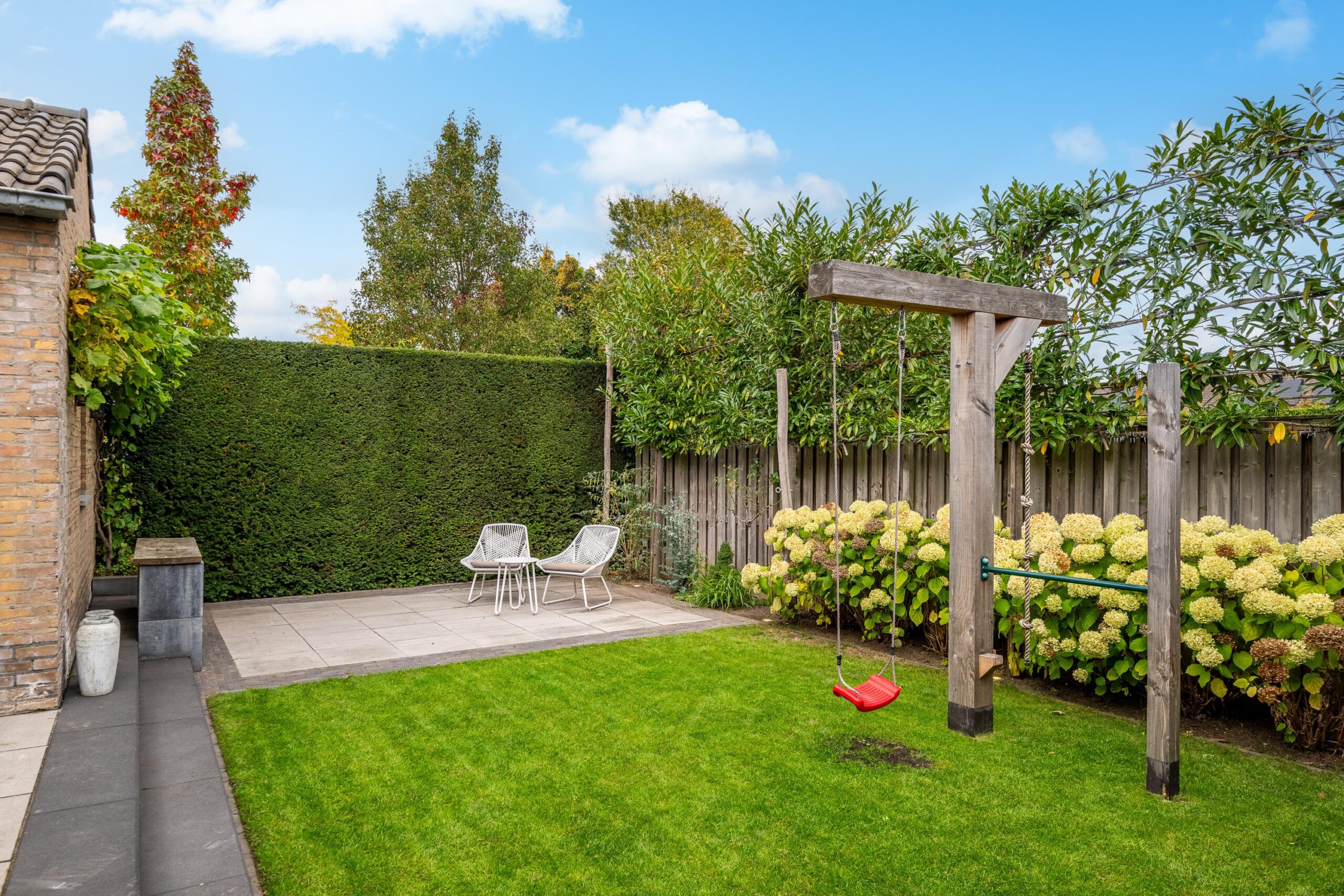 De woning beschikt over een ruime oprit met parkeergelegenheid op eigen terrein en een grote garage. De onderhoudsvriendelijke achtertuin (101 m²) is ingesloten en biedt veel privacy. De tuin is bereikbaar via de keuken, garage en een poort aan de zijkant van de woning.