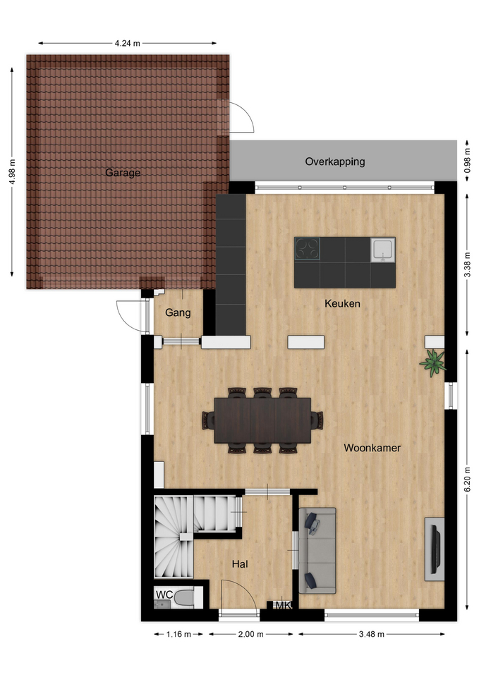 • Ruime L-vormige woonkamer (ca. 33 m²);