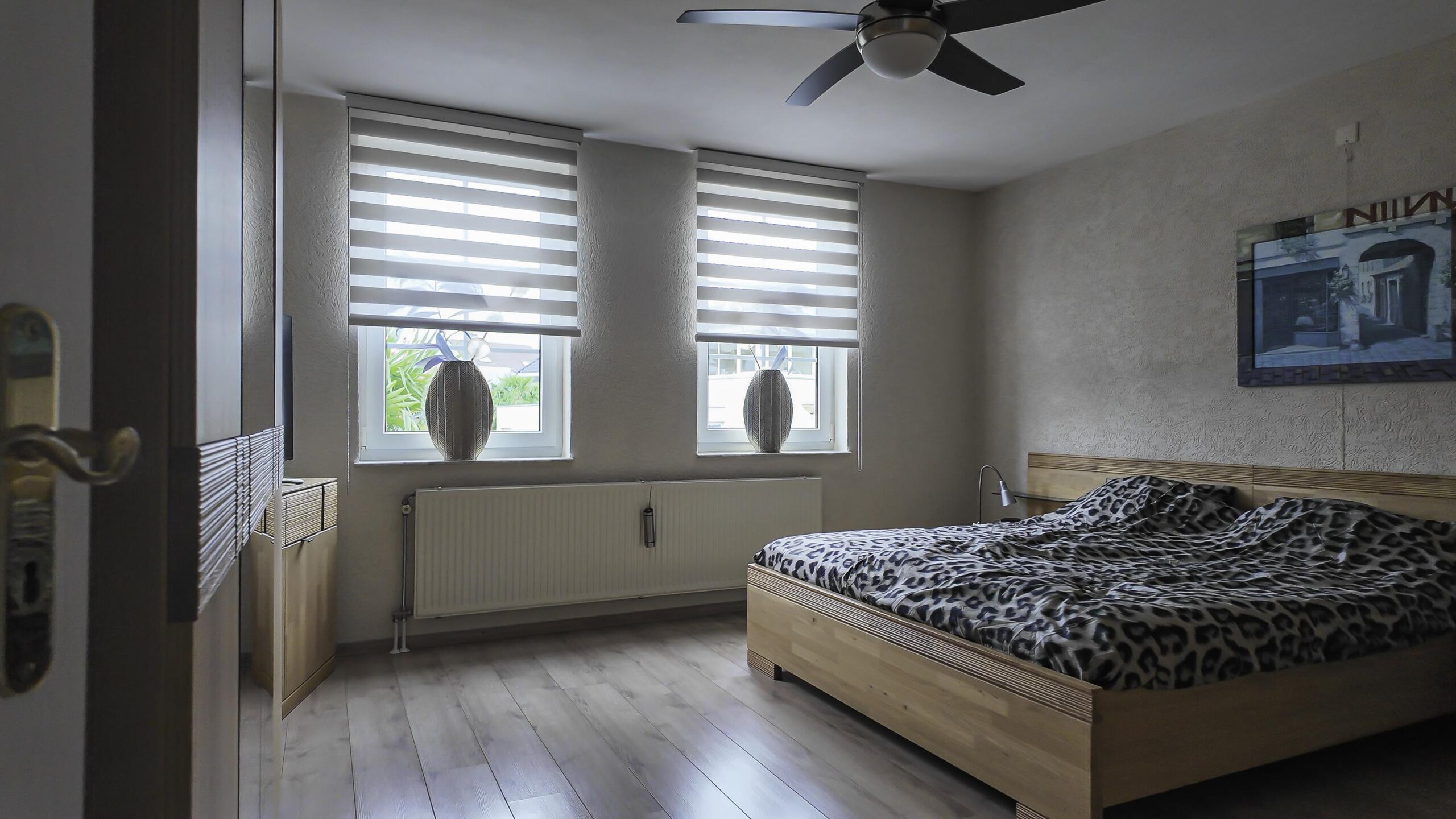 De slaapkamer is groot ca. 25 m² en is voorzien van een laminaatvloer.