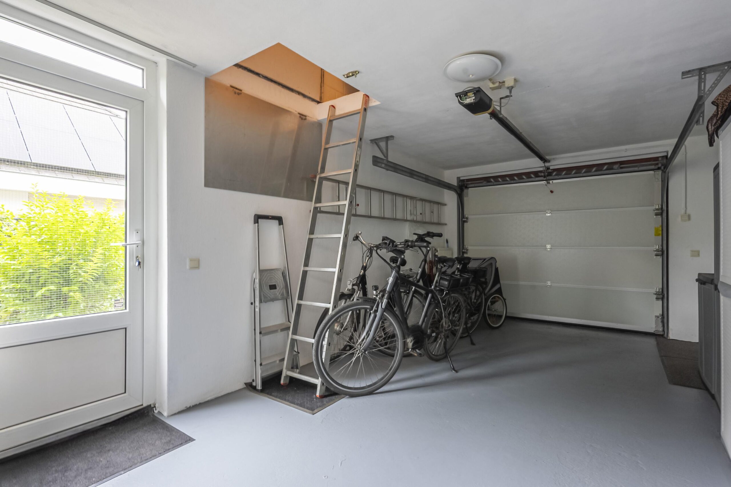 De inpandig bereikbare garage is groot ca. 19 m² en is voorzien van een elektrische poort en zeer ruime bergzolder alwaar de CV-installatie is gesitueerd.