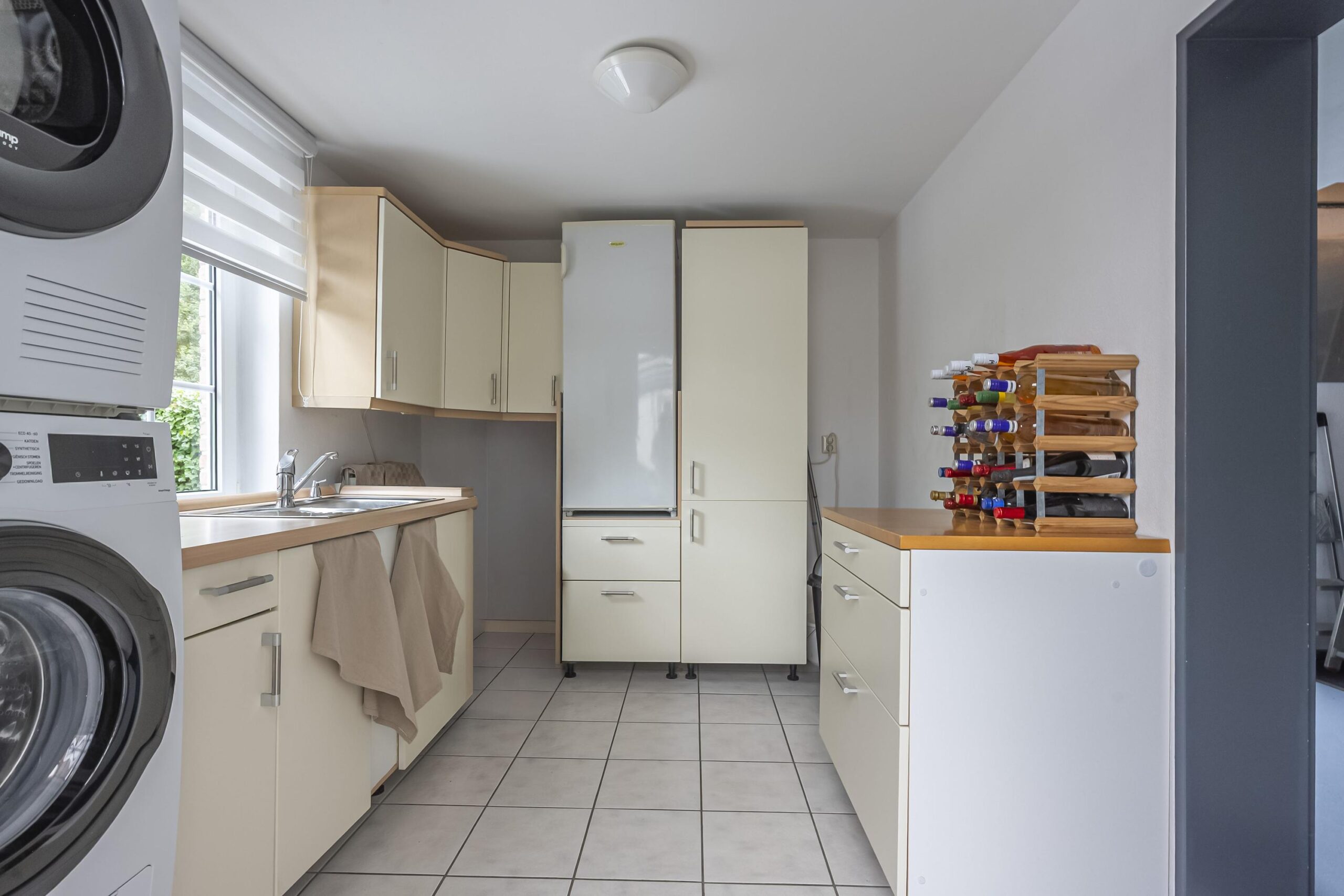 Vanuit de garage is de bijkeuken te bereiken welke ca. 9 m² groot is en is voorzien van een keukenblok met spoelbak en de witgoedaansluitingen. Eveneens is vanuit de bijkeuken de achtertuin bereikbaar.