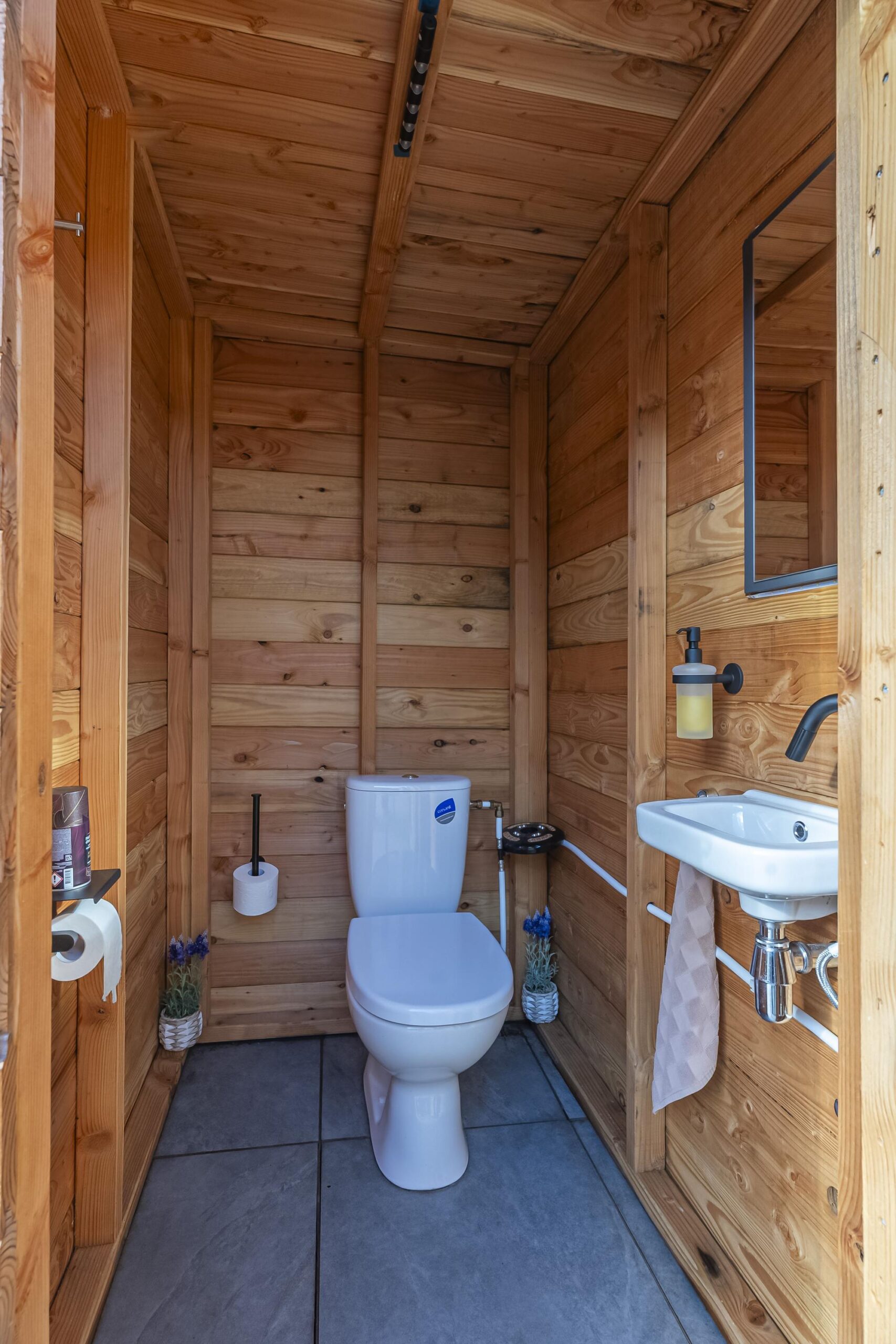 - Badkamervoorzieningen Ligbad, toilet, douche, dubbele wastafel