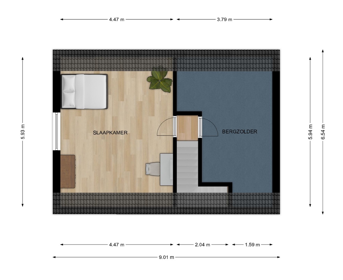 Middels vaste trap te bereiken zolderverdieping alwaar een 4e slaapkamer en een ruime berging zijn gesitueerd.