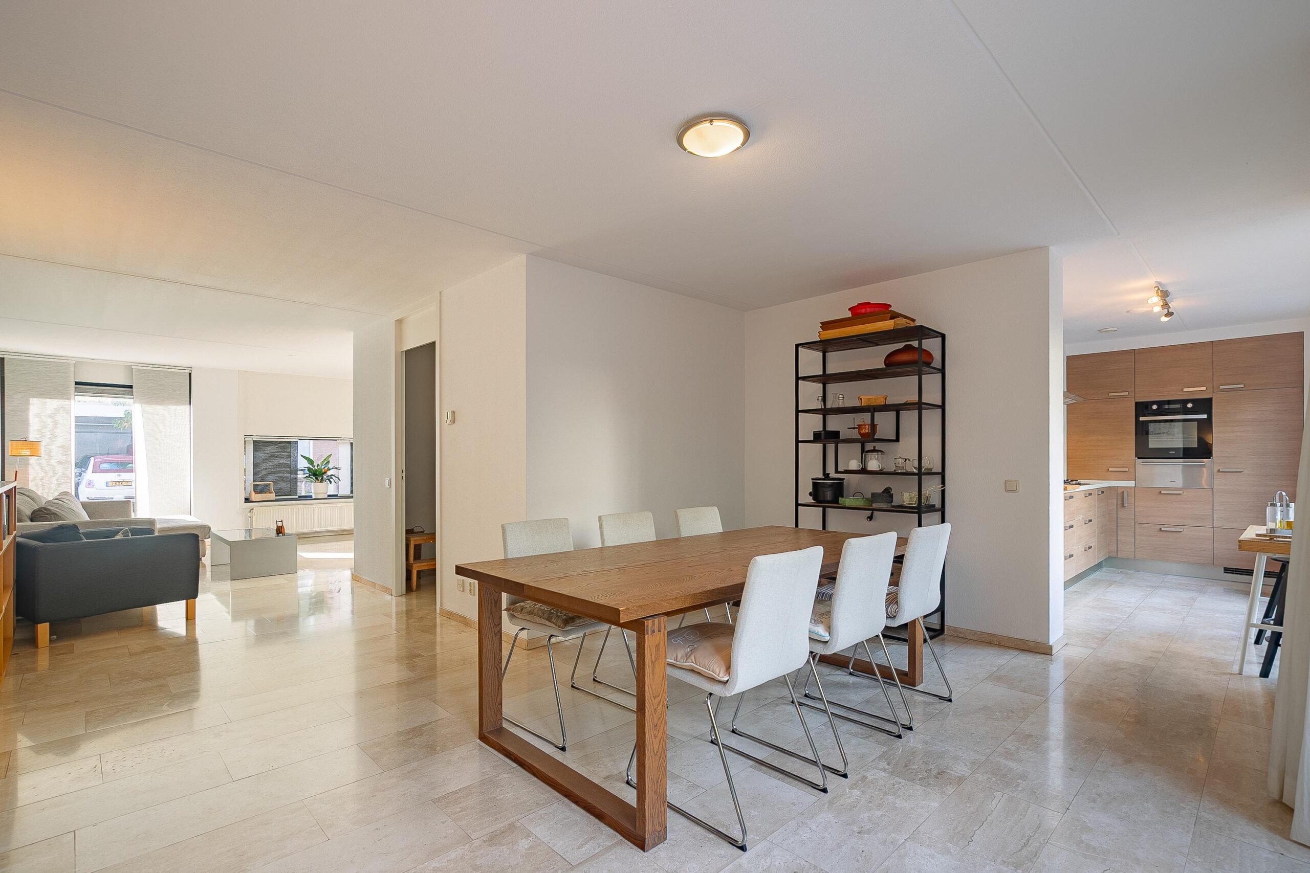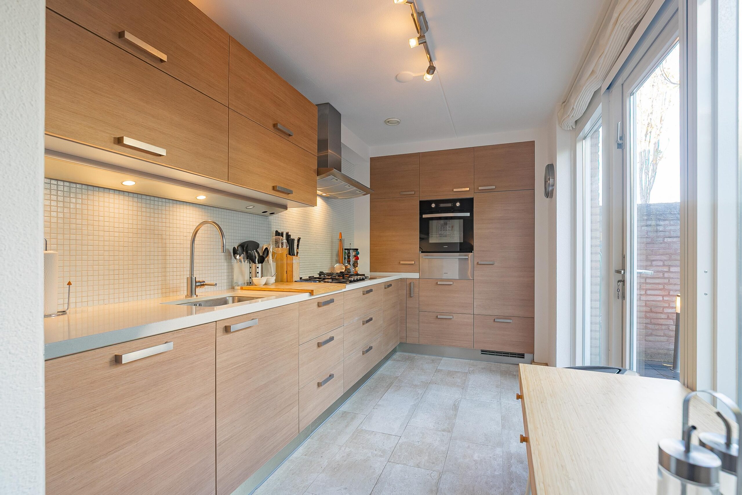 Aankomst via eigen oprit op, met aansluitend de inpandige garage (ca. 18 m²). De garage is voorzien van een wasaansluiting en de cv-installatie is hier gesitueerd (Remeha uit 2016 in eigendom). De entree/hal is netjes afgewerkt en biedt toegang tot de meterkast, een modern en volledig betegeld toilet, de garage en de woonkamer. Het toilet is half betegeld en voorzien van een hangcloset en een fonteintje. De ruime woonkamer (ca. 40 m²) is een ware leefruimte met veel natuurlijke lichtinval dankzij de grote ramen en schuifpui. De begane grond is voorzien van vloerverwarming. De lichte tegelvloer geeft de ruimte een sfeervolle uitstraling. De open keuken is opgesteld in een praktische hoekvorm met kastenwand en voorzien van moderne inbouwapparatuur zoals onder andere een combi-oven, vaatwasser, 4-pits gaskookplaat met een 5e wokpit, spoelbak en koelkast. Vanuit zowel de woonkamer als de keuken is er directe toegang tot de fraai aangelegde achtertuin. Deze tuin van ca. 48m² is onderhoudsvriendelijk, biedt veel privacy en is ideaal voor wie houdt van buiten zitten in alle rust.