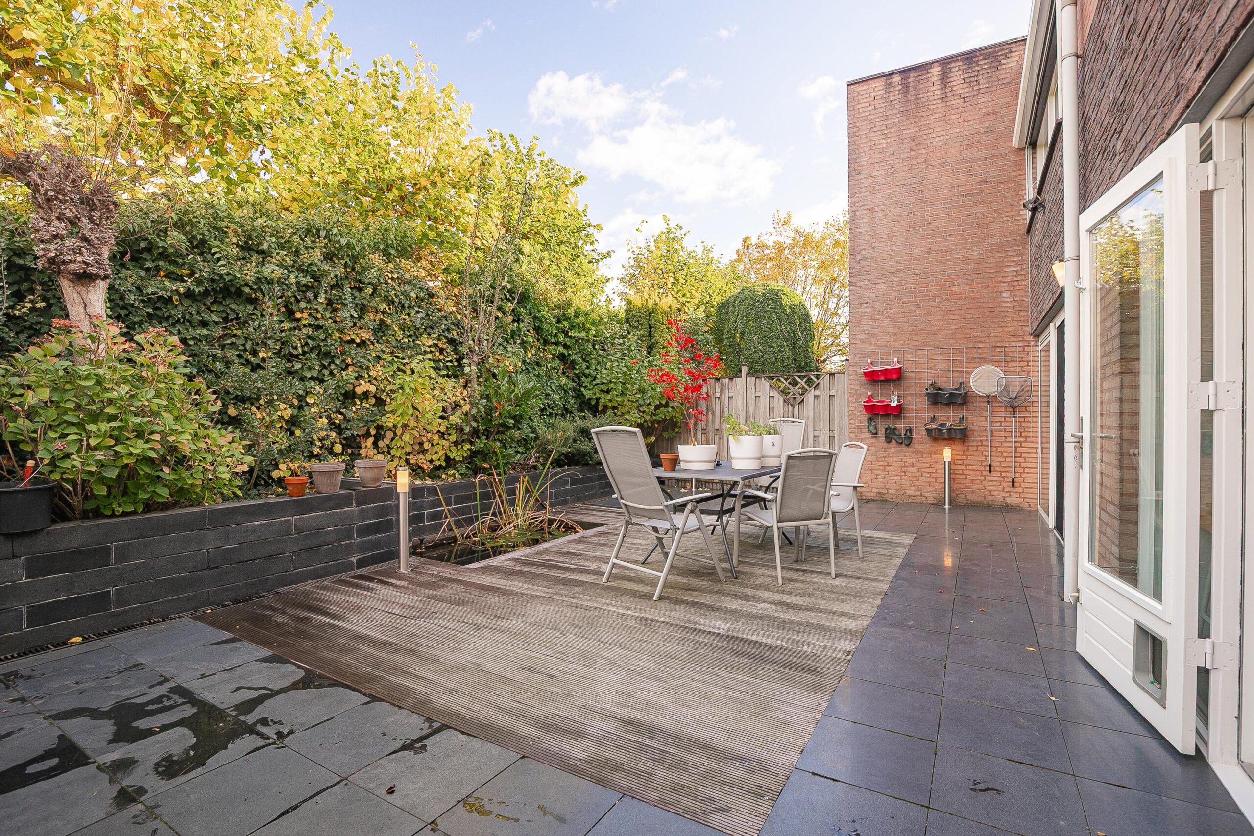 De achtertuin, gelegen op het noorden, is verrassend zonnig door de open ligging. Met een oppervlakte van ca. 48 m² is er voldoende ruimte voor een terras en beplanting. De tuin is voorzien van een vijver en een afgeschermd hok waar naast de pomp van de vijver de GFT en eventueel tuin materiaal handig kan worden opgeborgen. Dankzij de slimme indeling en het groene karakter geniet u hier in alle rust van uw eigen buitenruimte.