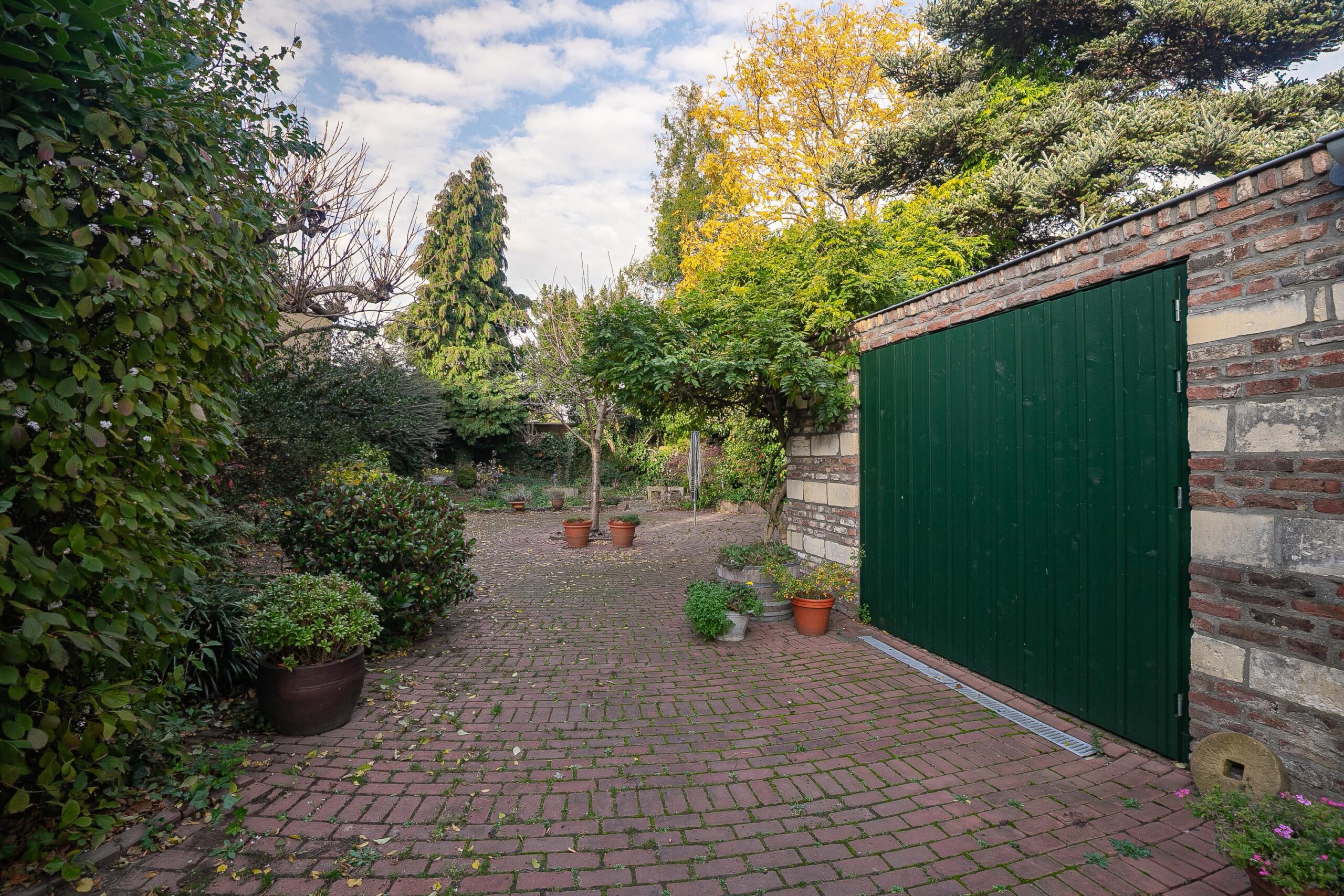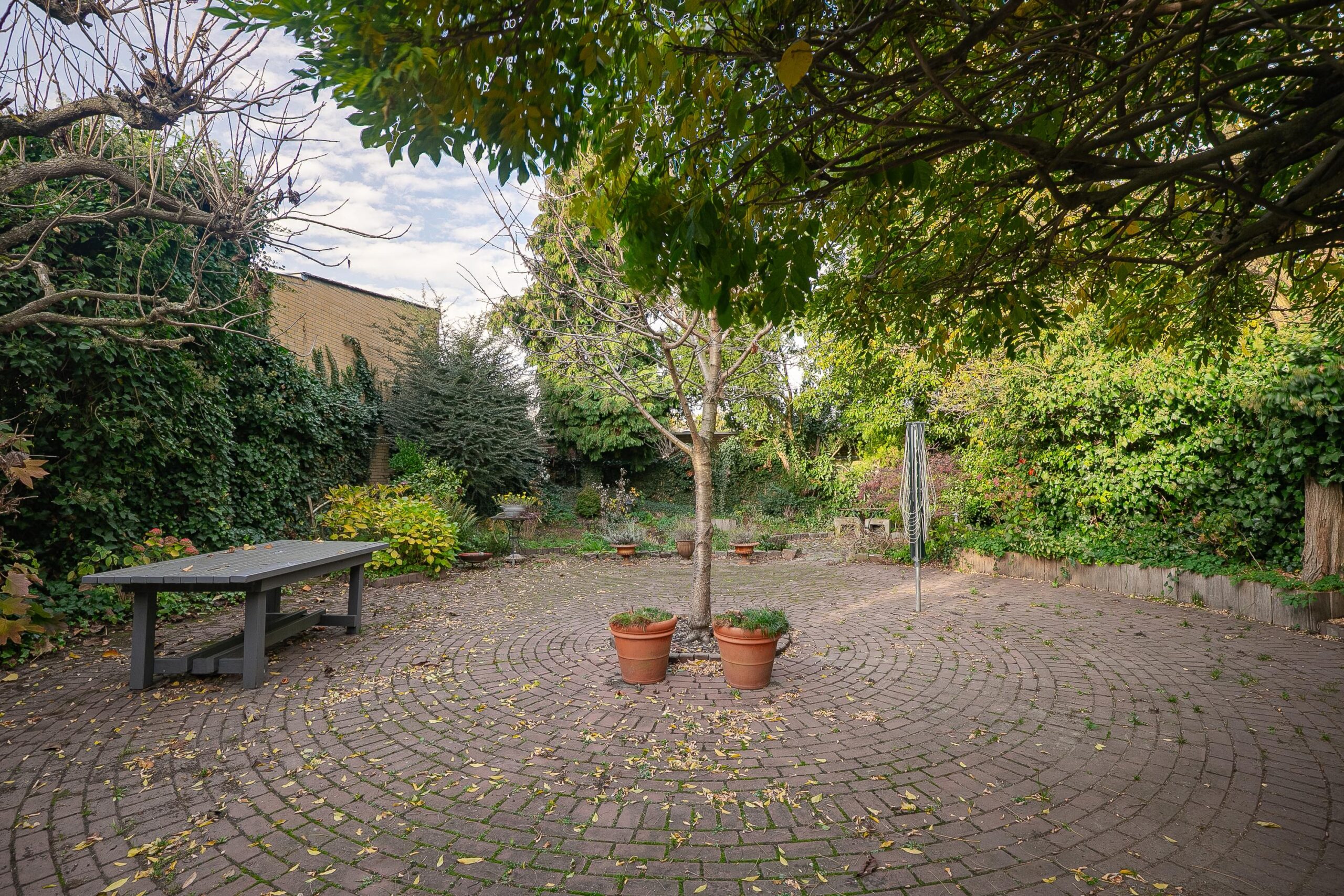De tuin vormt een ware oase van rust. Deze royale buitenruimte is bereikbaar via een poort met oprit en wordt omringd door volwassen beplanting, wat zorgt voor veel privacy en een groene, uitnodigende sfeer.