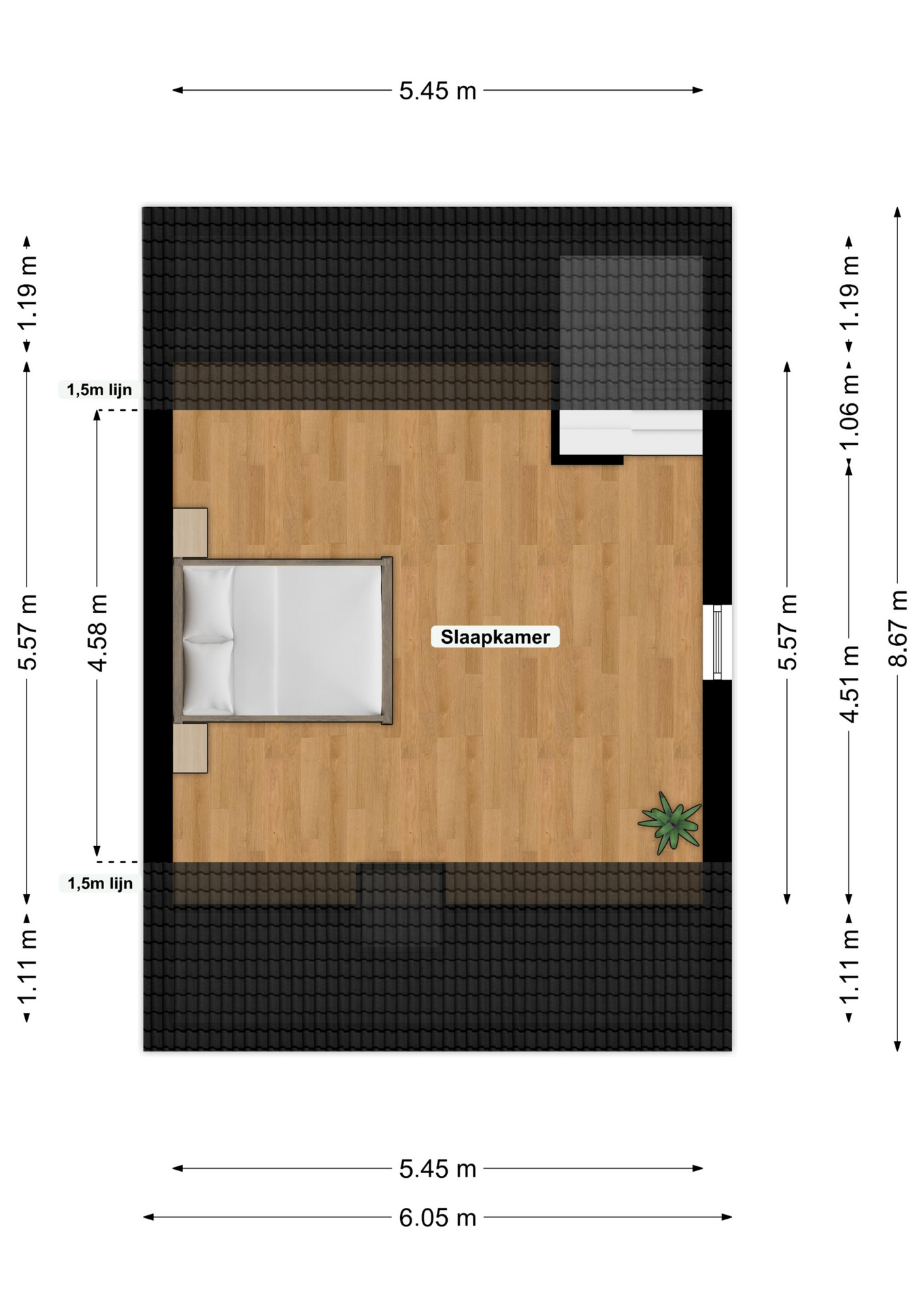 Via vaste trap te bereiken derde goed afgewerkt geïsoleerde slaapkamer met airconditioning, patrijspoort en ingebouwde kasten. De slaapkamer is respectievelijk: