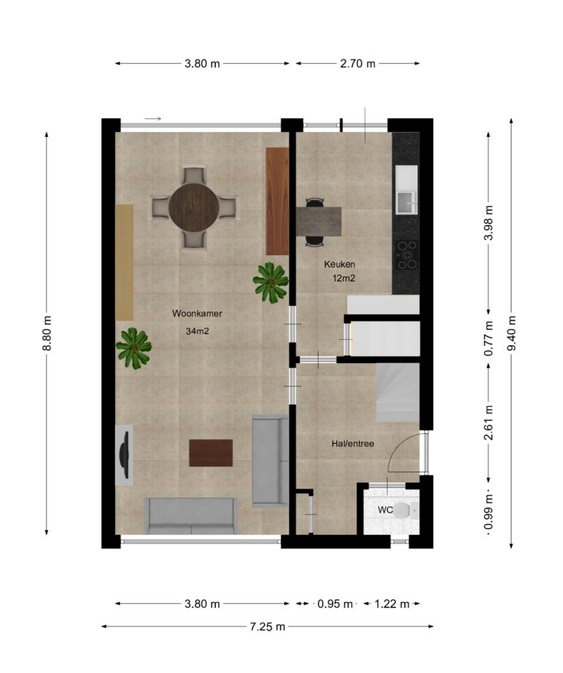 - Oppervlakte gebouwgebonden ca. 23 m2