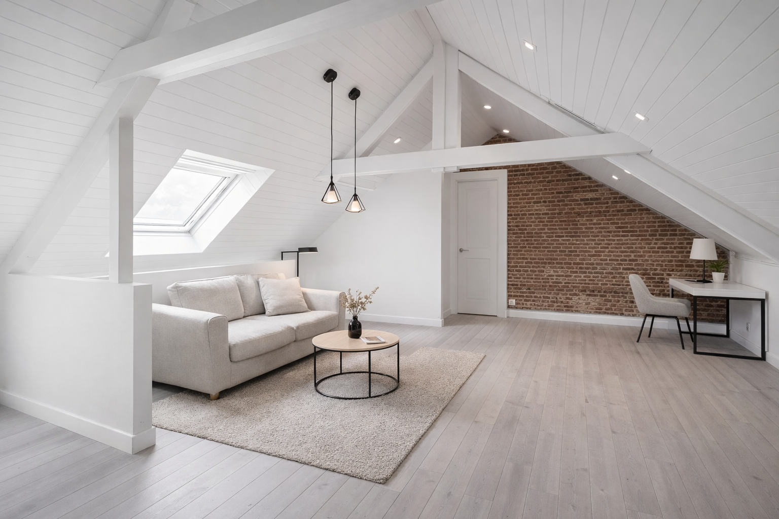 Tweede verdieping: middels vaste en gesloten trap bereikbaar. De zolder is nu één open ruimte, heeft daglicht via een Velux-raam en beschikt over een wasmachine-aansluiting.
