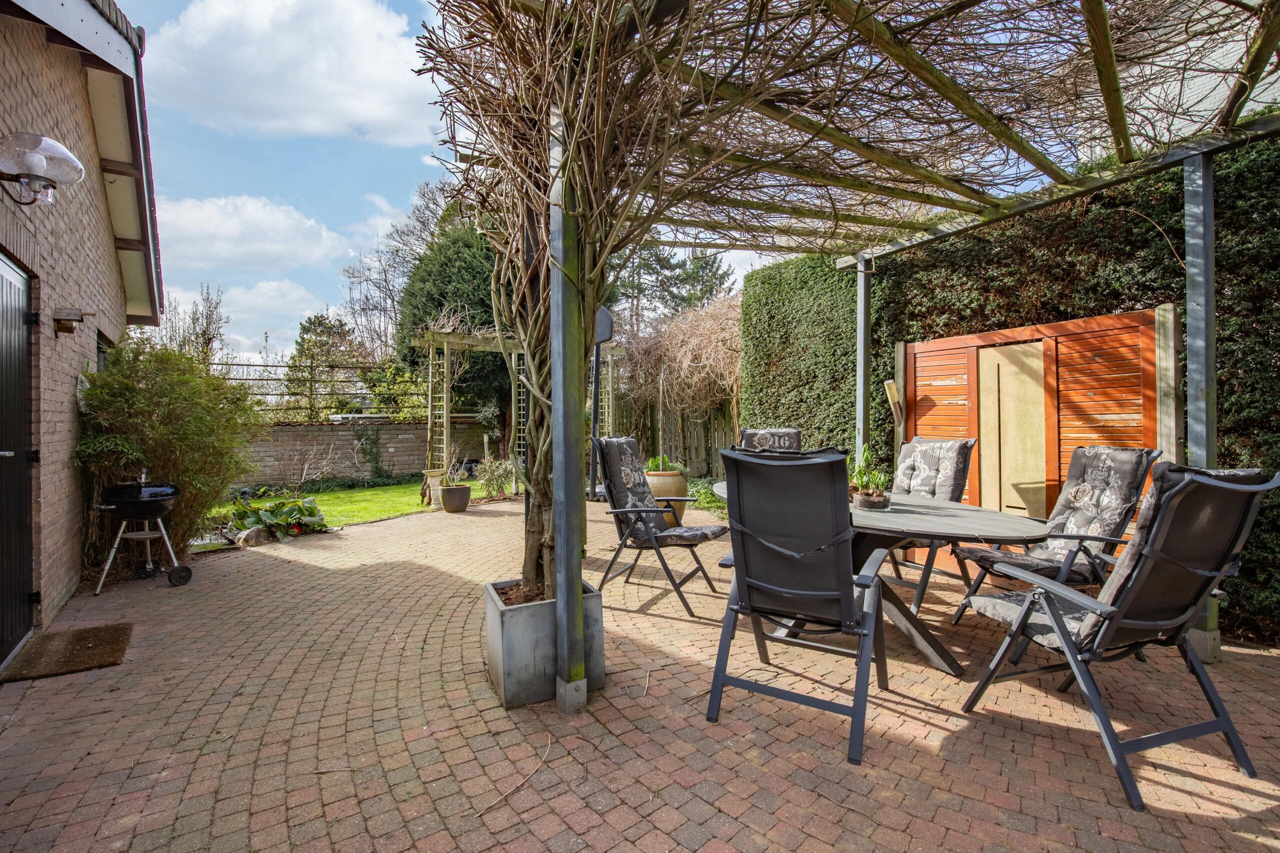 De fraai aangelegde tuin ligt rondom de woning en is bereikbaar vanuit de keuken, woonkamer, garage en tussenhal. De tuin beschikt over meerdere terrassen, is goed omsloten, biedt veel privacy en heeft een uitstekende bezonning. Hierdoor vindt u op elk moment van de dag een plek in de zon of juist in de schaduw.
