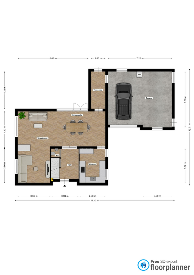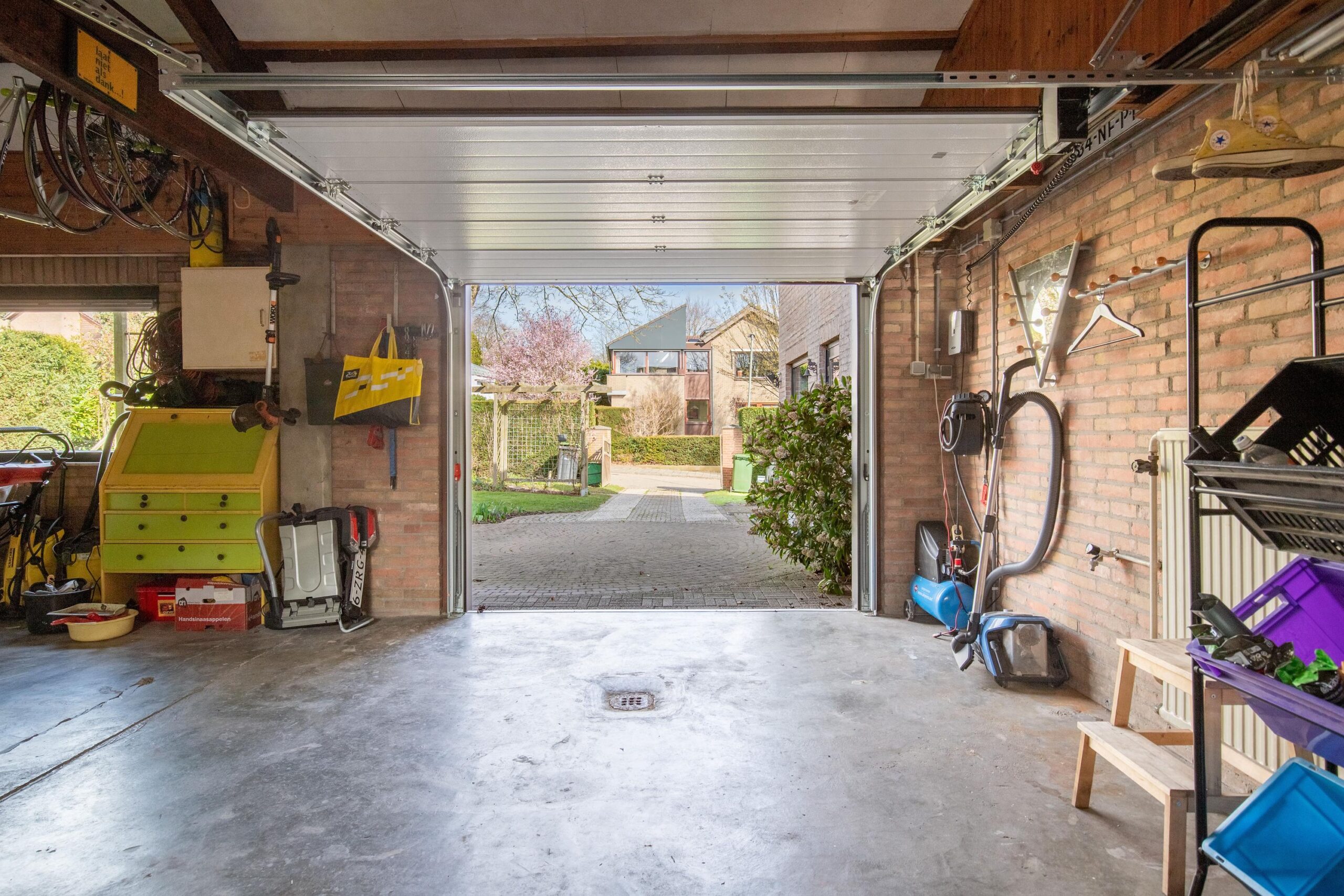 Via een tussenhal met garderobe bereikt u de inpandige dubbele garage. Deze is verwarmd en voorzien van een zadeldak (2020), een elektrisch bedienbare sectionaalpoort, aansluitingen voor wasmachine en droger en een wateraansluiting.