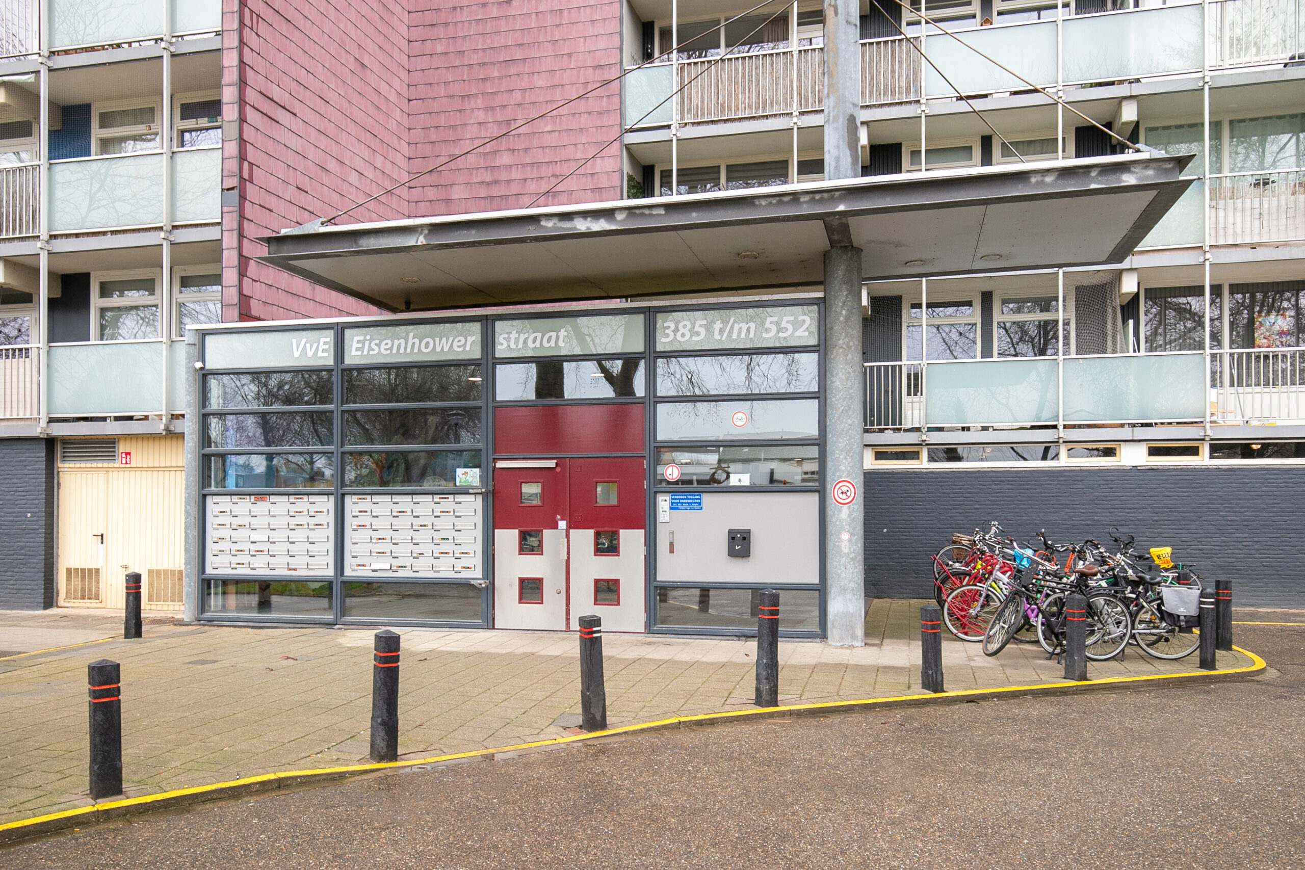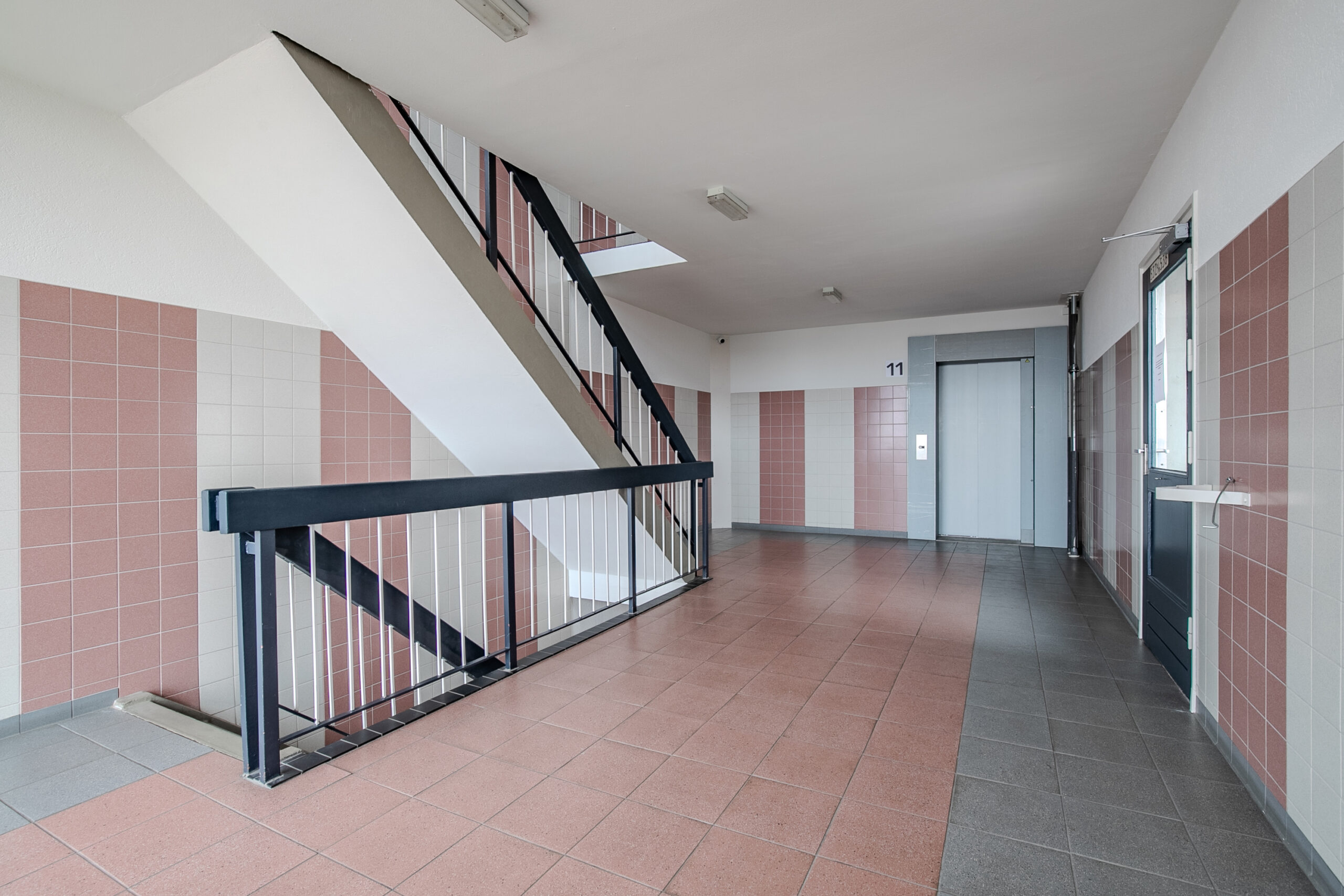 Centrale entree met brievenbussen, intercominstallatie, camerabewaking en twee liften. Toegang tot de gezamenlijke fietsenstalling.
