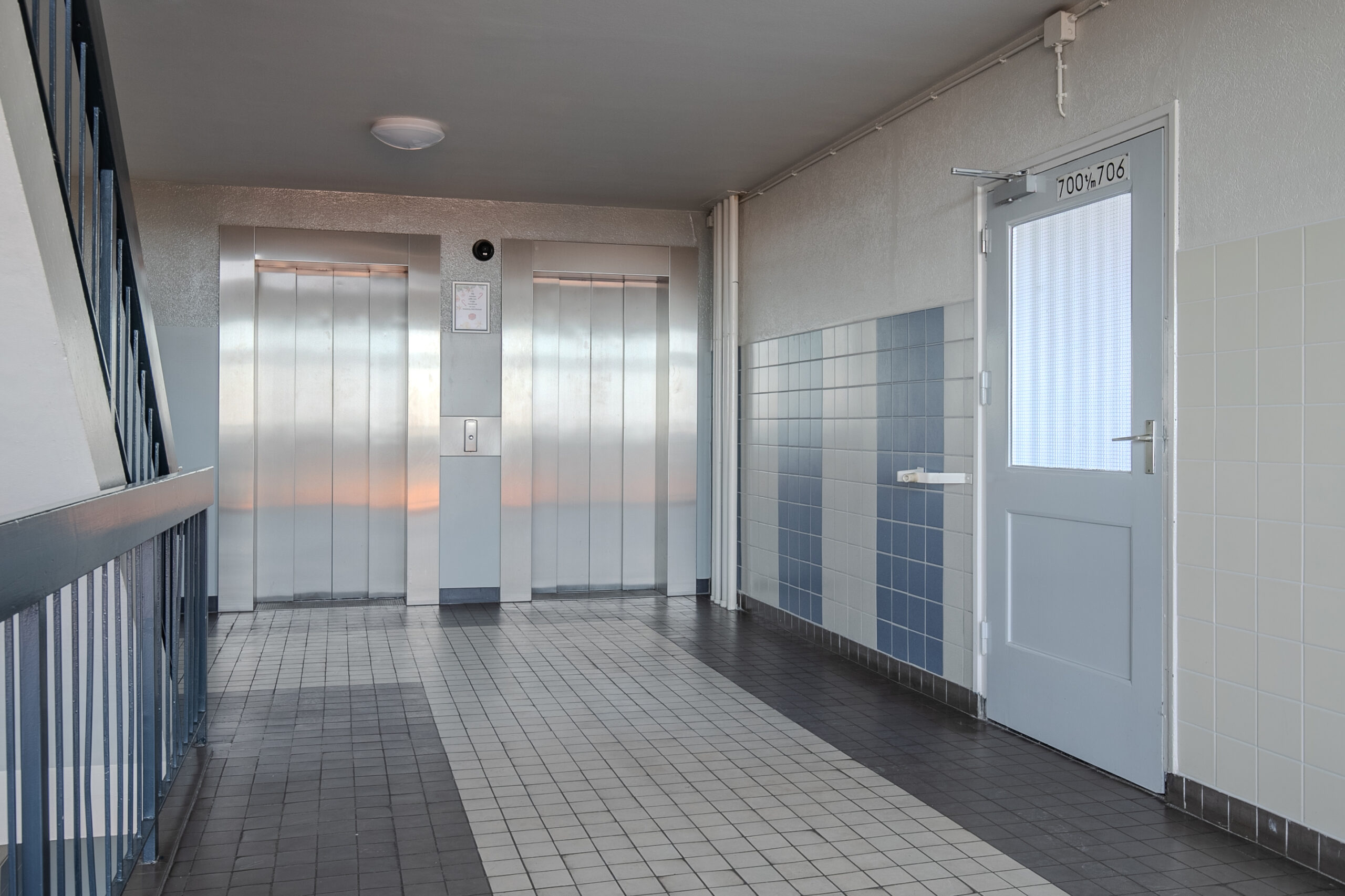 Centrale entree met brievenbussen, intercominstallatie, camerabewaking en twee liften. Vanuit hier is tevens de gezamenlijke fietsenstalling bereikbaar.
