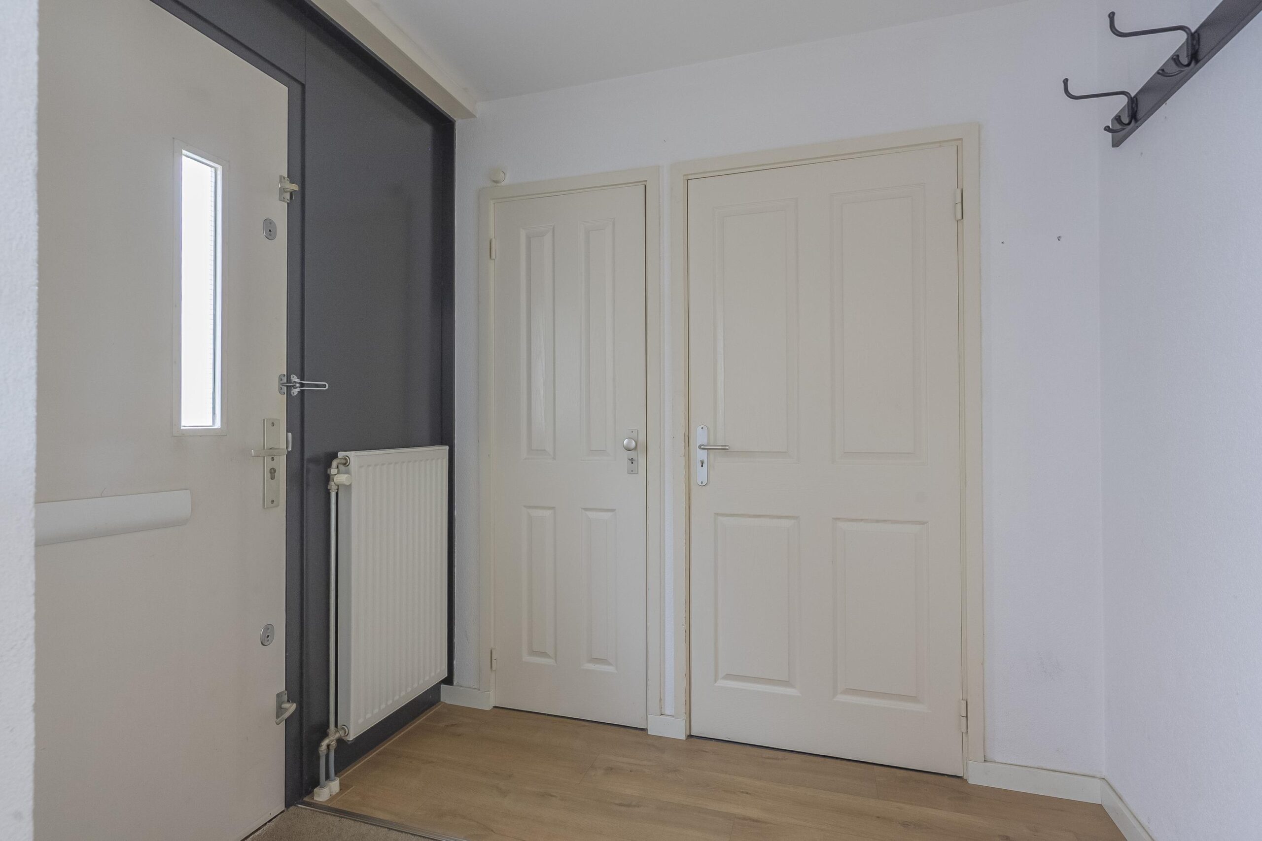 Overdekte entree. Hal met meterkast met dag- en nachtstroom.