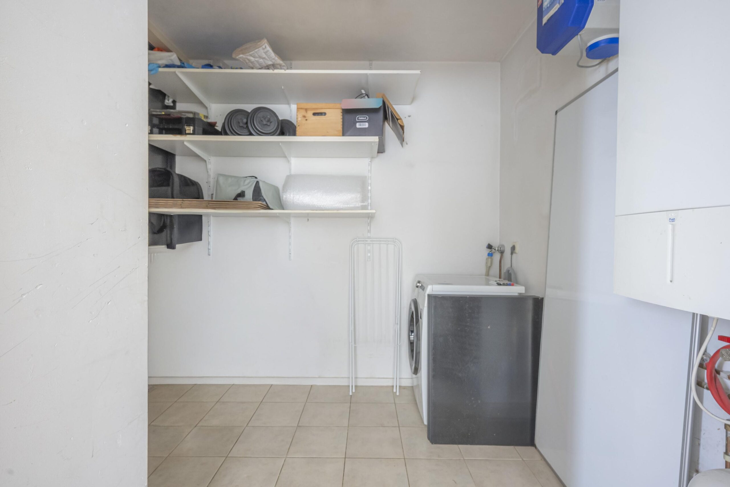 Inpandige berging met plavuizenvloer en aansluiting wasmachine en combi cv-installatie (Bosch/huur).
