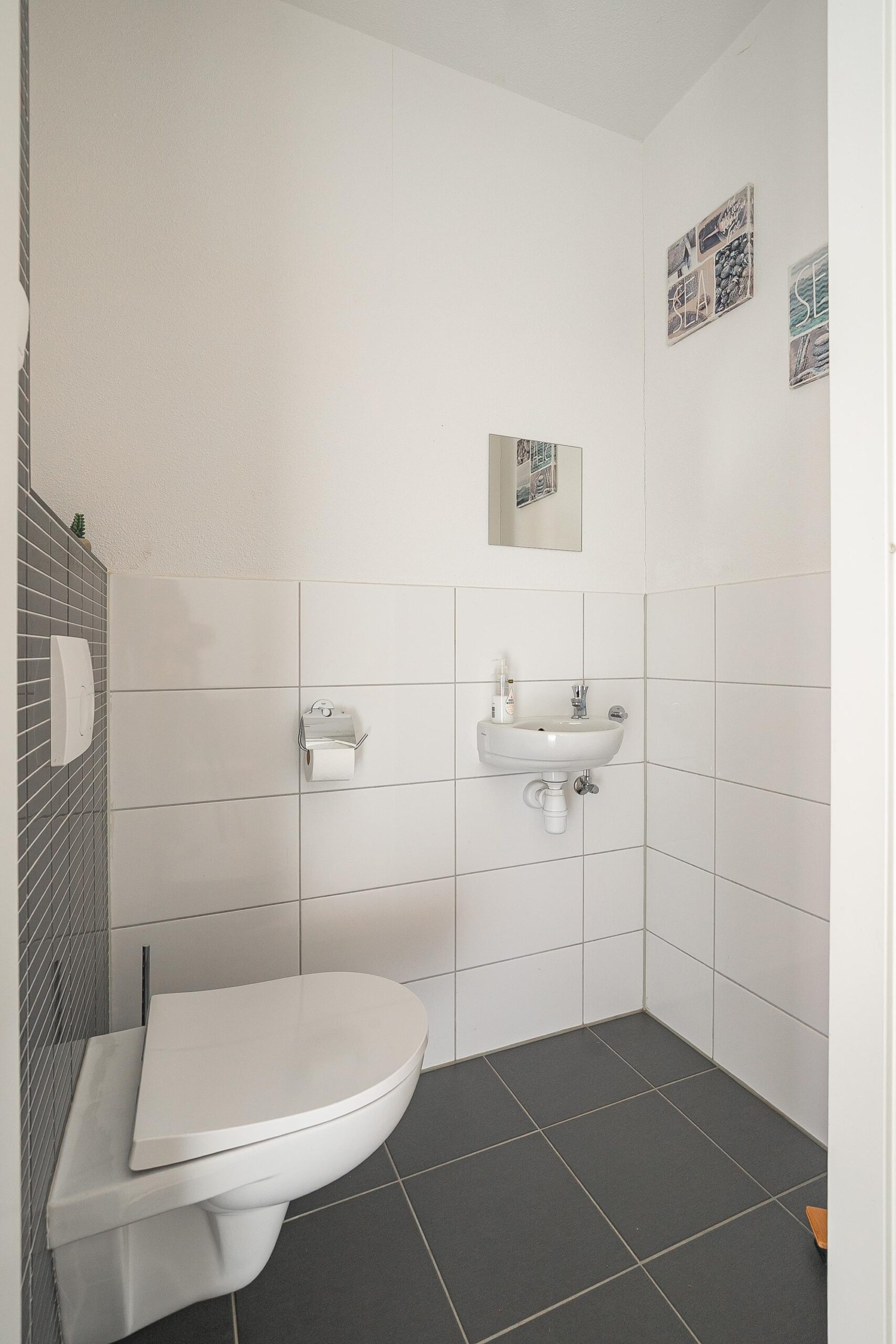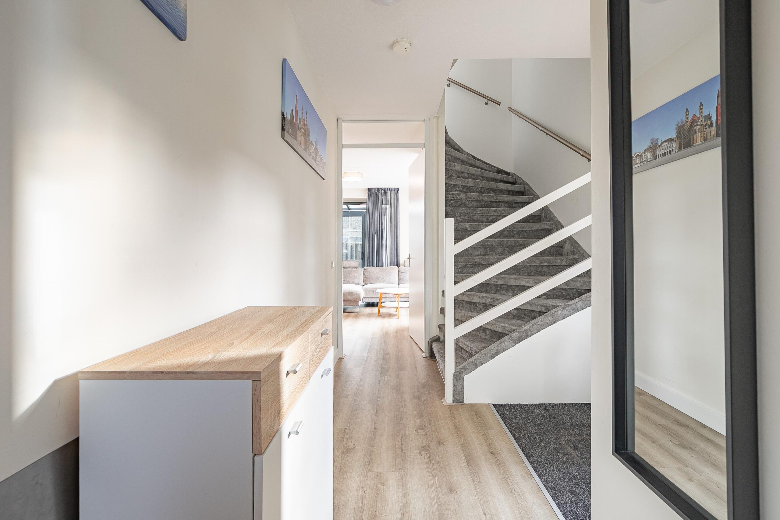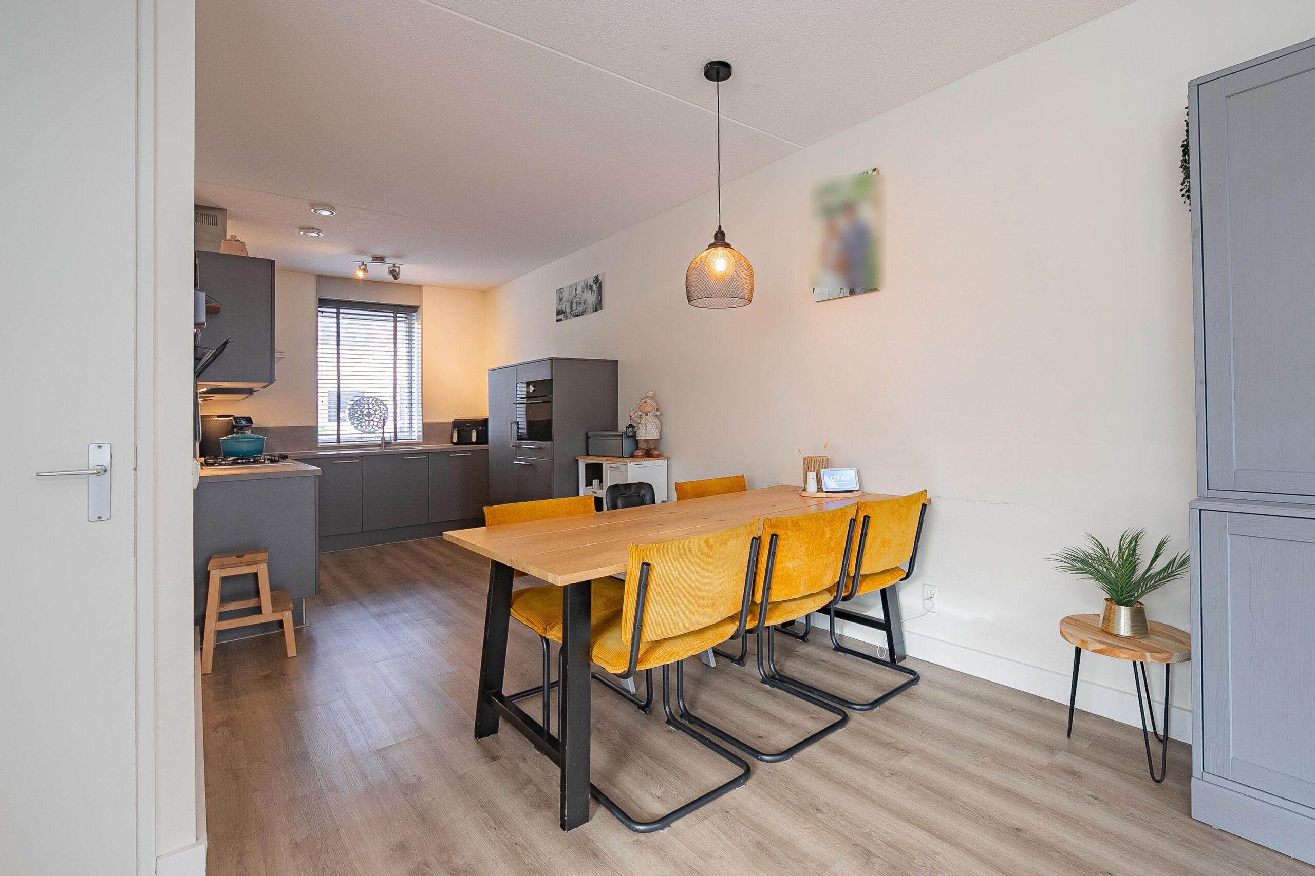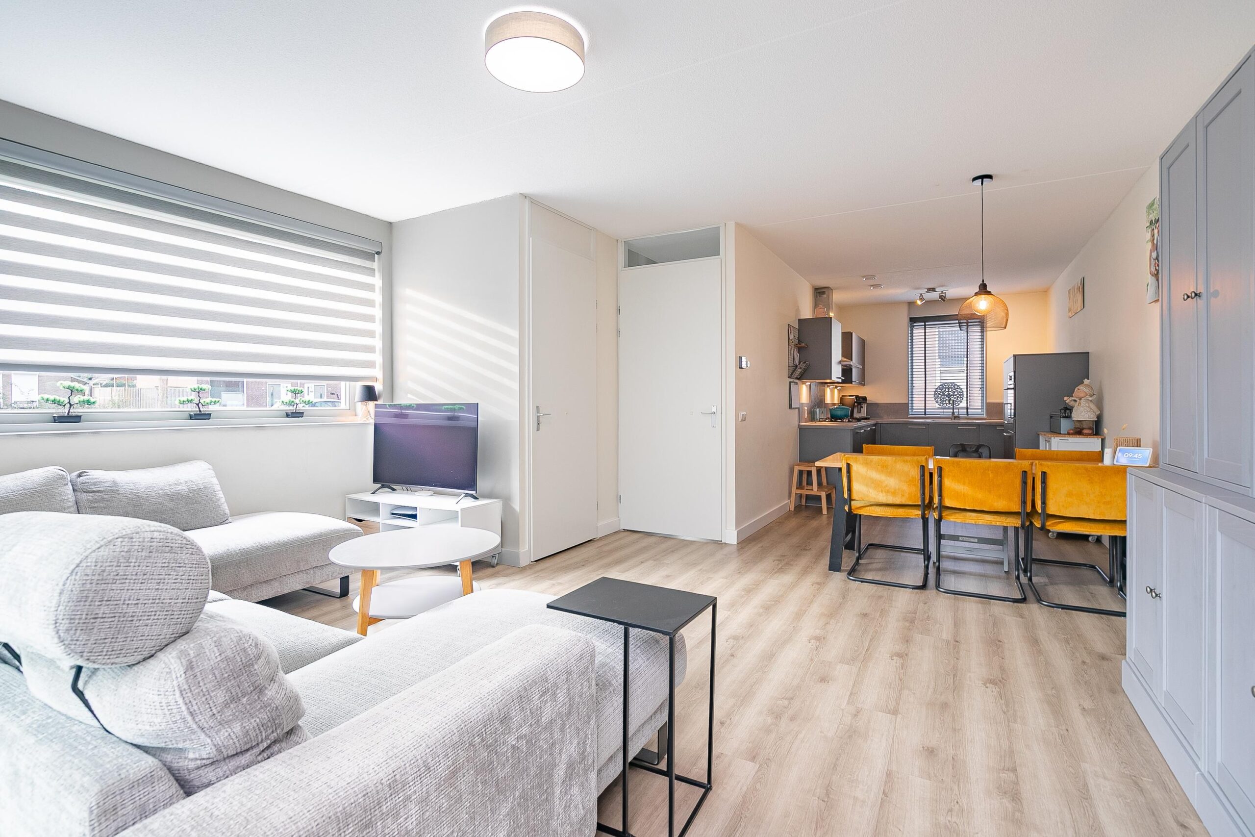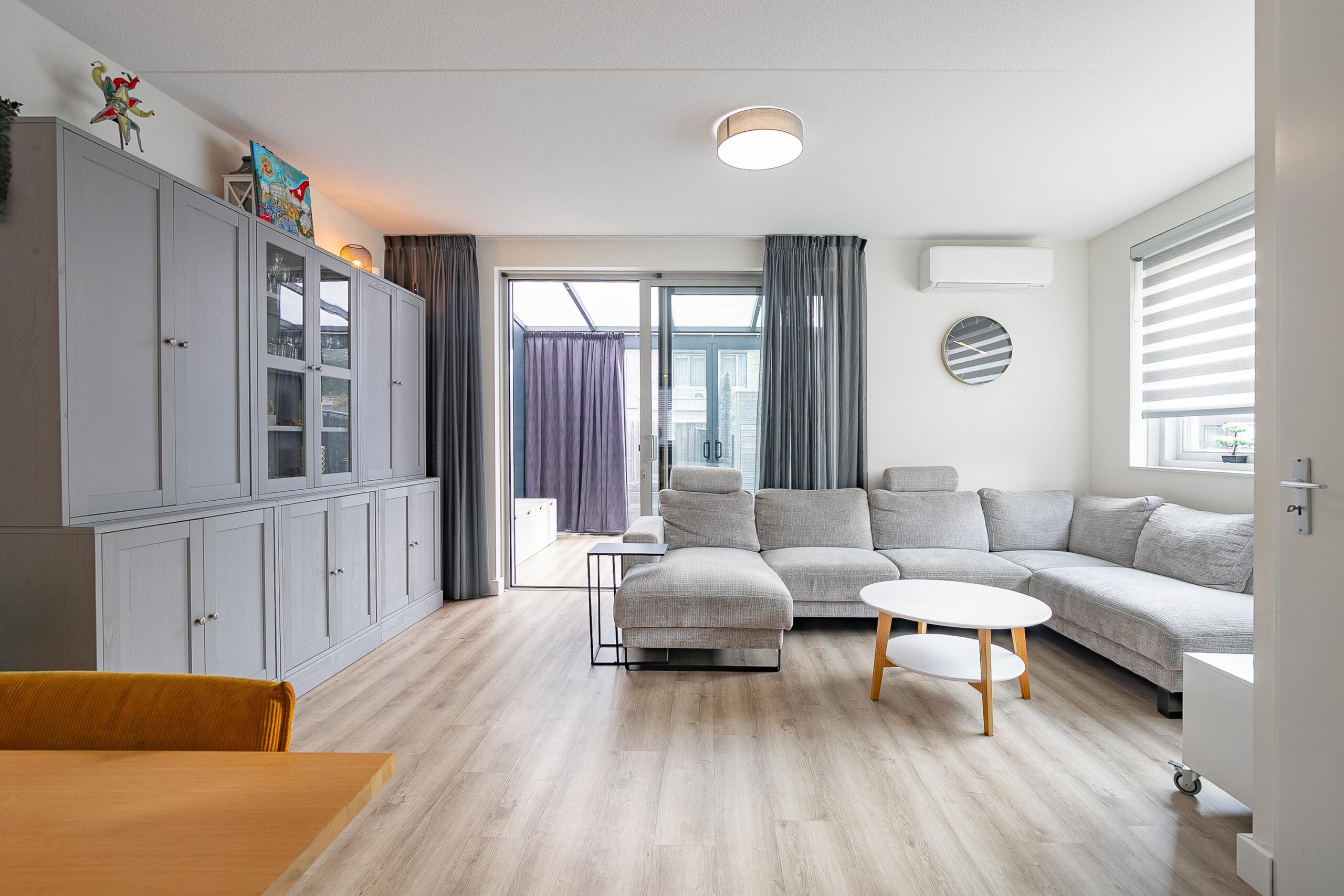 Via de ruime entree/hal is er toegang tot de meterkast, het toilet, de trapopgang en de woonkamer. De toiletruimte is betegeld en voorzien van een wandcloset en fonteintje. De leefruimte, voorzien van een lichte laminaatvloer (ca. 33 m²), is royaal van opzet. De woonkamer en keuken staan in open verbinding met elkaar. Aan de achterzijde van de woning geeft de woonkamer middels een schuifpui toegang tot de veranda (ca. 15 m²), die in 2020 is gebouwd en eveneens over een schuifpui beschikt. De woonkamer en veranda zijn beide voorzien van airconditioning. De keuken is uitgevoerd in een U-opstelling en beschikt over diverse inbouwapparatuur, waaronder een 5-pits gaskookplaat, combi-oven/ magnetron, spoelbak, koelkast met vriesvak, vaatwasser en afzuigkap.