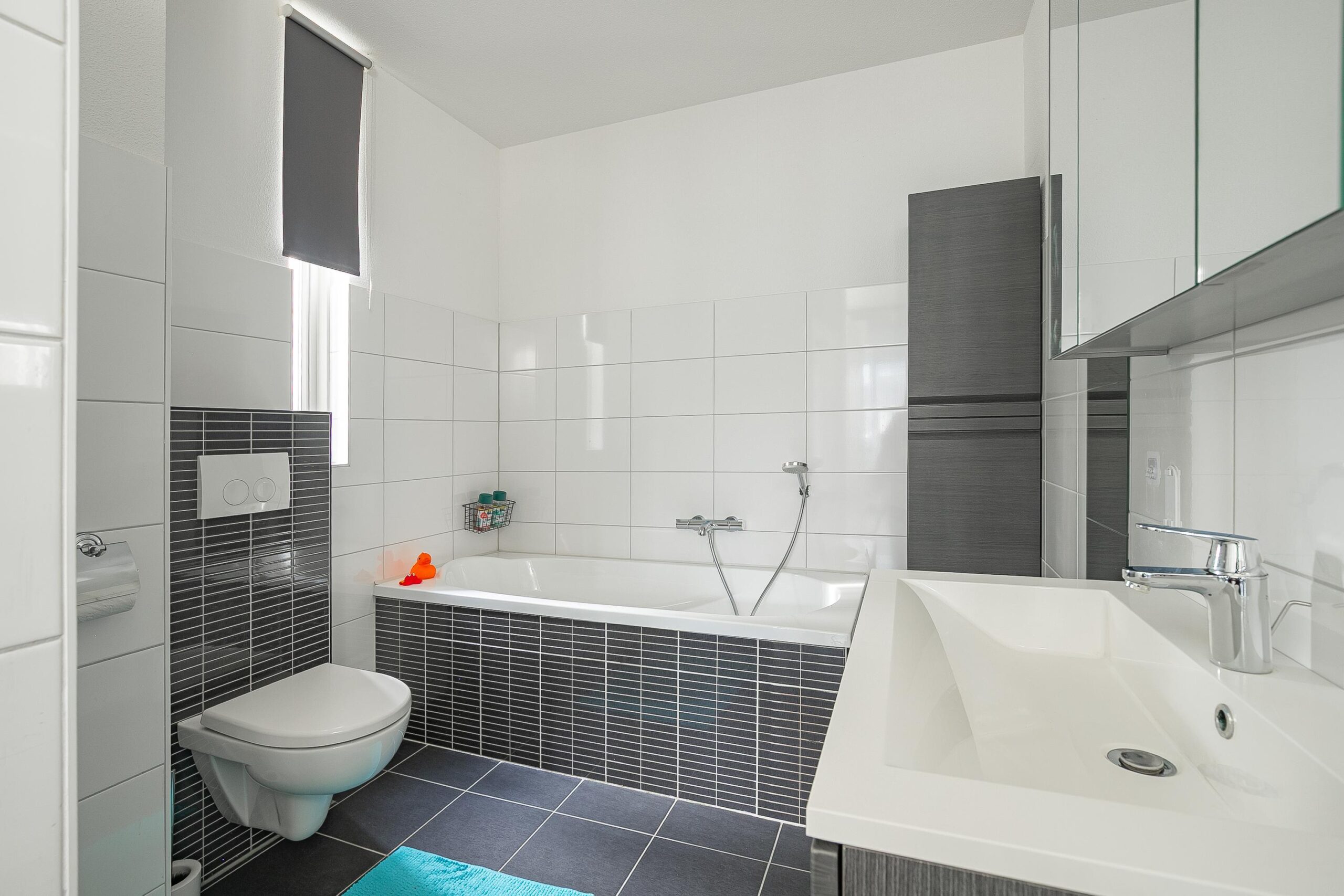 - Badkamervoorzieningen Ligbad, toilet, wastafelmeubel, inloopdouche