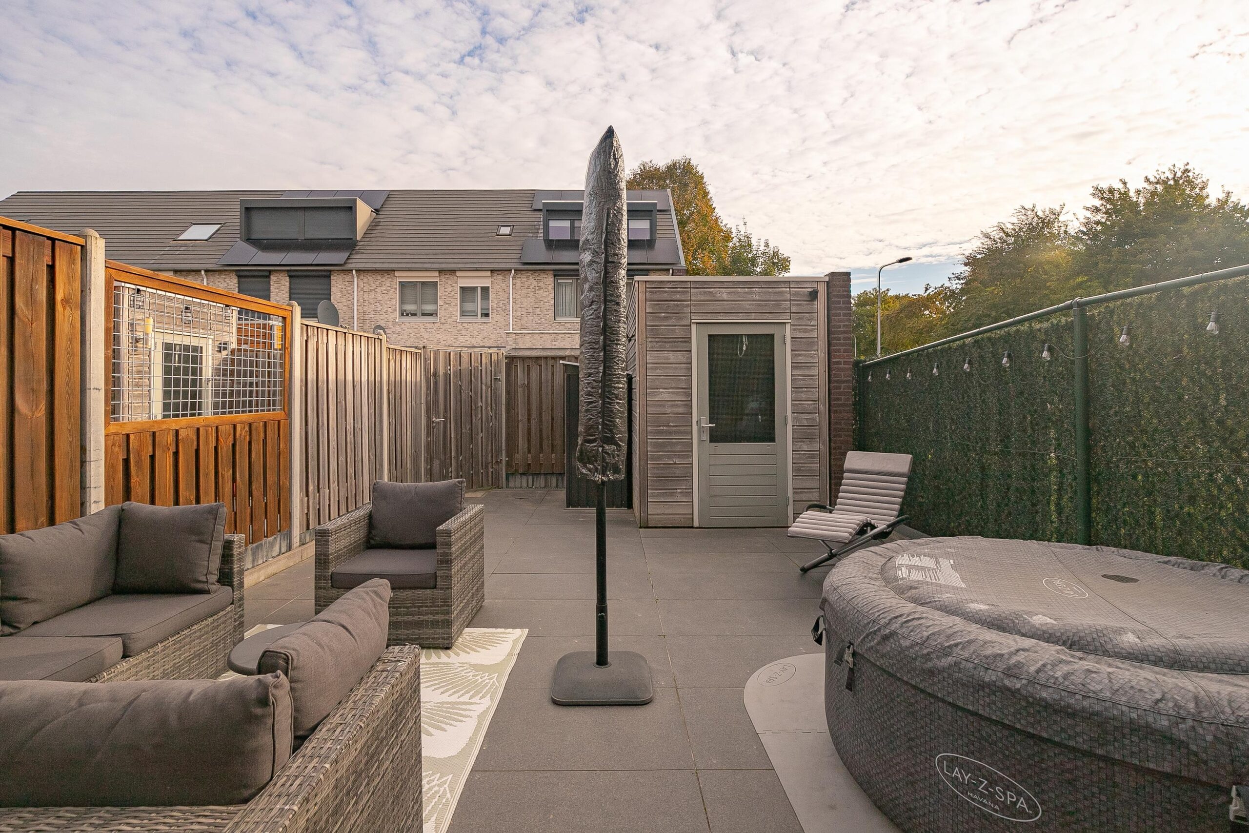 De tuin is onderhoudsvriendelijk, volledig betegeld en gesitueerd op het noordwesten. Verder is er een handige achterom en een fijne berging voor bijvoorbeeld fietsen of tuingereedschap.